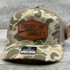 LEATHERING CO. RICHARDSON CUSTOM CHECKPOINT CHARLIE’S HARVEST DUCK CAMO/LIGHT TAN TRUCKER HAT, NEW