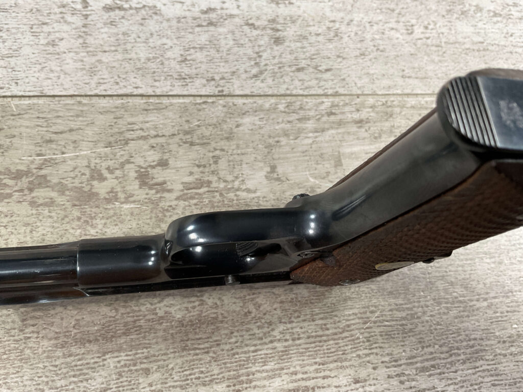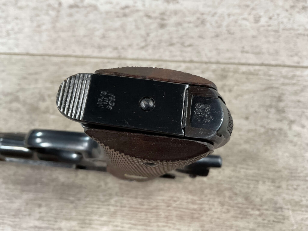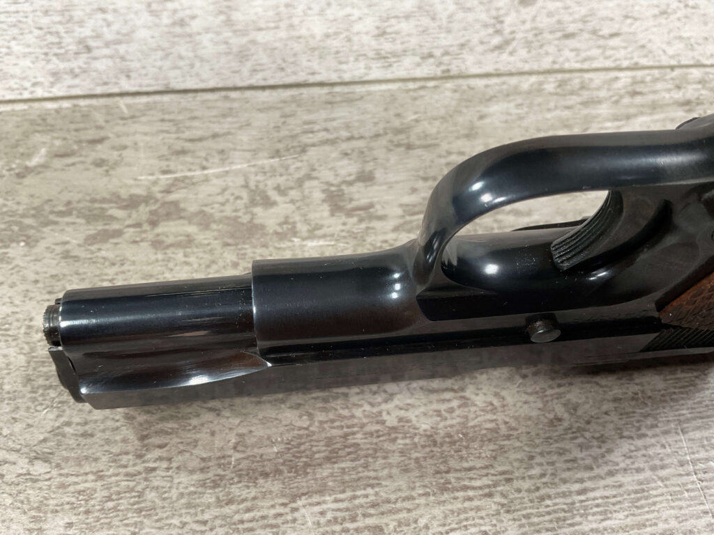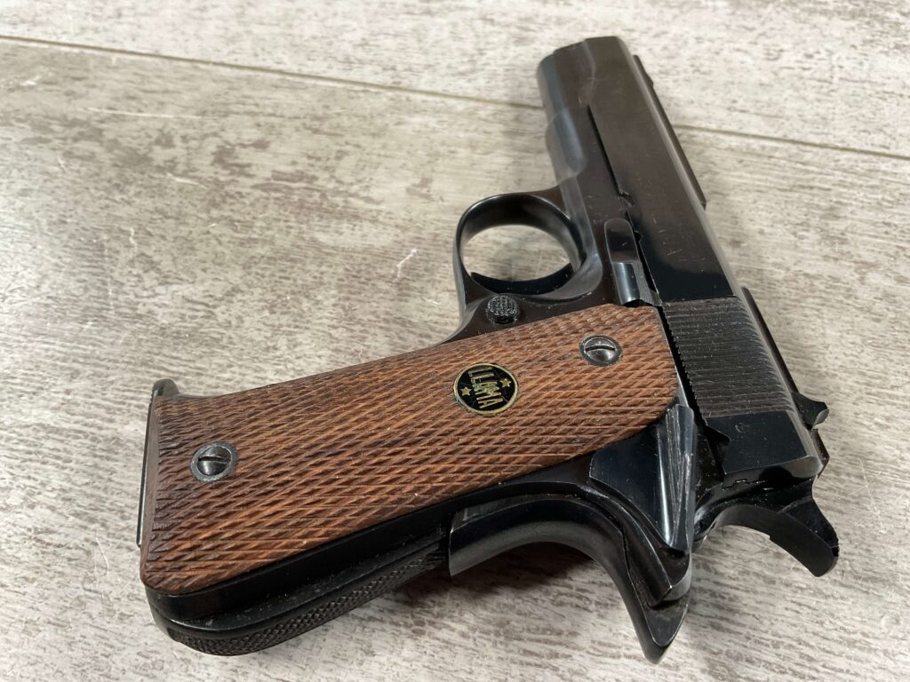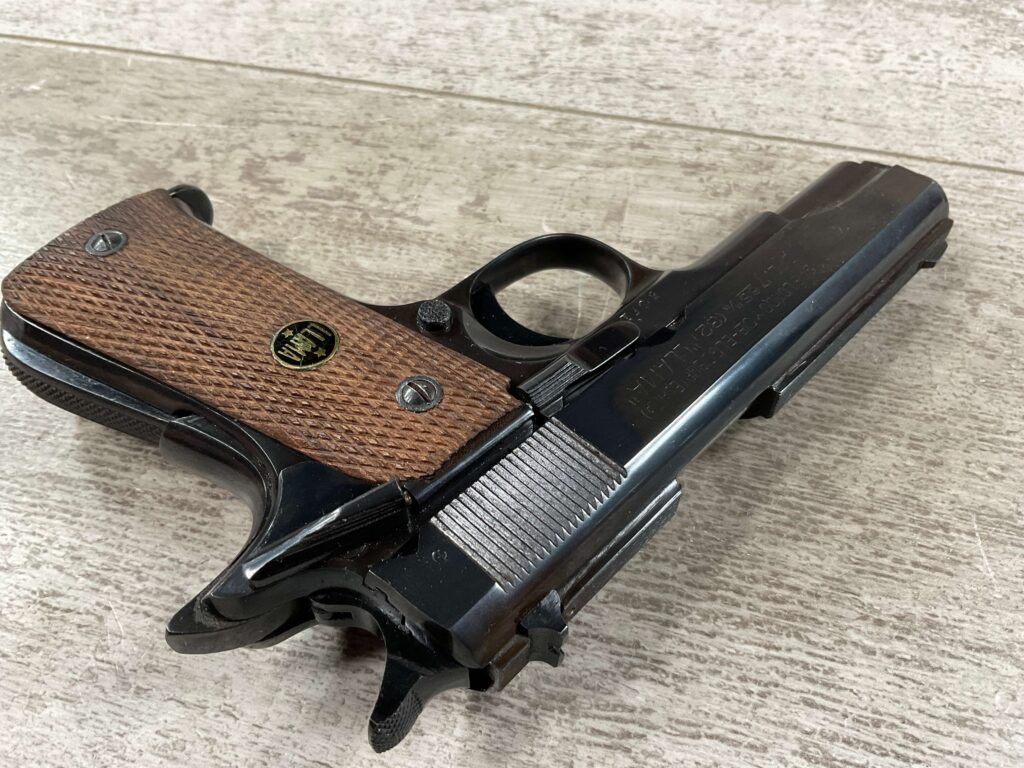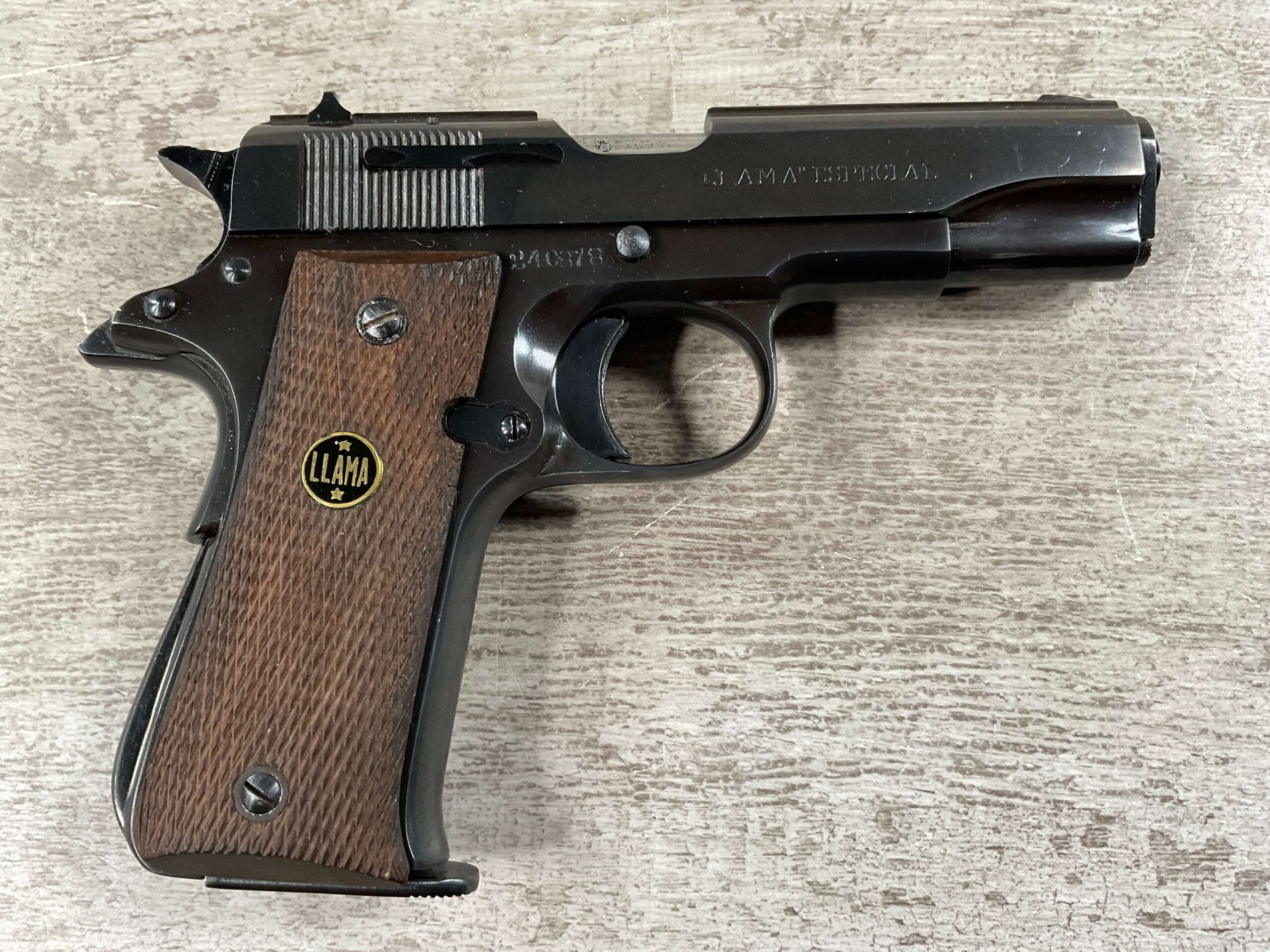 LLAMA MODEL XA 7.65/.32ACP SEMI AUTO PISTOL #240878 SINGLE ACTION, 3.65″ BBL, EXC BRIGHT BARREL & RIFLING (9/10), GRIP SAFETY, EXC CHECKERED WALNUT GRIPS, 1 ORIGINAL “MADE IN SPAIN” MARKED MAGAZINE, SMOOTH ACTION, MINI 1911 HANDGUN, 95+%