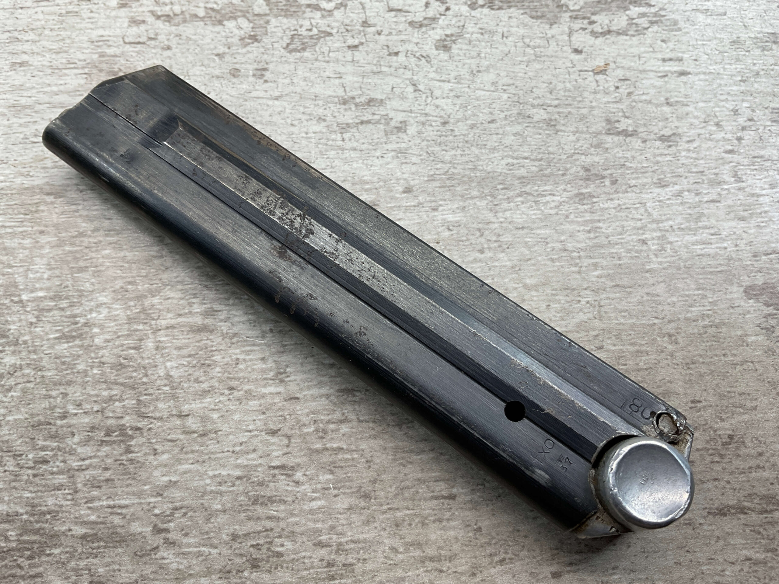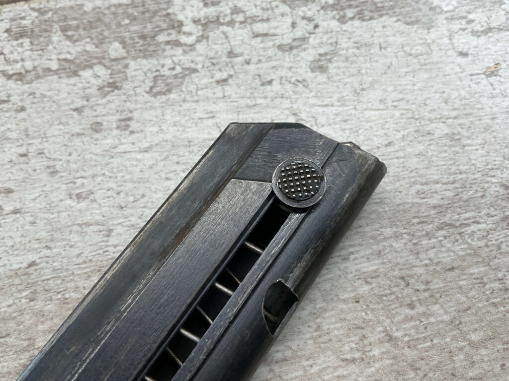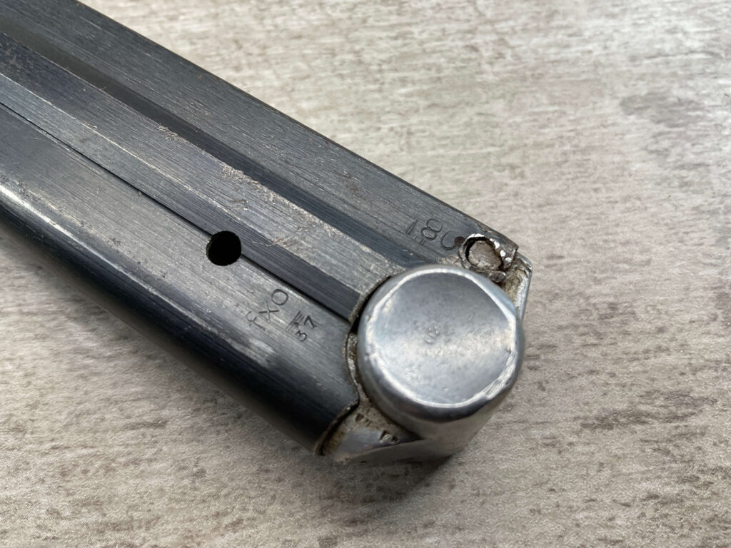 LUGER P08 MAGAZINE “FXO” “EAGLE/37” ALUMINUM BASE, ALUMINUM BASE STAMPED “5486”, “F” SUFFIX “+ / EAGLE/63”, VG CONDITION, STRONG SPRING