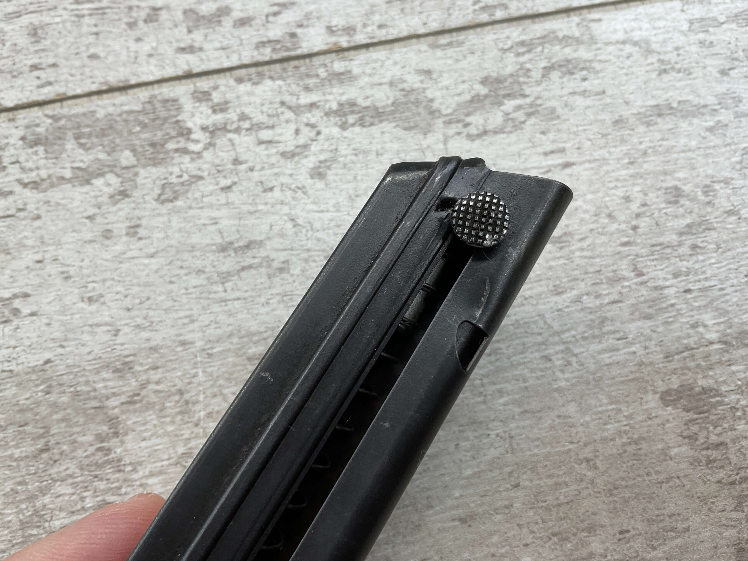 LUGER P08 MAGAZINE “MADE IN DENMARK” W/ ALUMINUM BASE, “MADE IN DENMARK” MARKED, EXC CONDITION, STRONG SPRING
