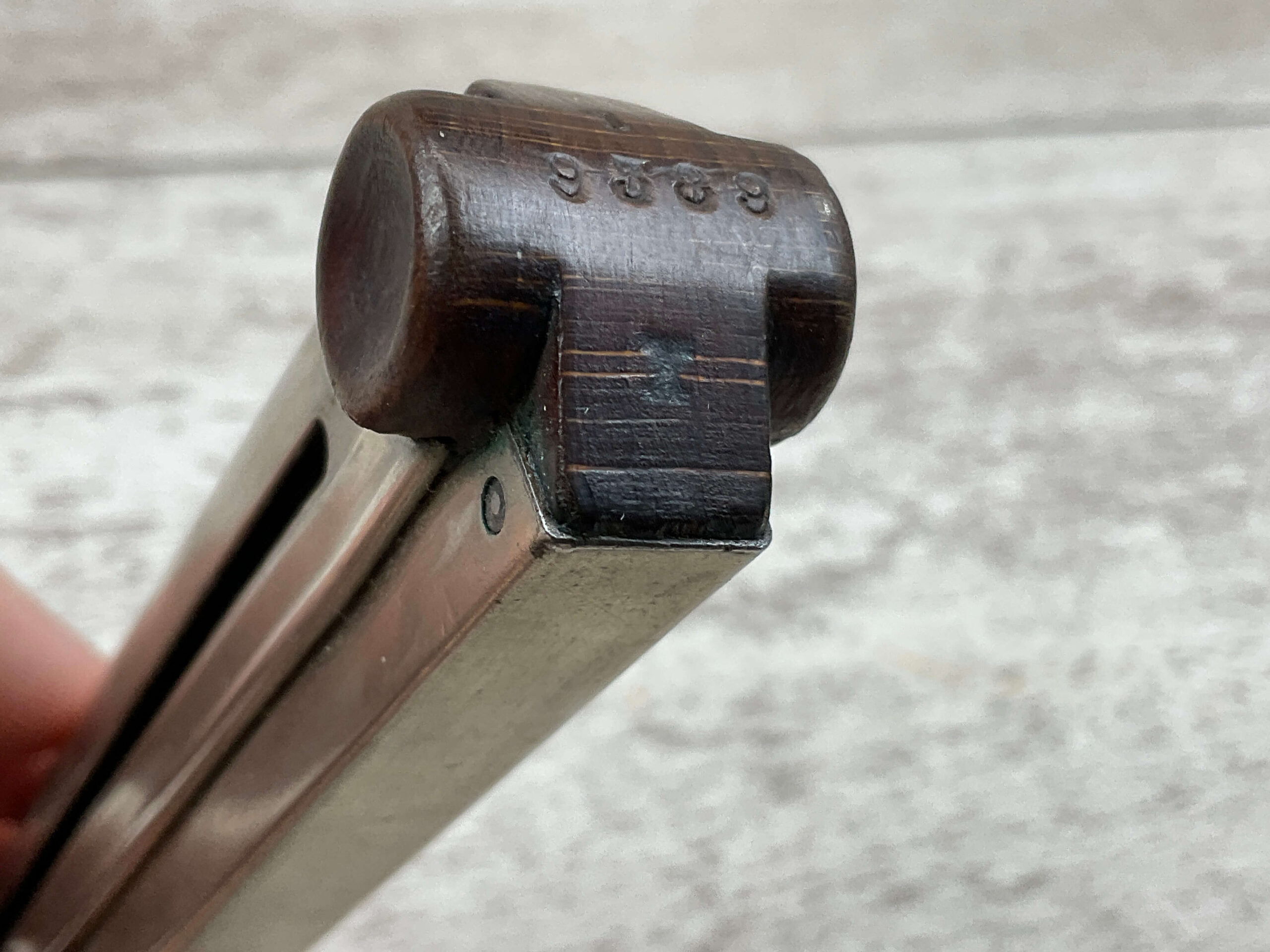 LUGER P08 MAGAZINE WOOD BASE POLICE “1” “9389” “