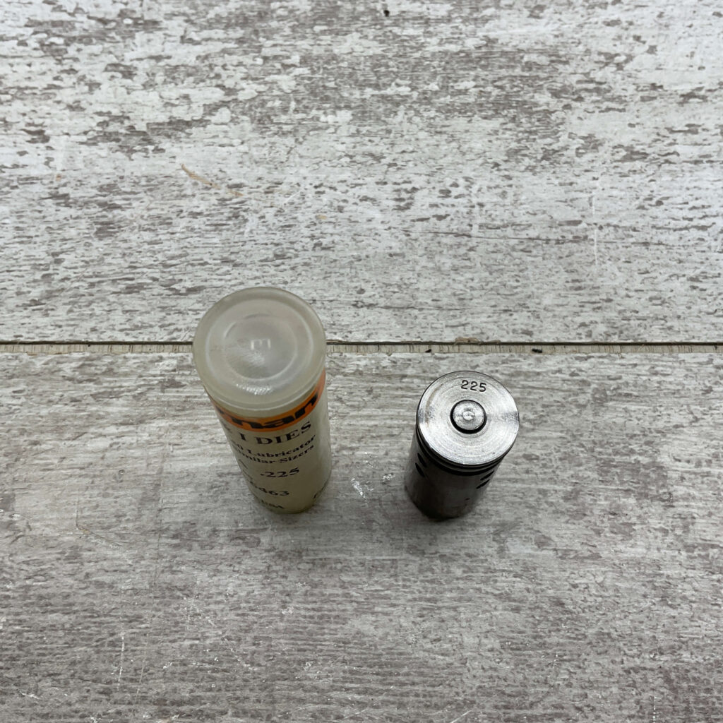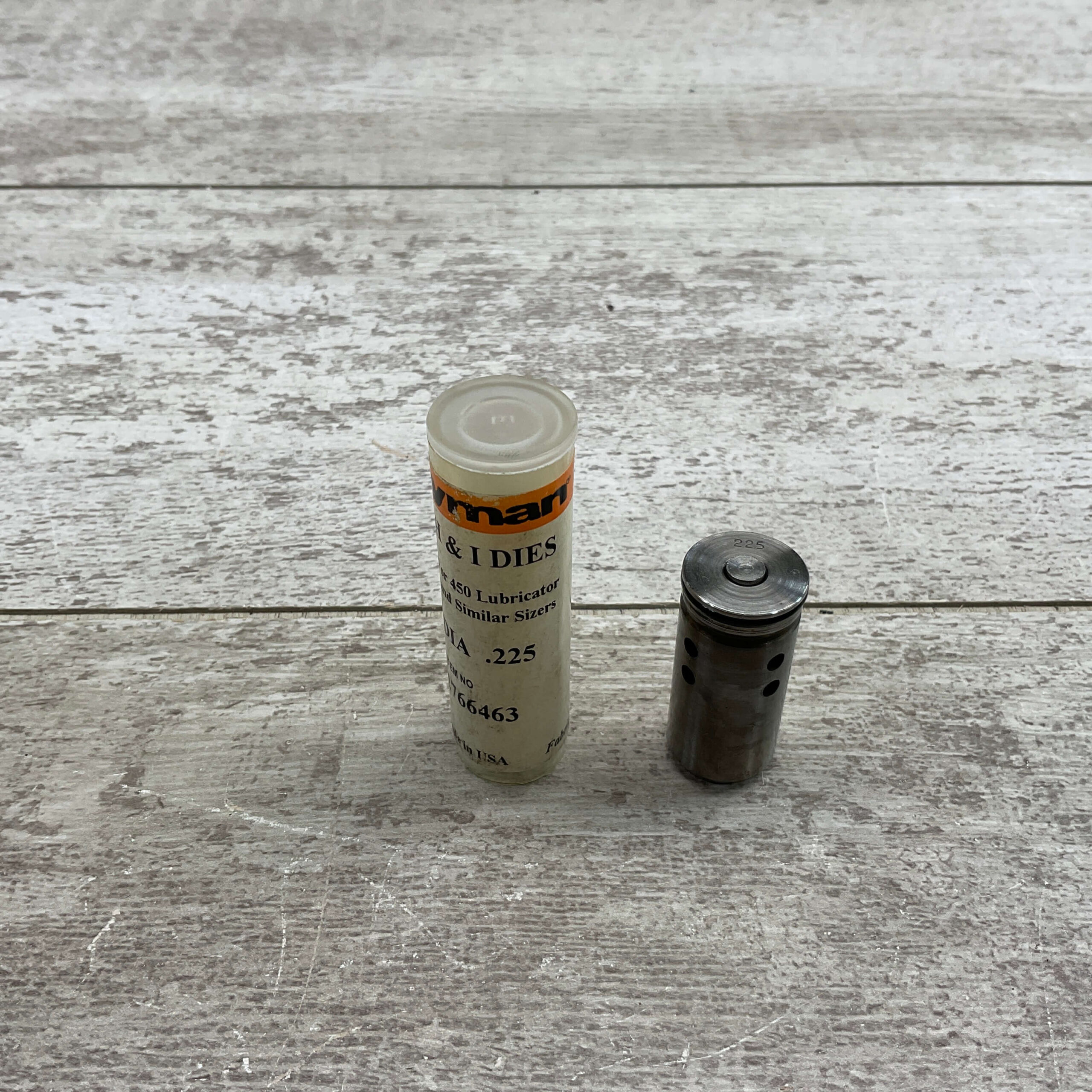 LYMAN .225 DIAMETER SIZING DIE FOR USE WITH 450 LUBRICATOR, MFR BY H&I DIES, ITEM NUMBER 2766463 IN VERY GOOD CONDITION.