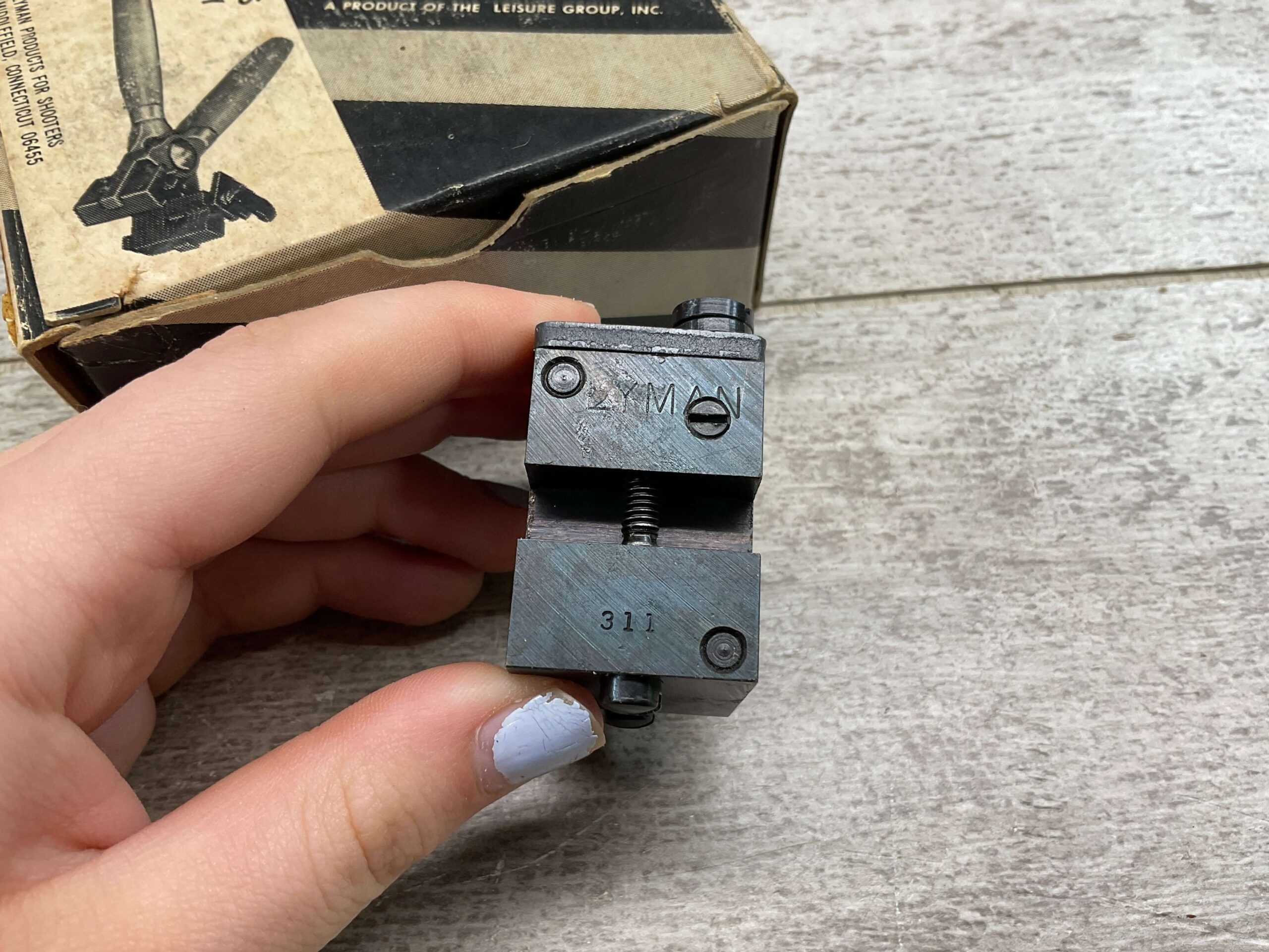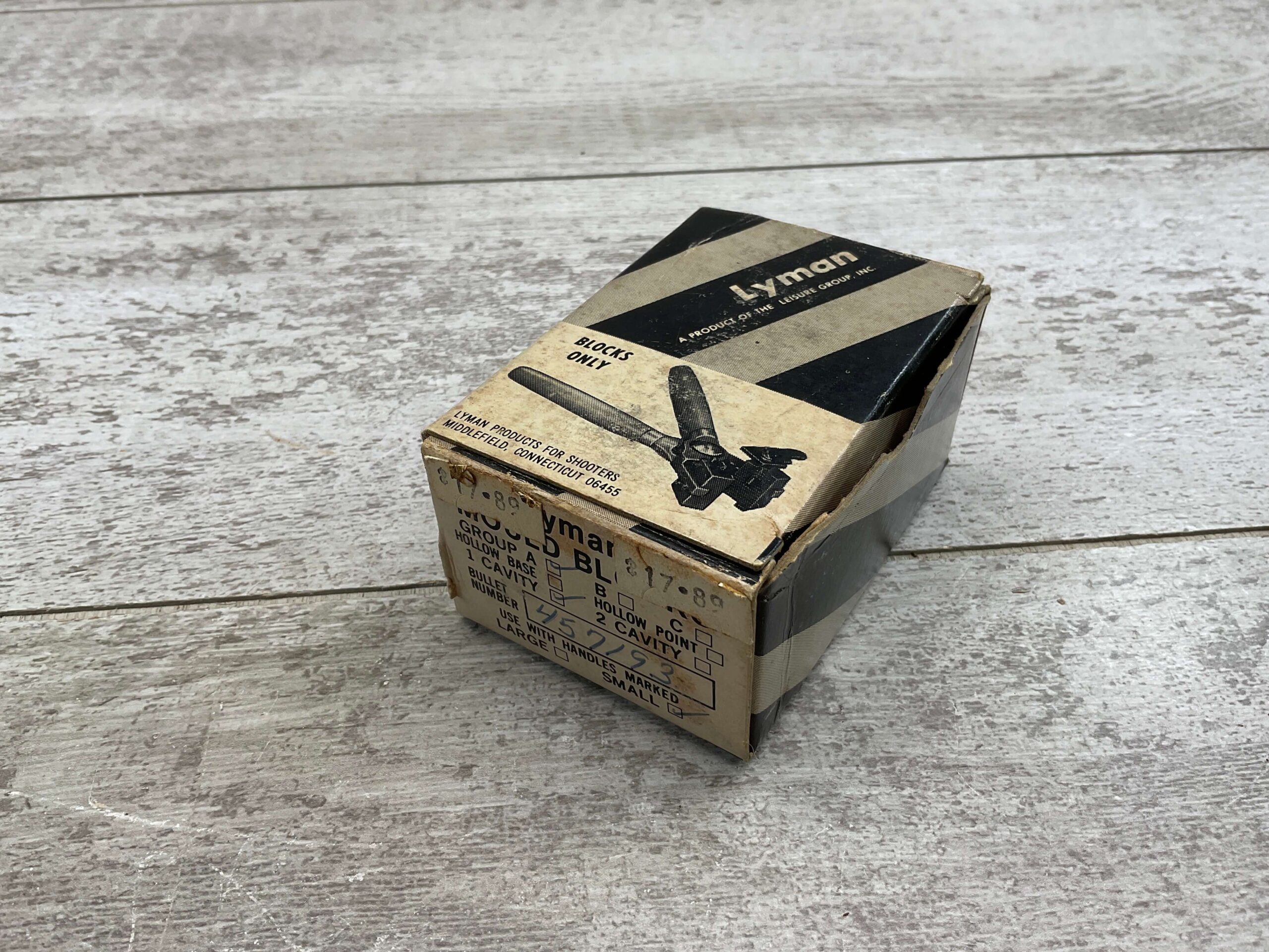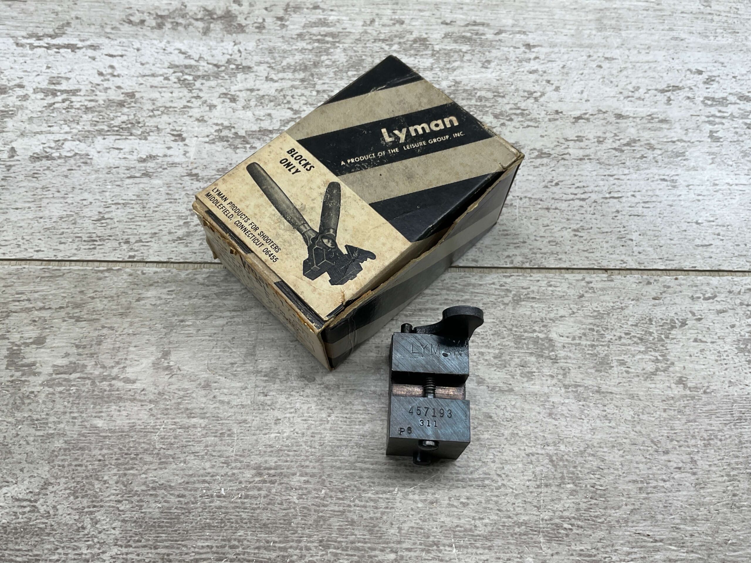 LYMAN RIFLE BULLET MOULD, 45 CAL FOR CASTING BULLETS, #410426, 1 CAVITY CARDBOARD BOX WITH FLIP TOP, BLOCKS WRAPPED IN WAX PAPER. VERY GOOD CONDITION.
