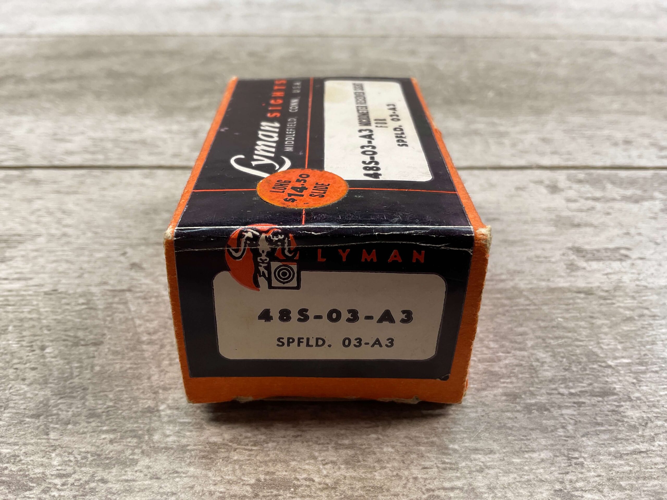 LYMAN 48S-03-A3 SPRINGFIELD 03-A3 MICROMETER RECEIVER SIGHT, VINTAGE, HAS SOME WEAR ON SPINE, BUT OVERALL IN GOOD-VG CONDITION! INCLUDES DIRECTIONS FOR MOUNTING AND ORIGINAL BOX.