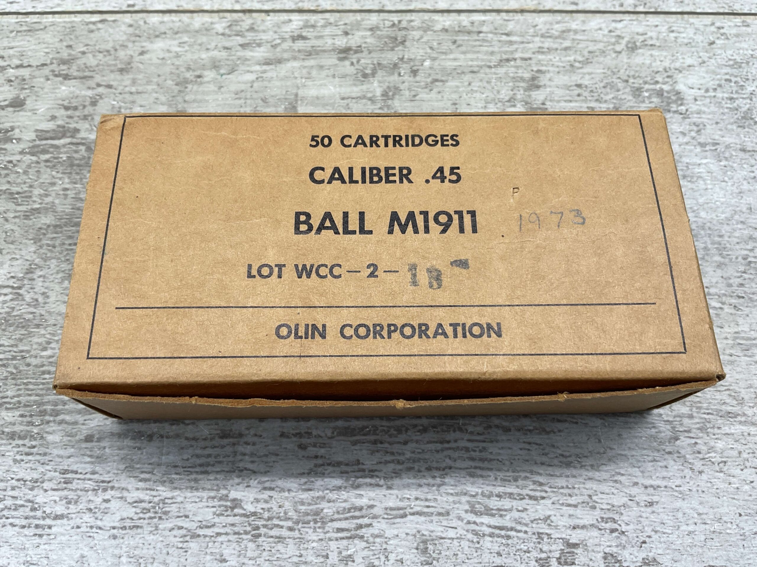 WINCHESTER M1911 .45 CAL BALL AMMO, FULL BOX, OLIN MATHIESON CHEMICAL CORPORATION/OLIN CORPORATION.