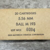 M193 5.56 MM BALL AMMUNITION, FULL BOX OR 20 ROUNDS, LOT WCC 6094, OLIN MATHIESON CHEMICAL CORPORATION. EARLY VIETNAM.