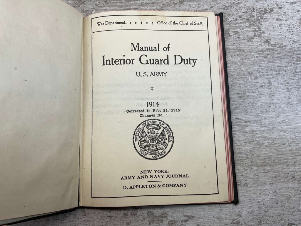 MANUAL OF INTERIOR GUARD DUTY, U.S. ARMY, 1914, ANTIQUE, INSIDE MARKED “FLOYD V. LINDSTROM”
