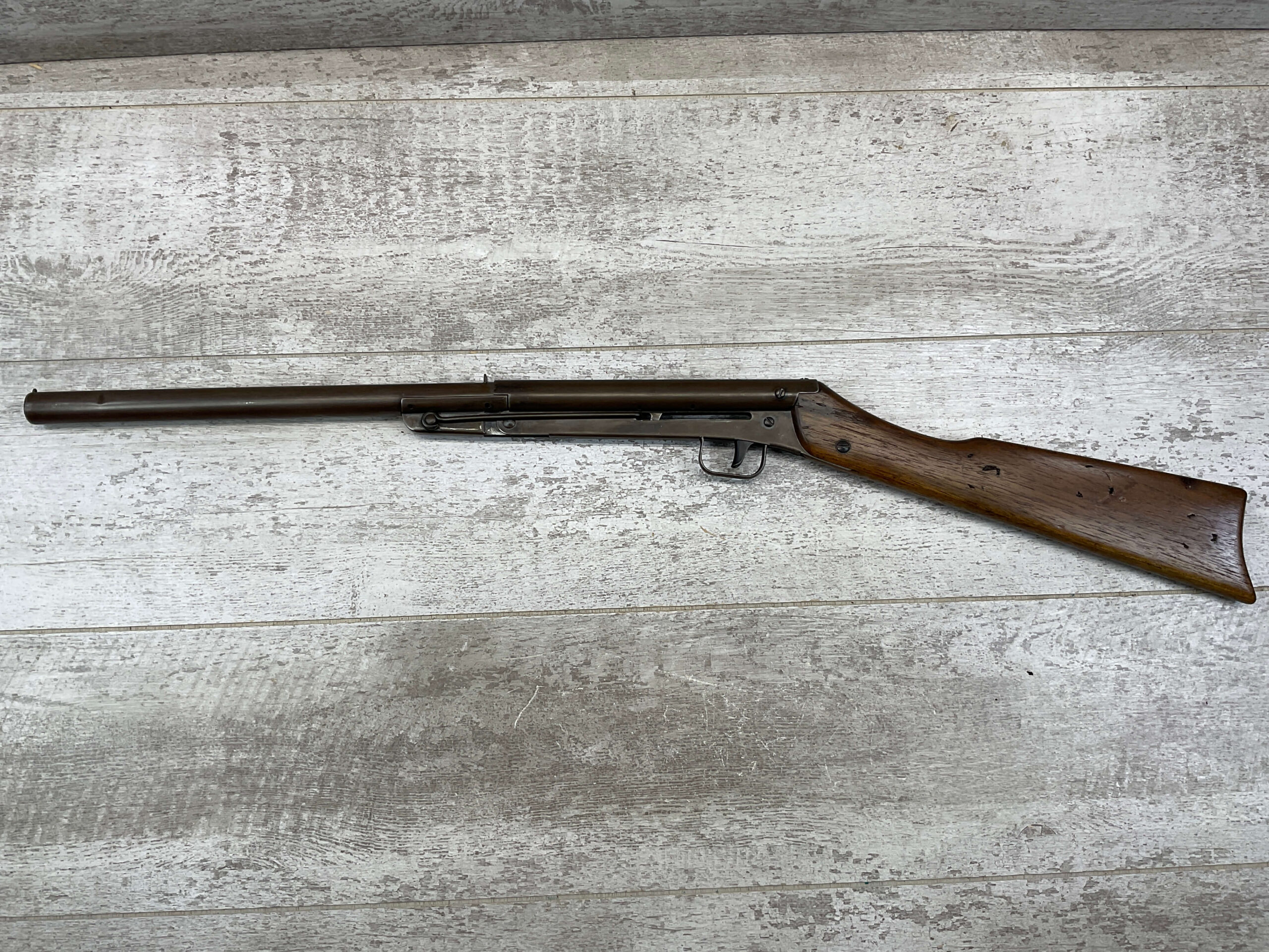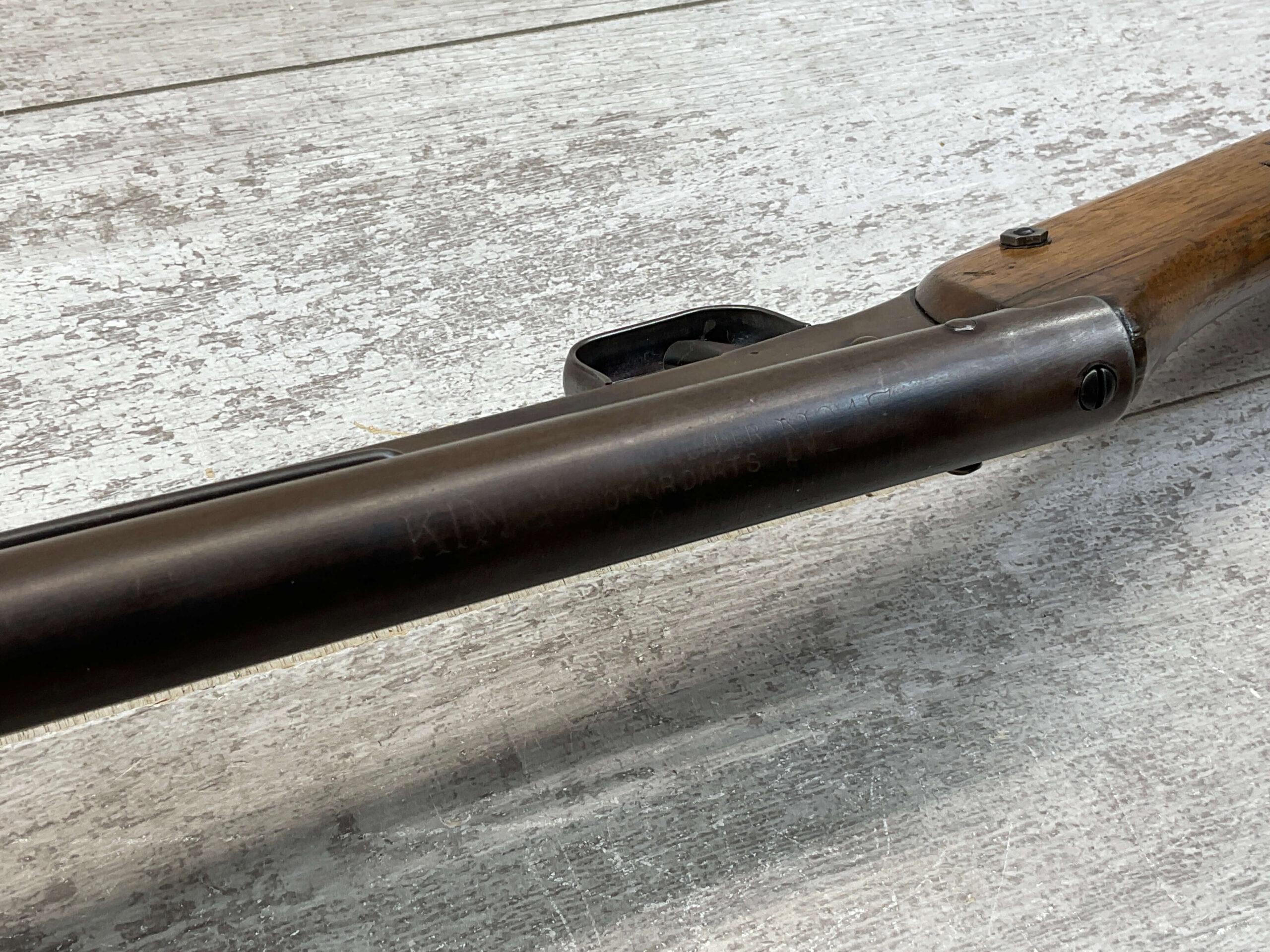MARKHAM KING NO. 17 .177 CAL BREECH LOADER AIR RIFLE, VINTAGE, VERY RARE & HARD TO FIND, SHOT OR DART, WOOD STOCK, MFG. 1917-1932, 12 IN. BBL, IN EXC CONDITION WITH MINIMAL WEAR, SOME SMALL CIRCLE LIKE MARKS ON STOCK, OVERALL 90%
