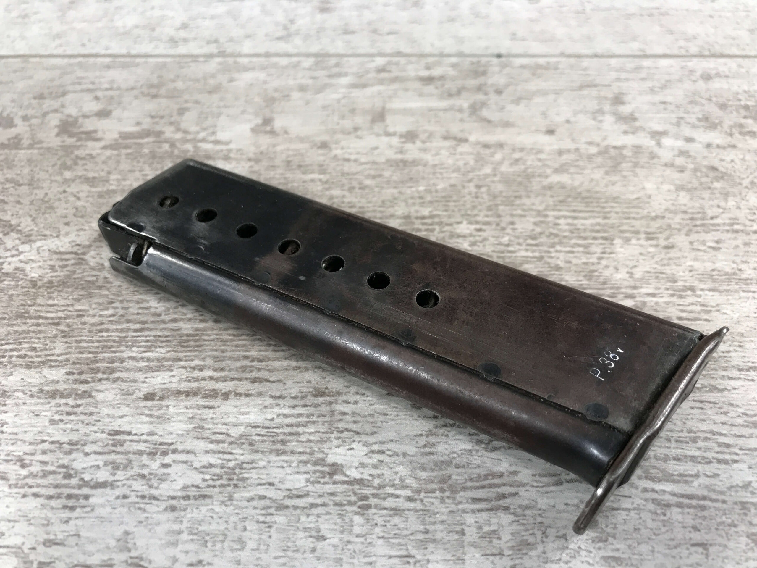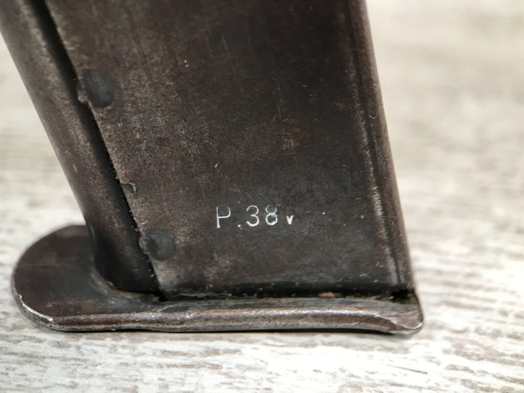 SKU#7087 MAUSER BYF44 P38 MAGAZINE, “P.38v” ON LEFT HOUSING, “E/WaA135” HIGH ON SPINE, GOOD CONDITION