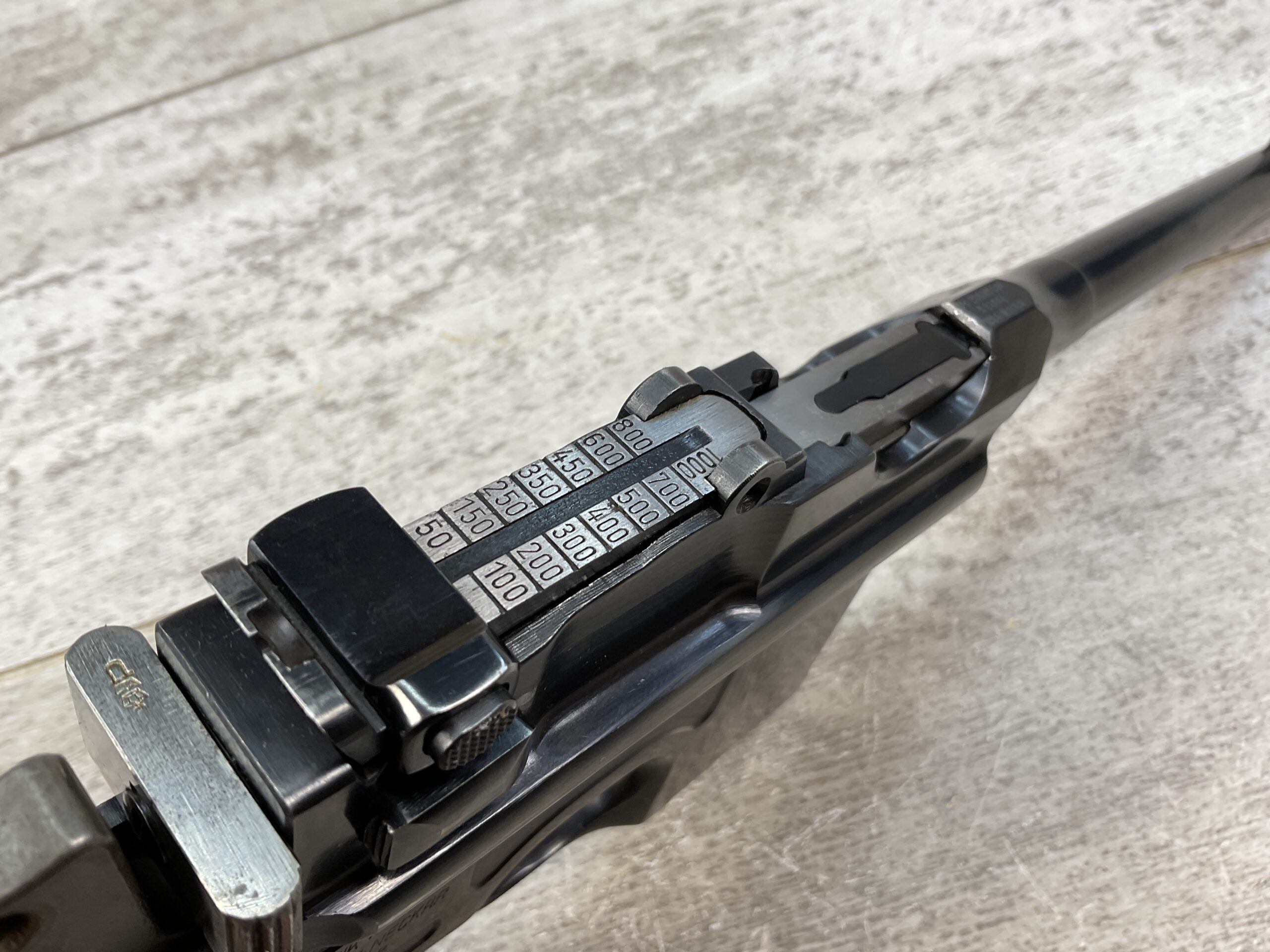 MAUSER C96 BROOMHANDLE 1930 COMMERCIAL W/MATCHING STOCK & LEATHER HARNESS, C&R #890911, 5 1/2″ BARREL, EXC 12 LINE WALNUT GRIPS, 50-1000 REAR SIGHT, FIXED BLADE FRONT SIGHT, 95%+ BLUE, EXC BORE & RIFLING, MAUSER BANNER WALNUT HOLSTER/STOCK W/JAP LEATHER HARNESS,