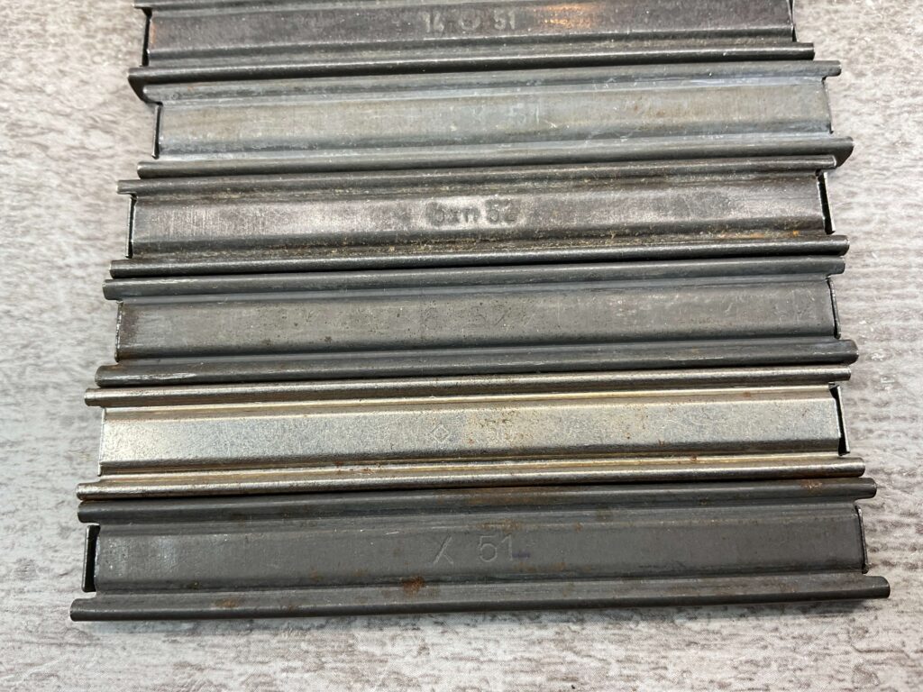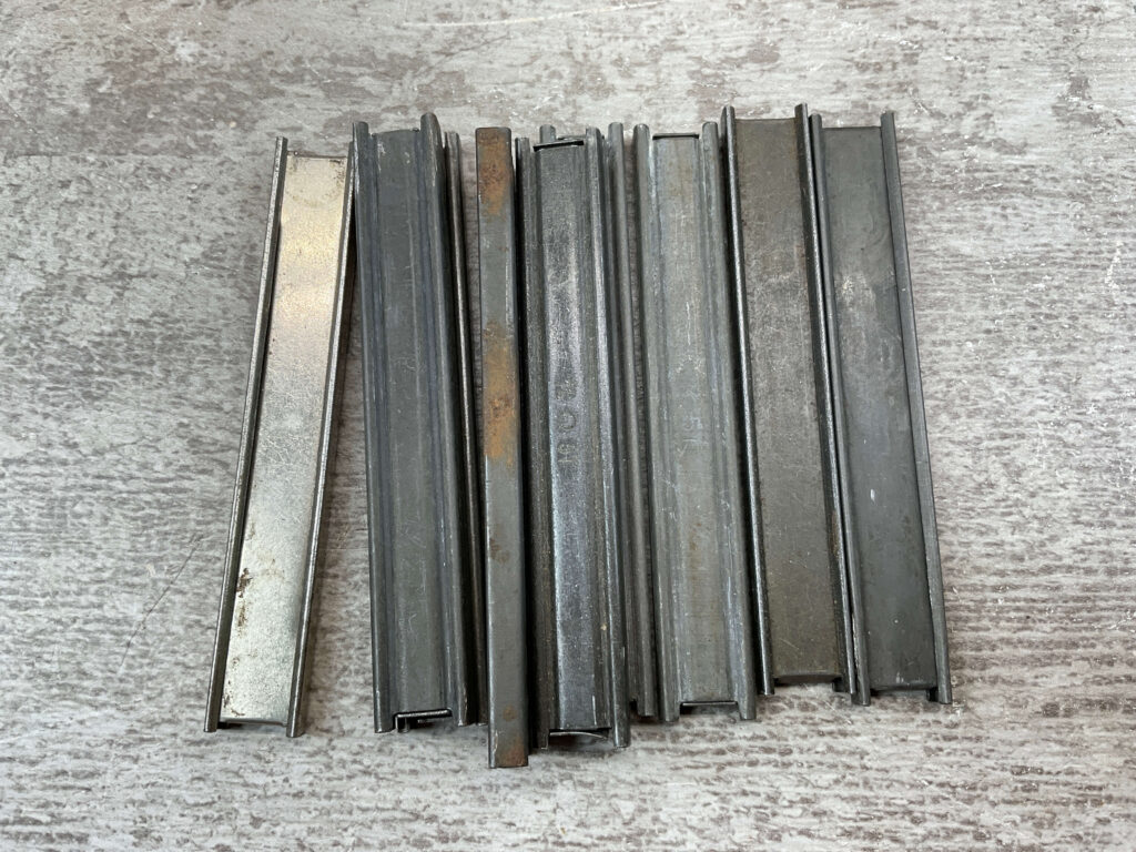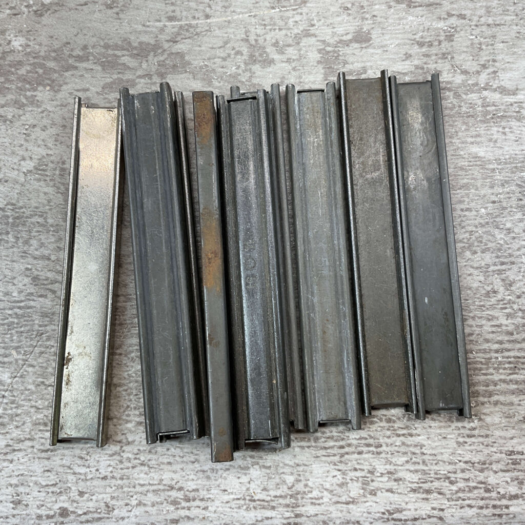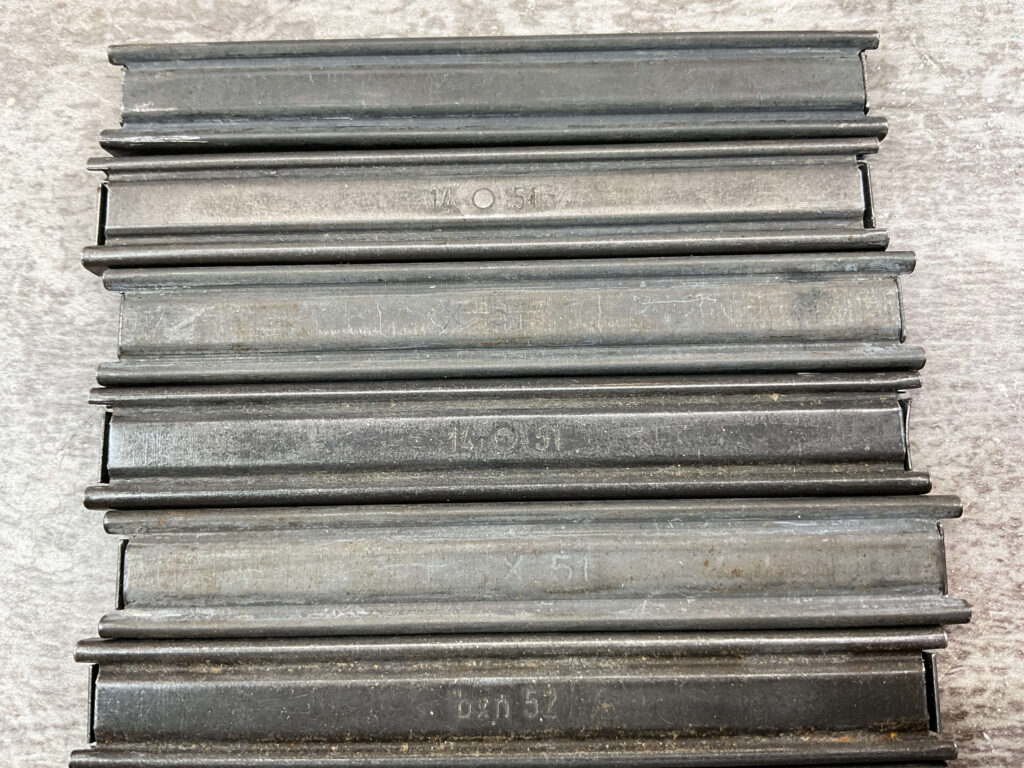 MAUSER C96 BROOMHANDLE STRIPPER CLIPS, QTY 9, VARIOUS MARKINGS