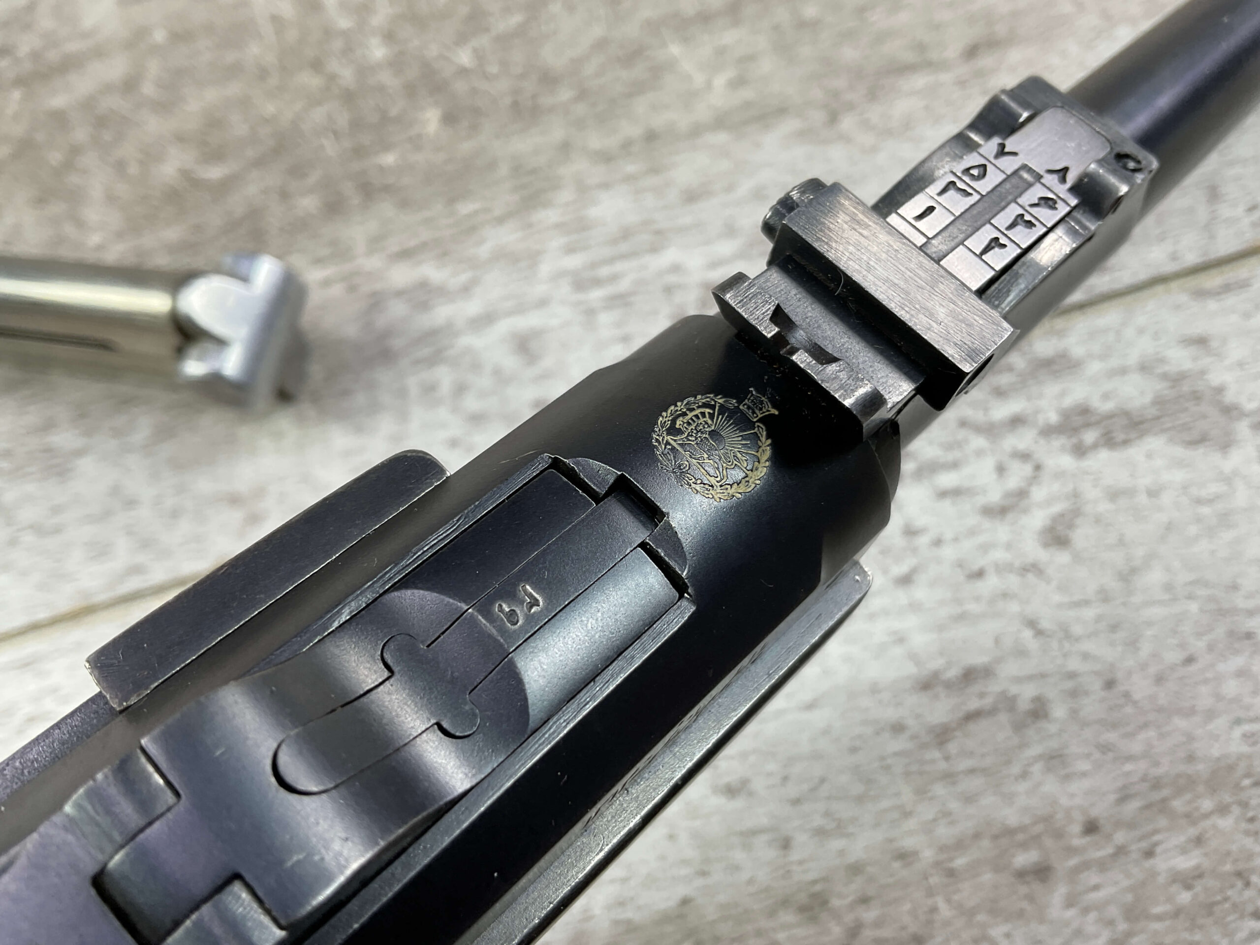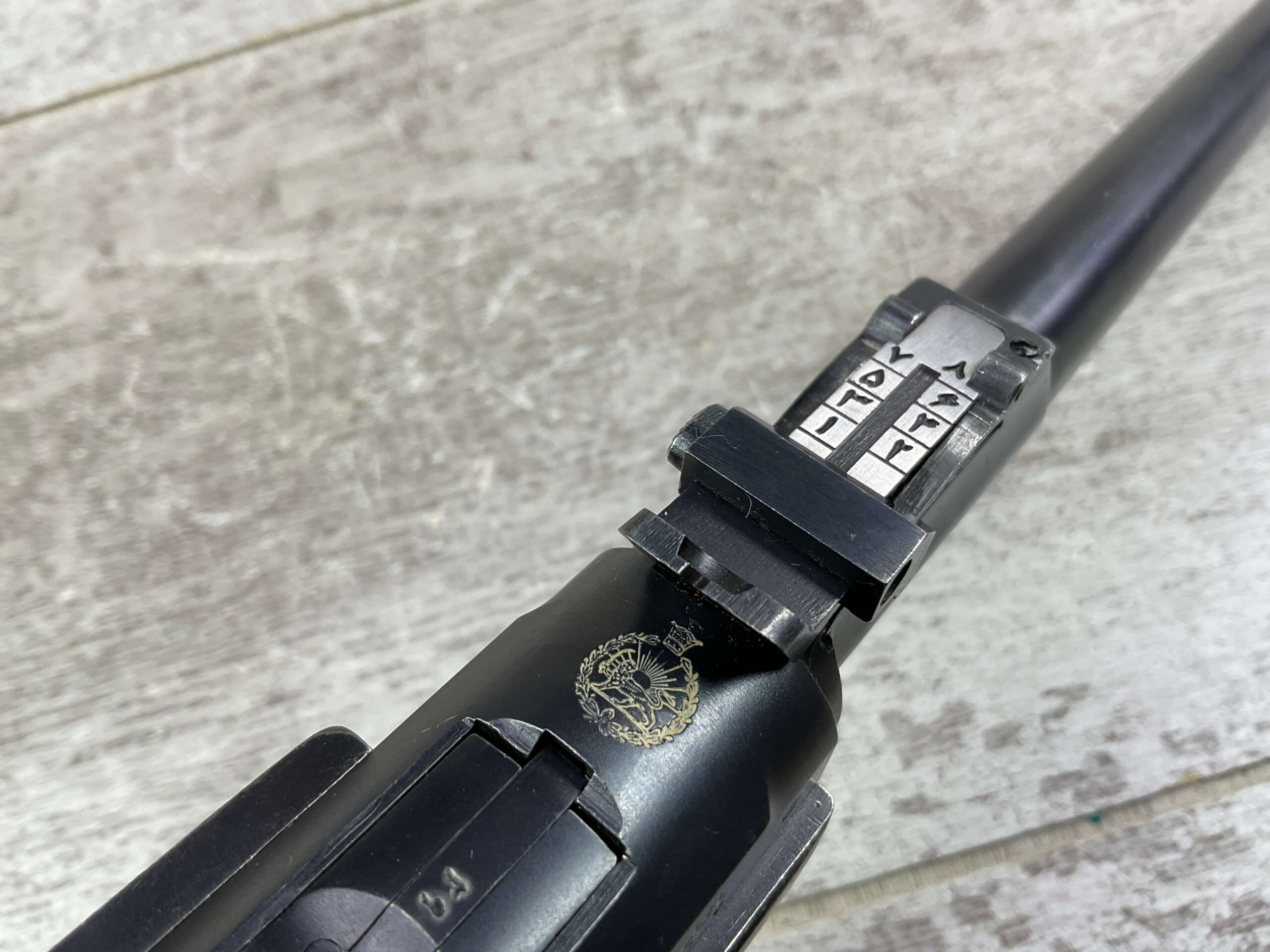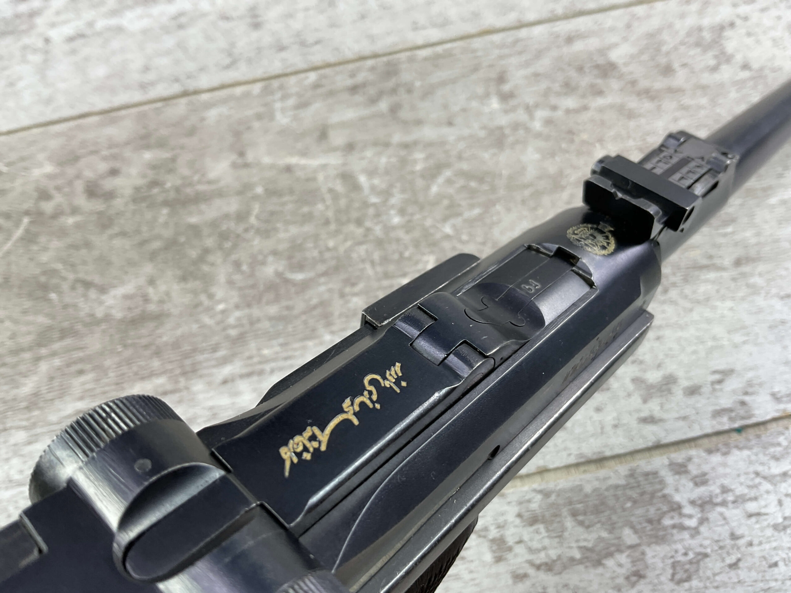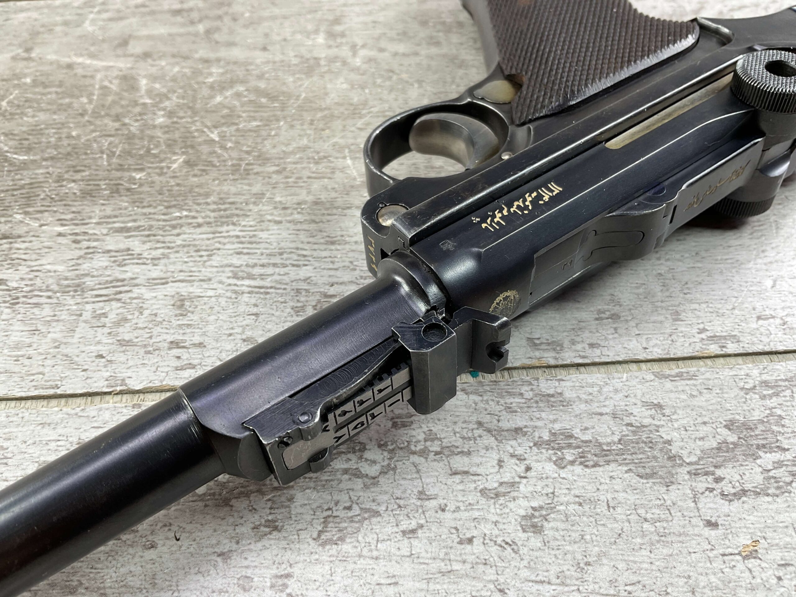 MAUSER LP.08 PERSIAN ARTILLERY 9MM SEMI AUTO PISTOL, JAMES EARL JONES COLLECTION #3732, 7.9″ BARREL, EXC BRIGHT BORE & RIFLING, EXC ORIGINAL FINISH, EXC GRIPS, PERSIAN ALUMINUM BASE MAGAZINE, NUMBERS & MARKING IN FARSI, GOOD STRAWED SMALL PARTS, PERSIAN CREST ON CHAMBER, FARSI NUMBERS ON REAR SIGHT, VERY SHARP W/ NO IMPORT MARK, CONDITION AS SHOWN IN PICTURES, FROM THE JAMES EARL JONES “FAVORITES” COLLECTION W/ CERTIFICATE OF AUTHENTICITY.