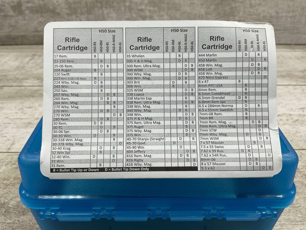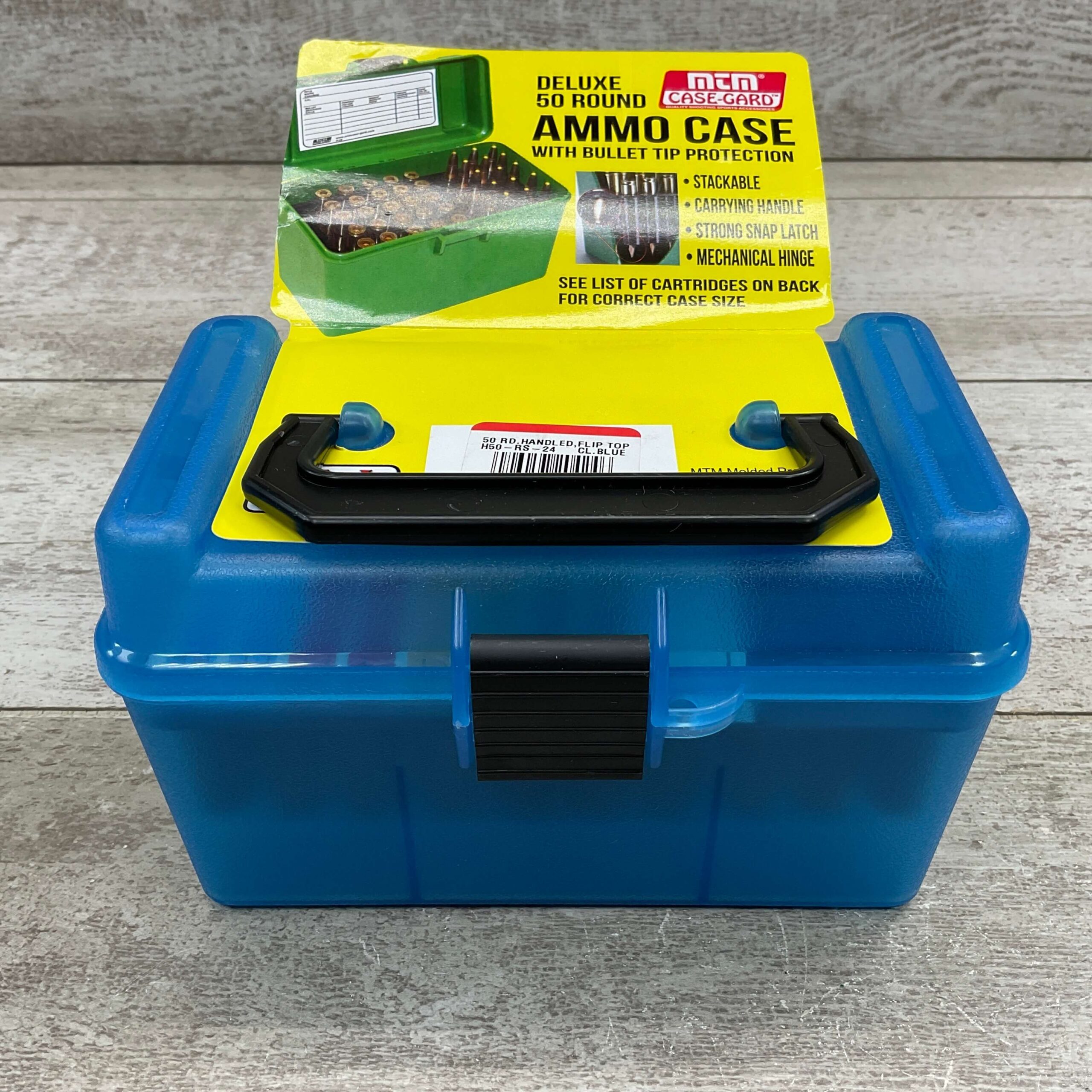 MTM CASE-GARD DELUXE 50 ROUND AMMO CASE WITH BULLET TIP PROTECTION, H50-RS, NEW, CLEAR BLUE