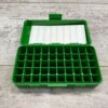 Sturdy base with a flip-top lid covering 50 rds. a strong snap latch secures each cover, multi-stack design, MTP509