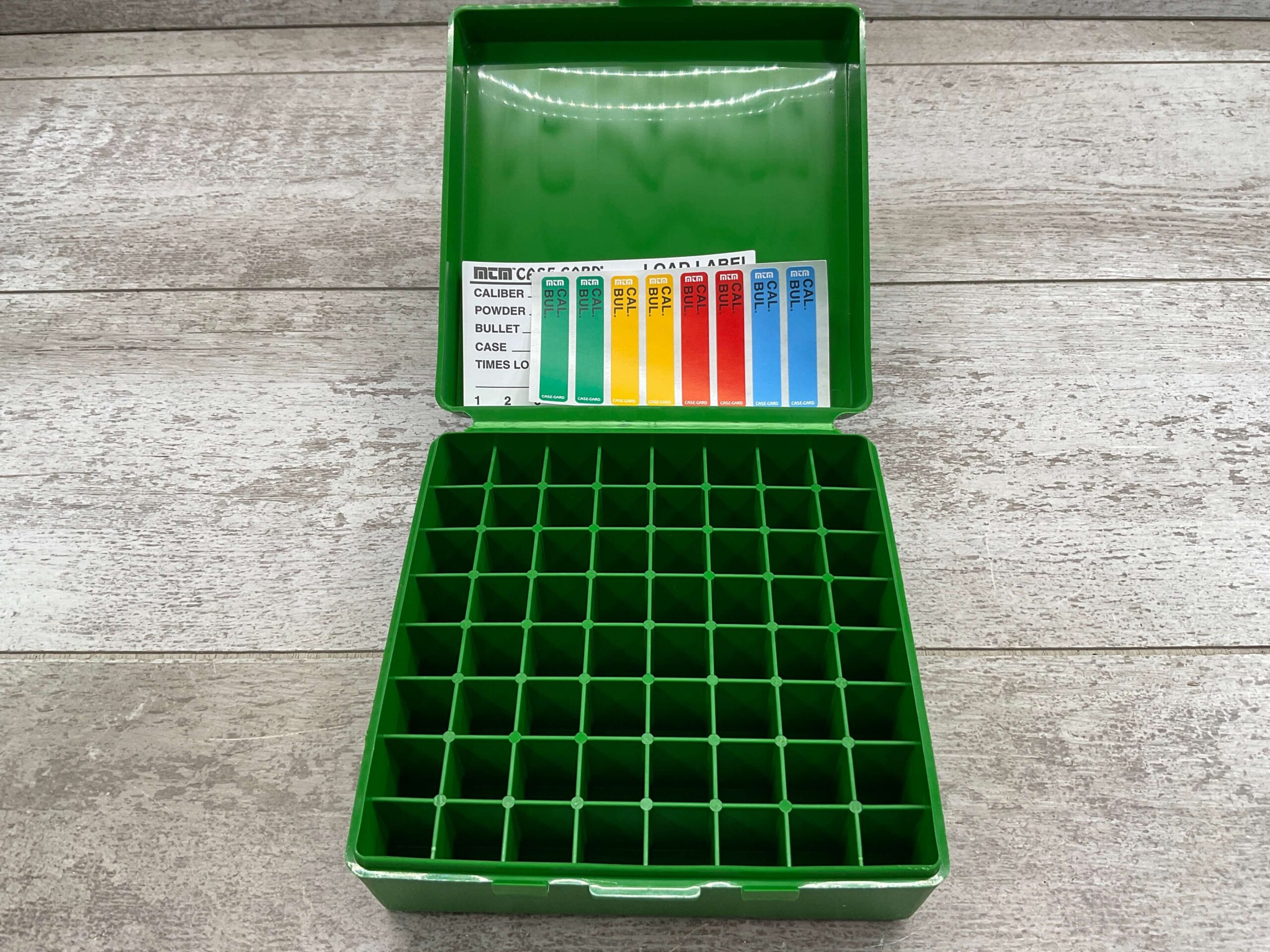 These stackable, easy-to-grip textured surface fliptop handgun ammo boxes hold up to 64 rounds of the “big boys.” Load label included.