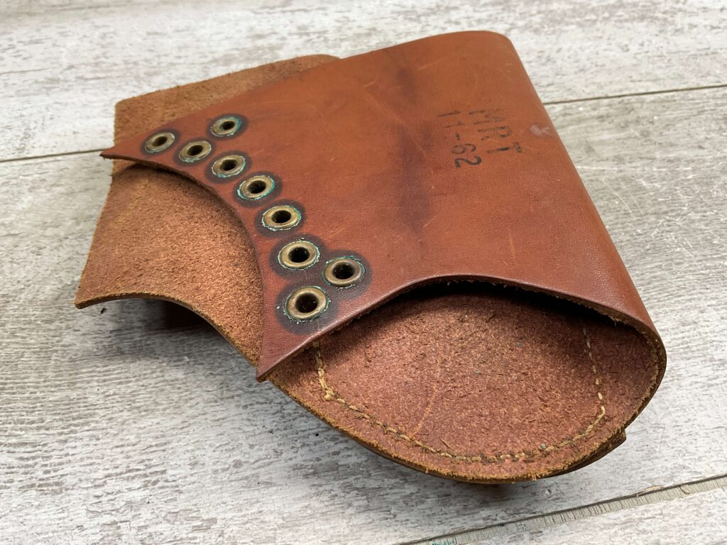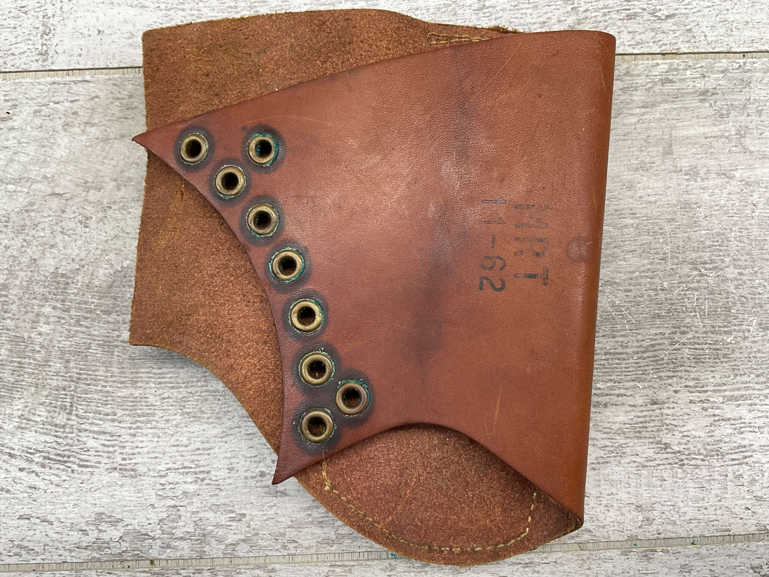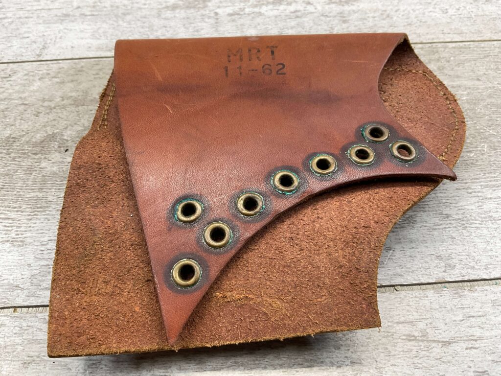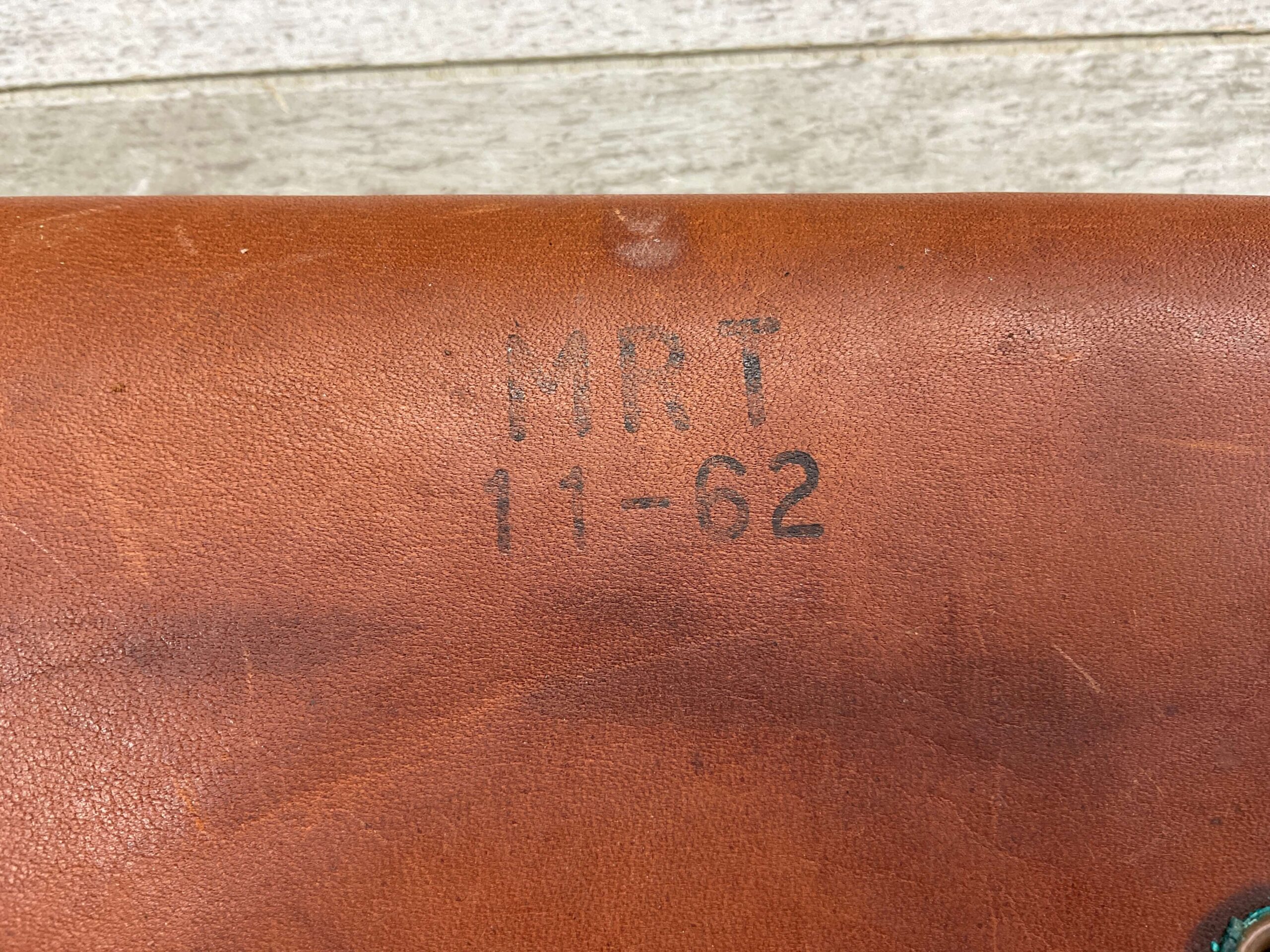 ORIGINAL LEATHER M1 GARAND SNIPER CHEEK PAD, HAS MARKING ON BACK “MRT / 11-62”, MISSING LACE, IN FANTASTIC CONDITION.