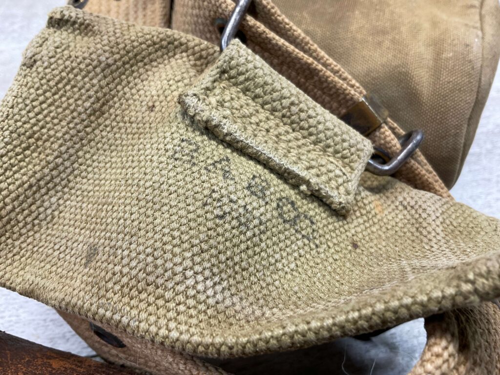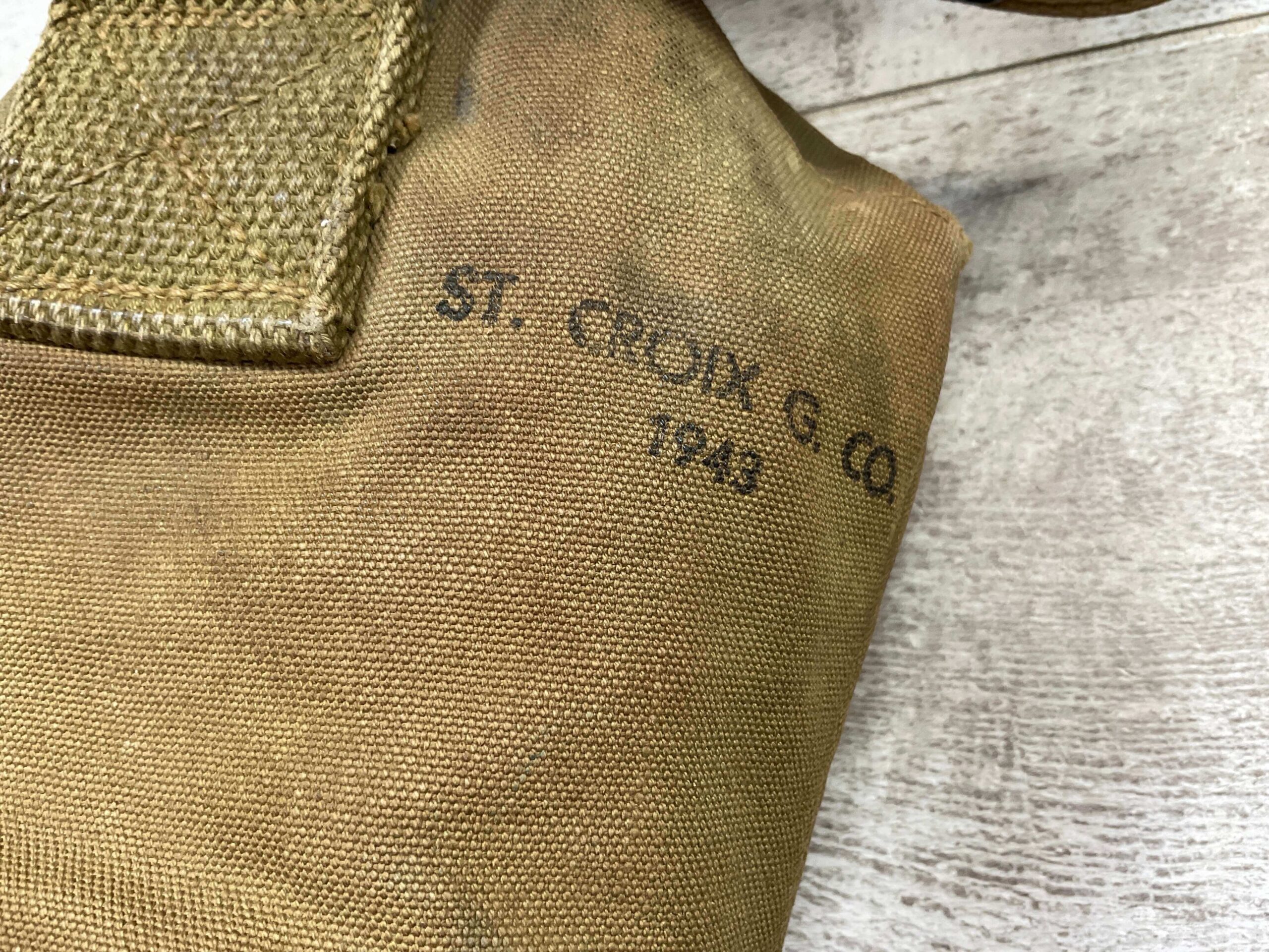 - 1 U.S. STAMPED CANTEEN POUCH (STAMPED ON BACK “ST. CROIX G. CO. / 1943”)