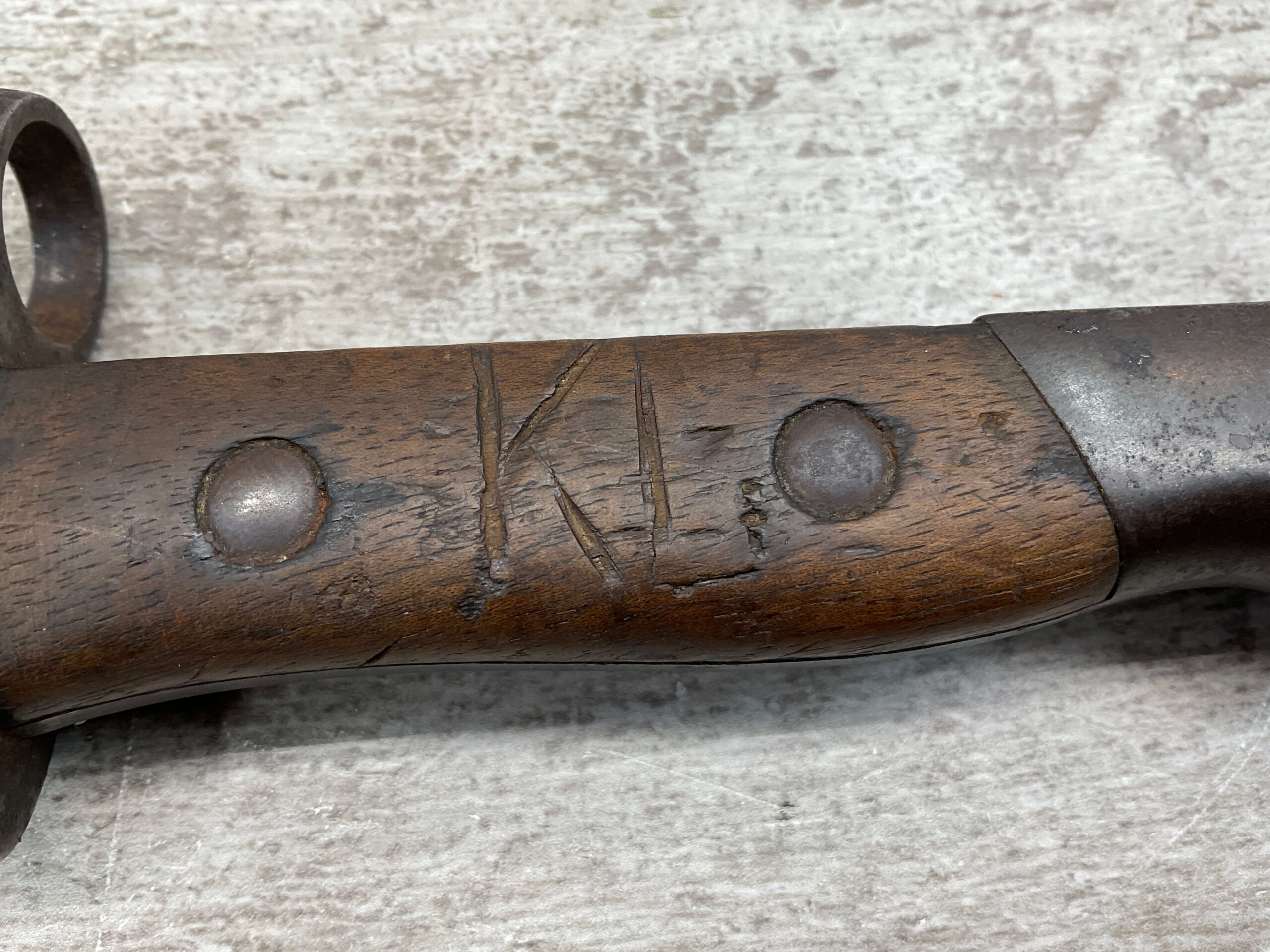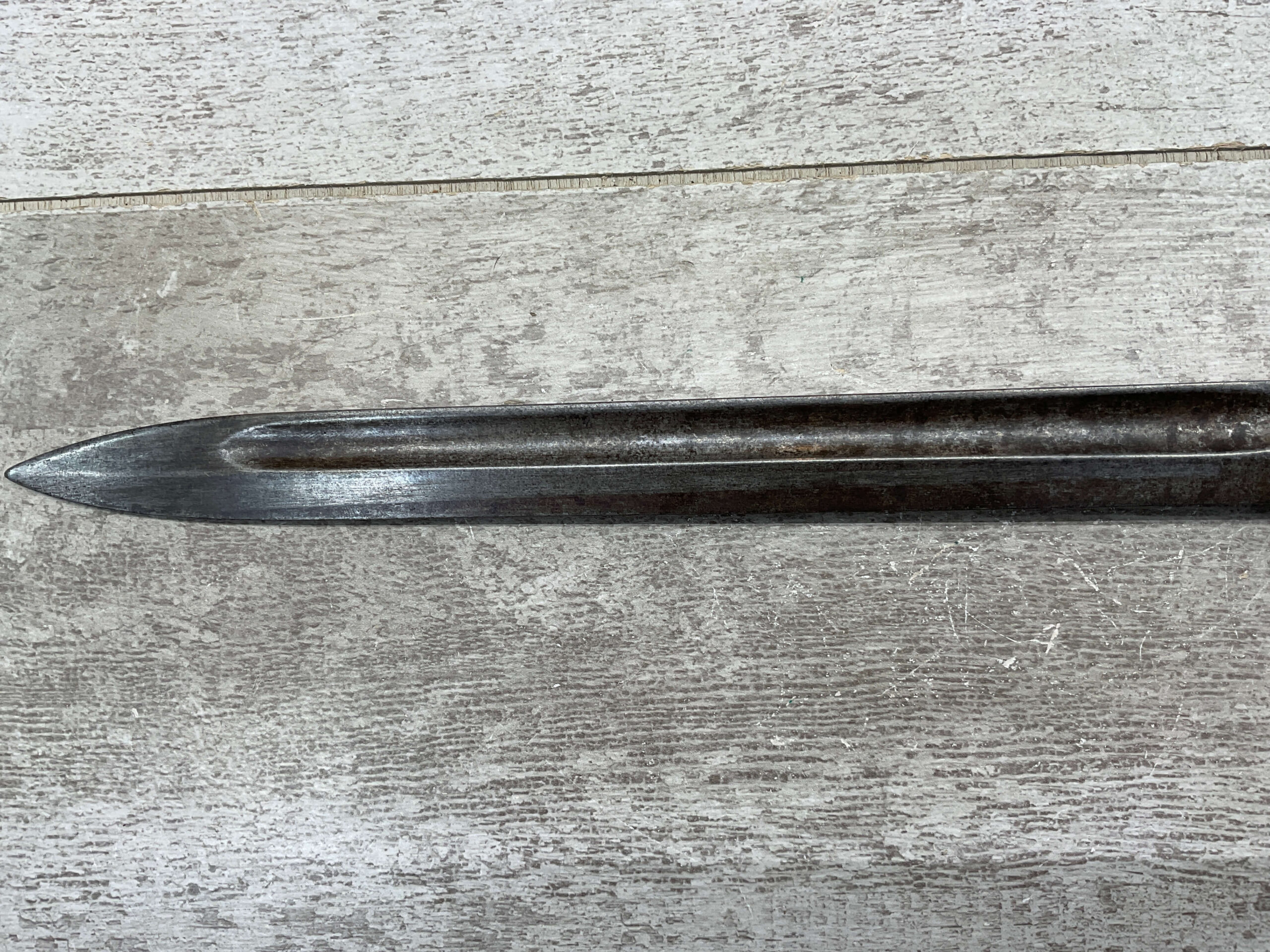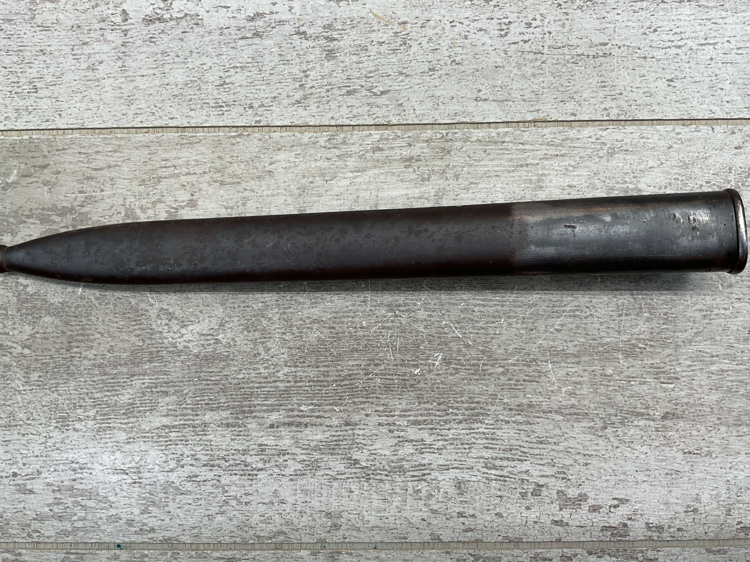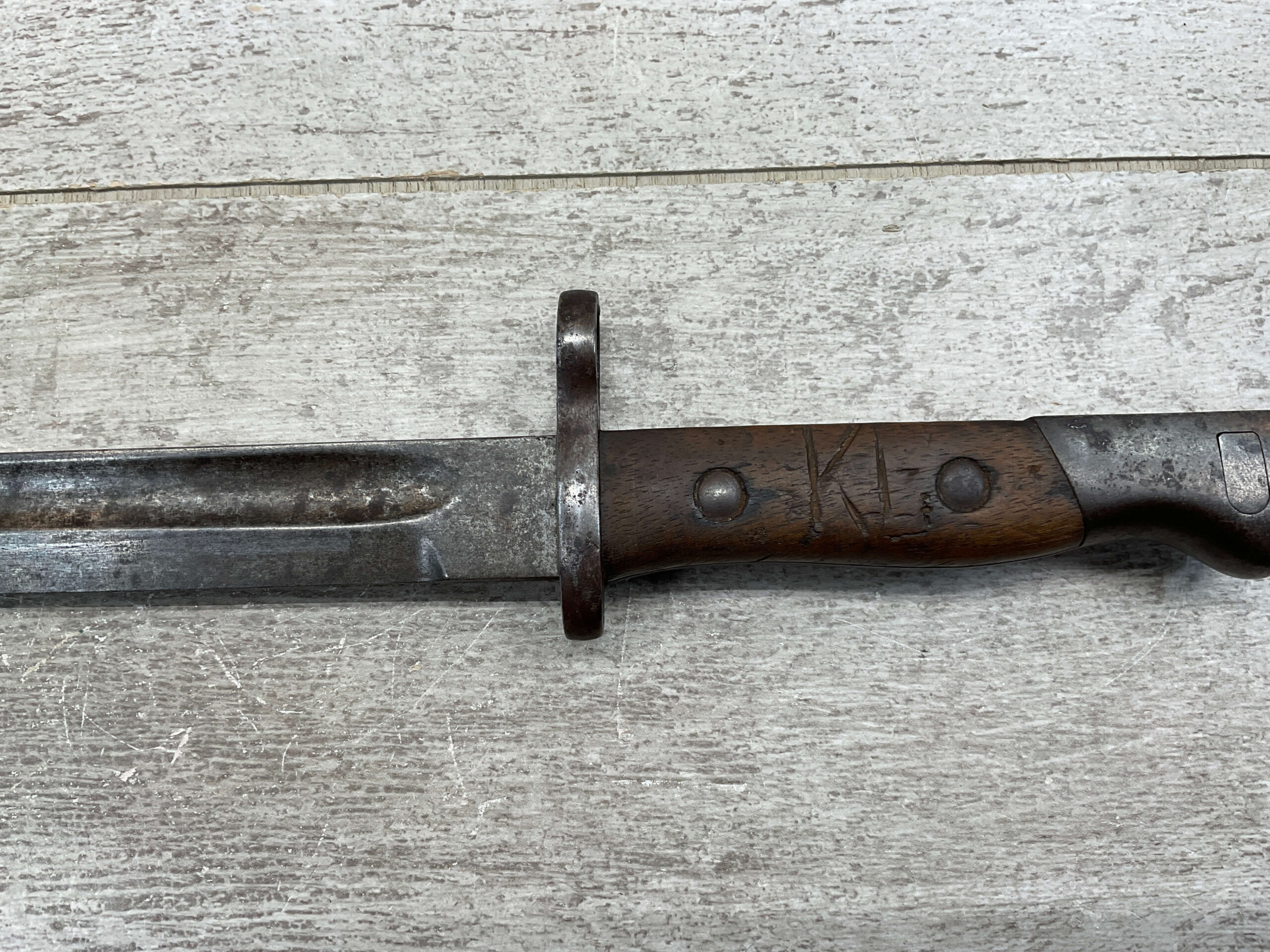 PORTUGAL M1904 BAYONET & SCABBARD BY C.G.H., 15 15/16″ OVERALL LENGTH, 11 3/8″ BLADE LENGTH, BLADE MARKED “C.G.H.”, VG OVERALL