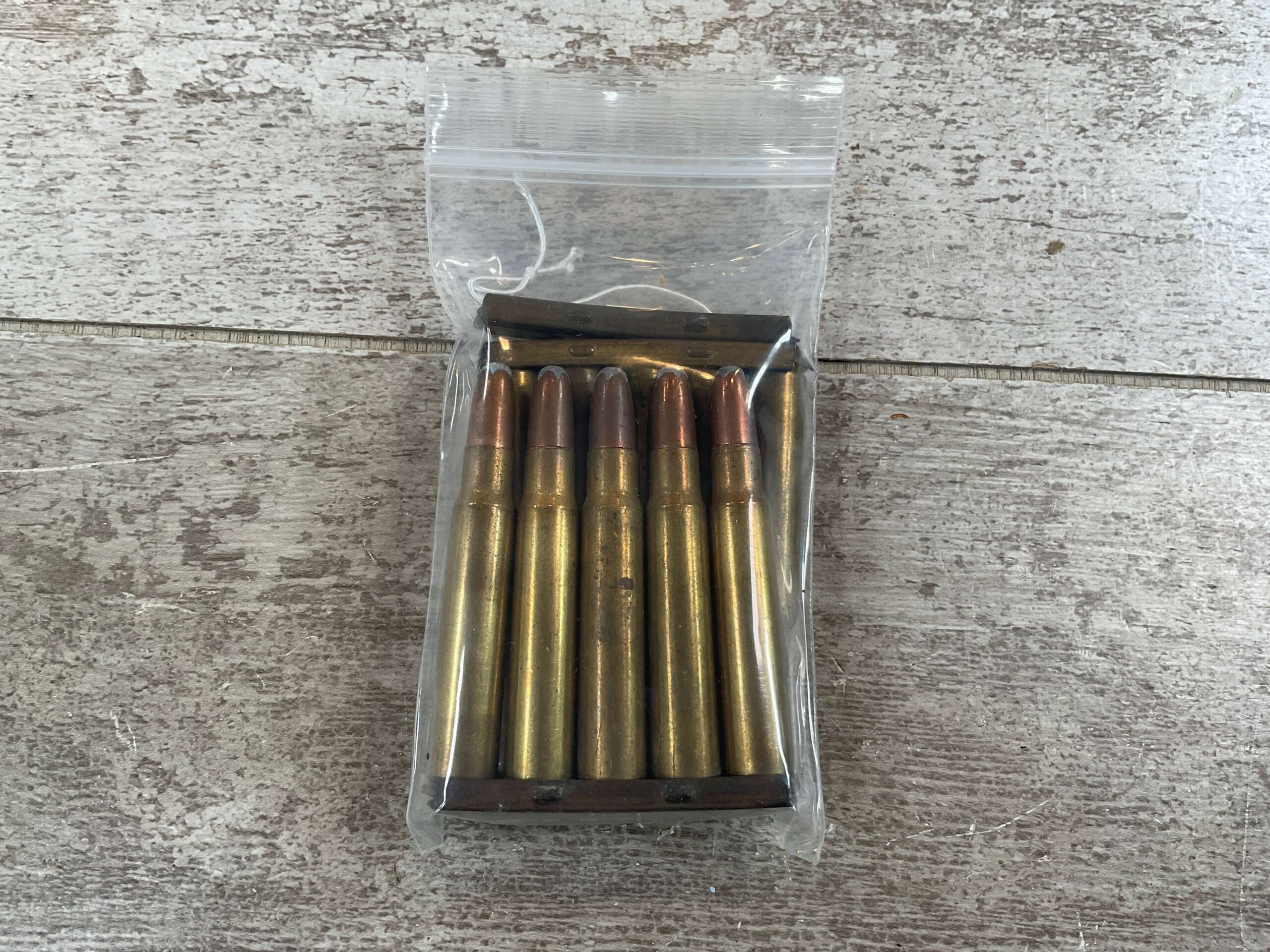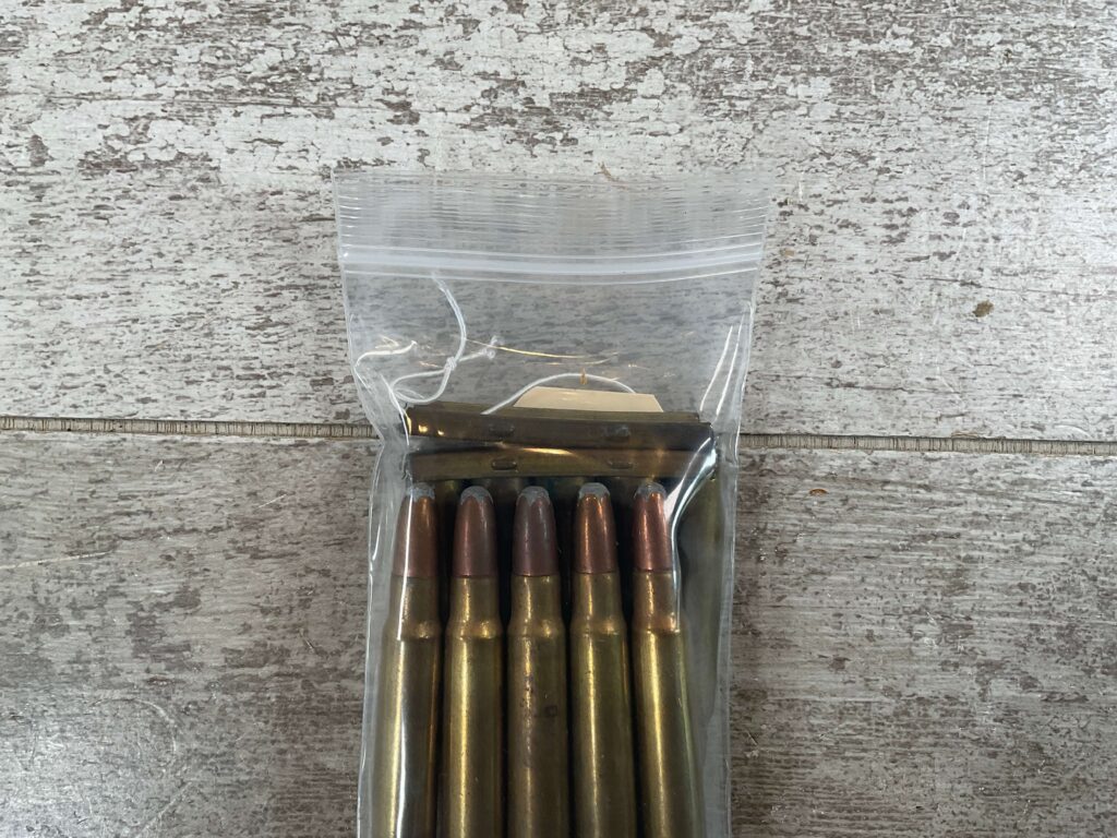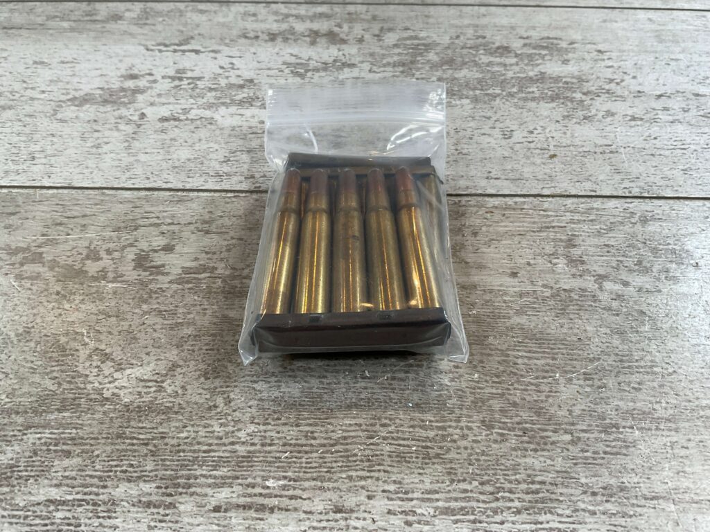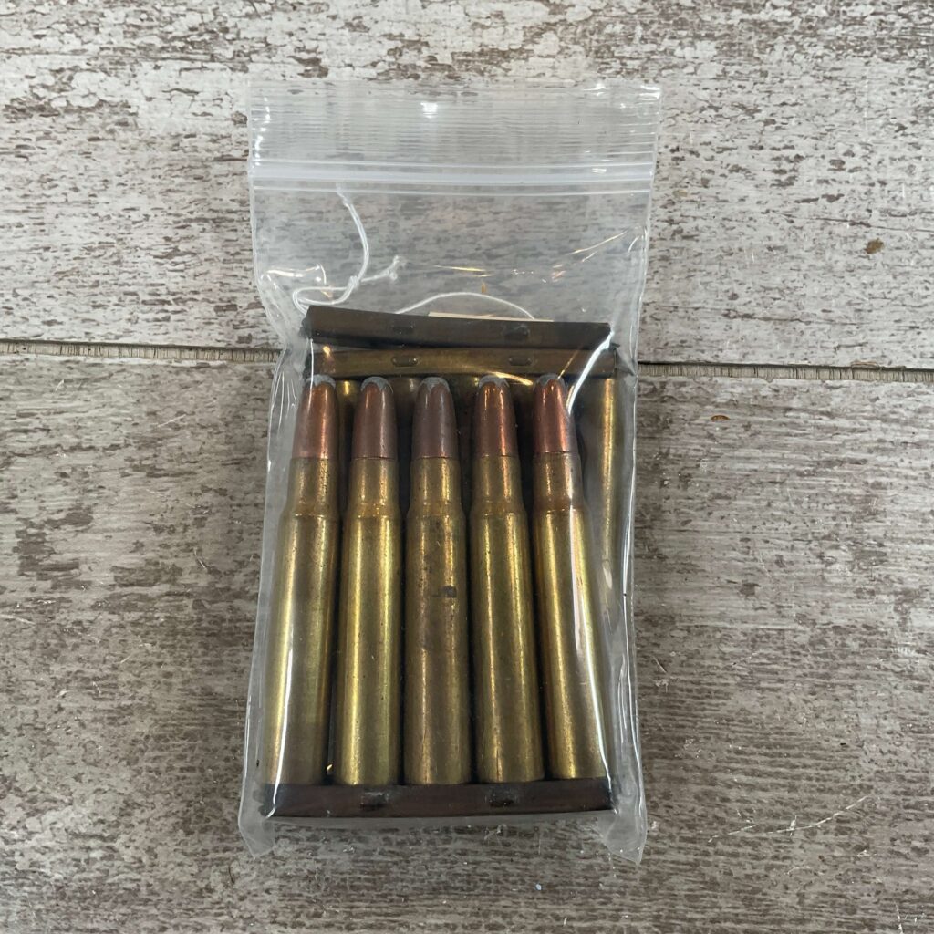 REM-UMC 8MM MAUSER ON STRIPPER CLIPS, SOFT POINT, 10 CARTRIDGES AND 3 STRIPPER CLIPS, EXC CONDITION