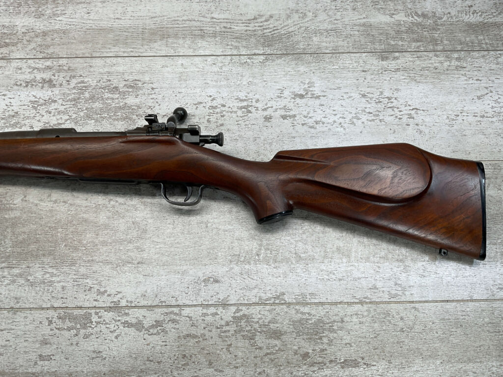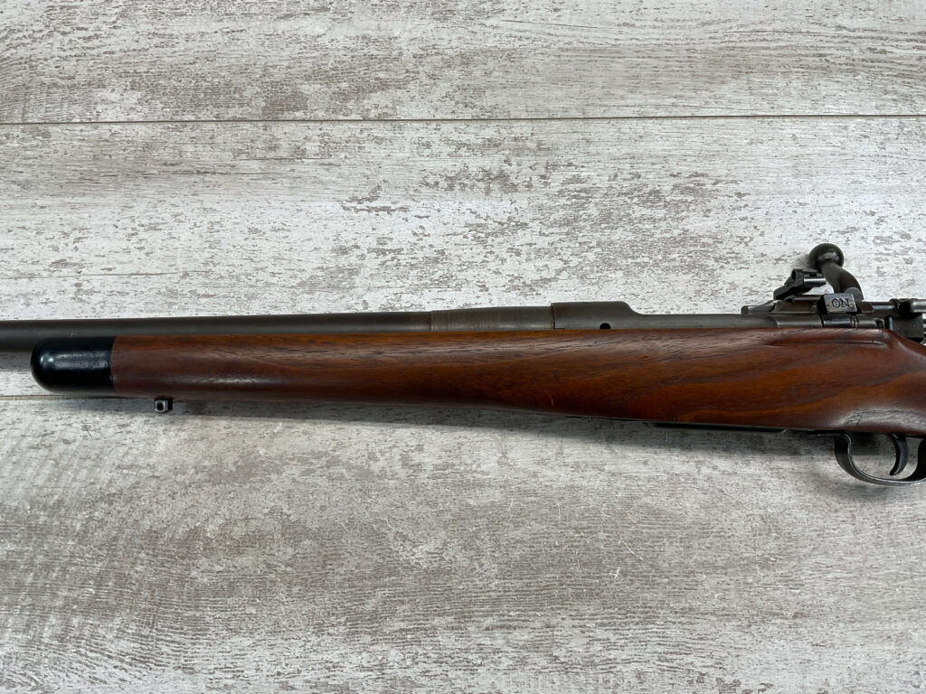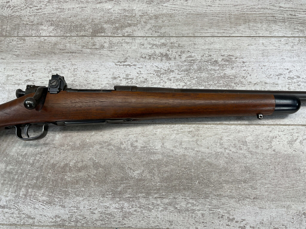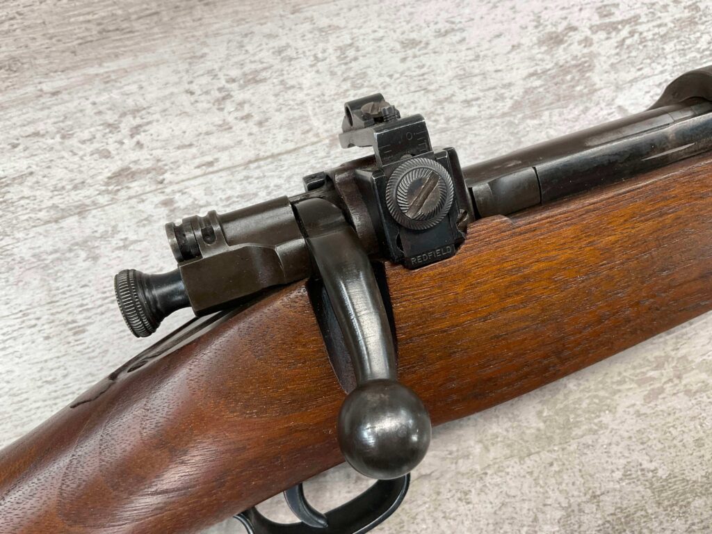 REMINGTON 1903 1942 SPORTERIZED .30-06 BOLT ACTION RIFLE #3297550, REDFIELD REAR SIGHT, EXC MONTE CARLO STOCK, ORIGINAL PARKERIZED FINISH, 10-42 MARKED 24″ BBL, EXC BORE & RIFLING, GREAT HUNTING RIFLE!!