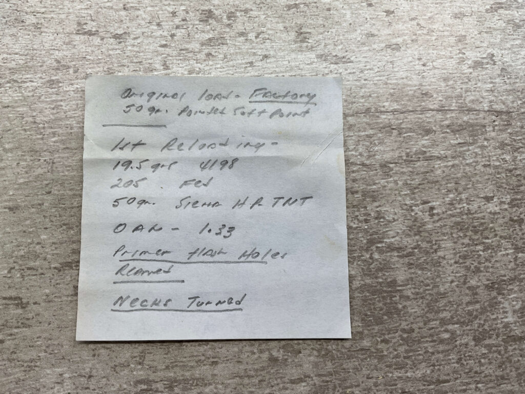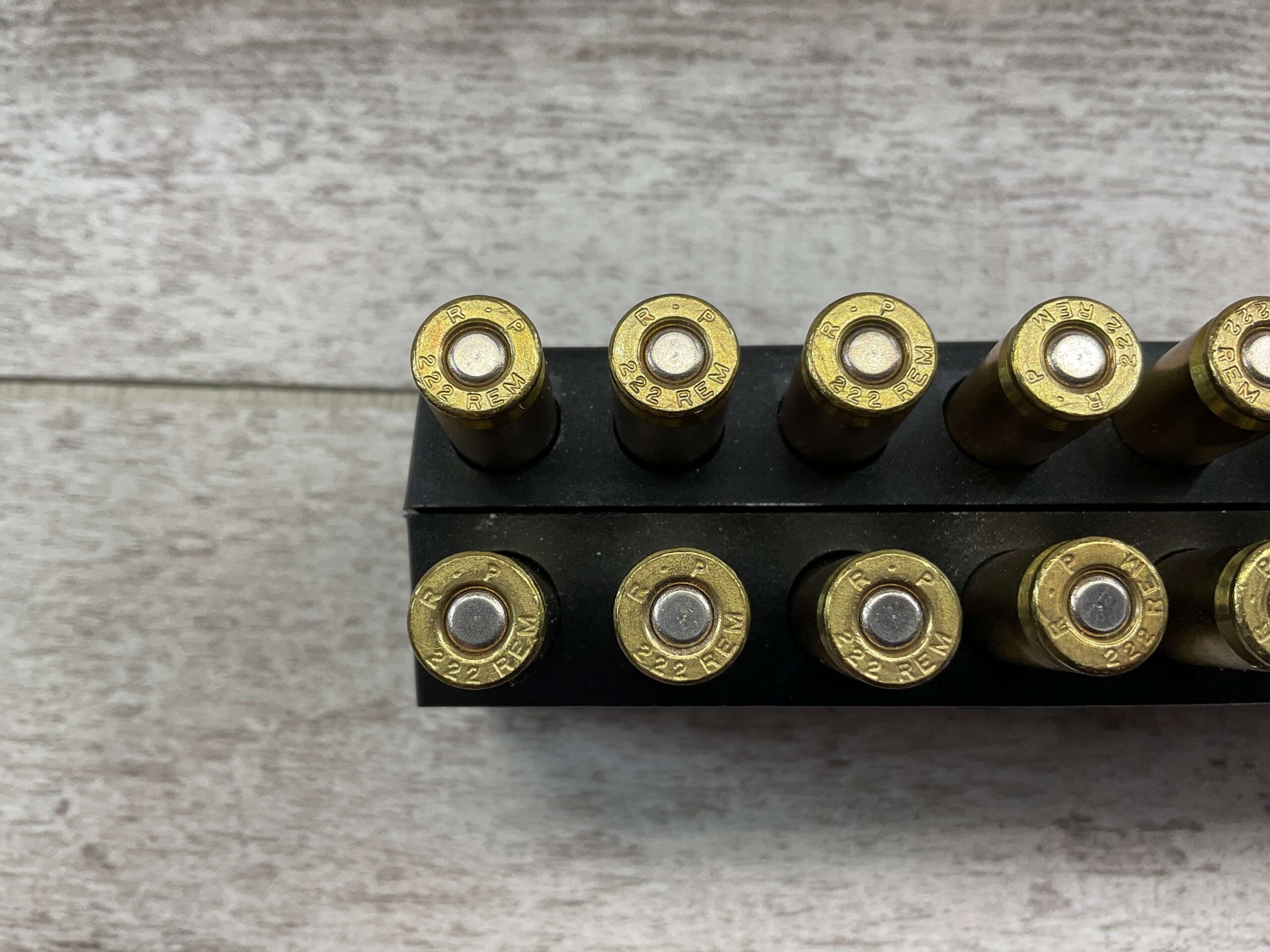 REMINGTON 222 CARTRIDGES, FIRST RELOAD 50 GRN HP TNT BULLET OAW 1.33, PRIMER HOLES REEMED AND NECKS TURNED, FULL BOX