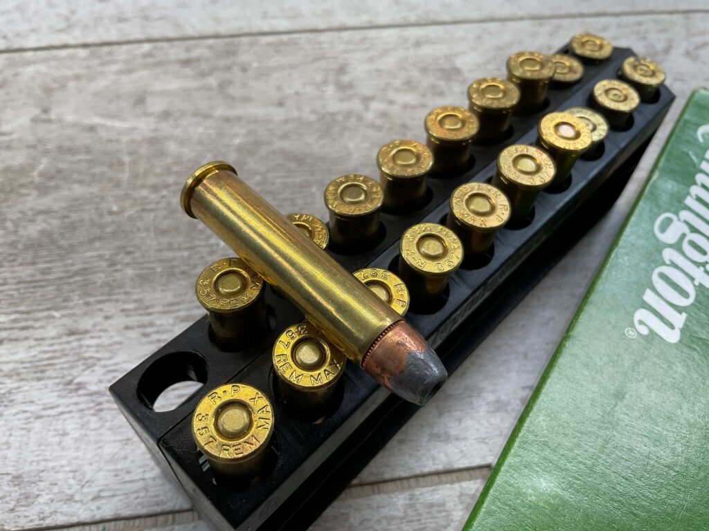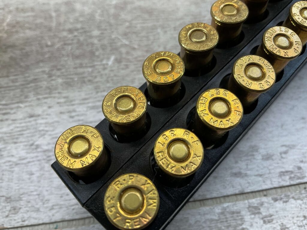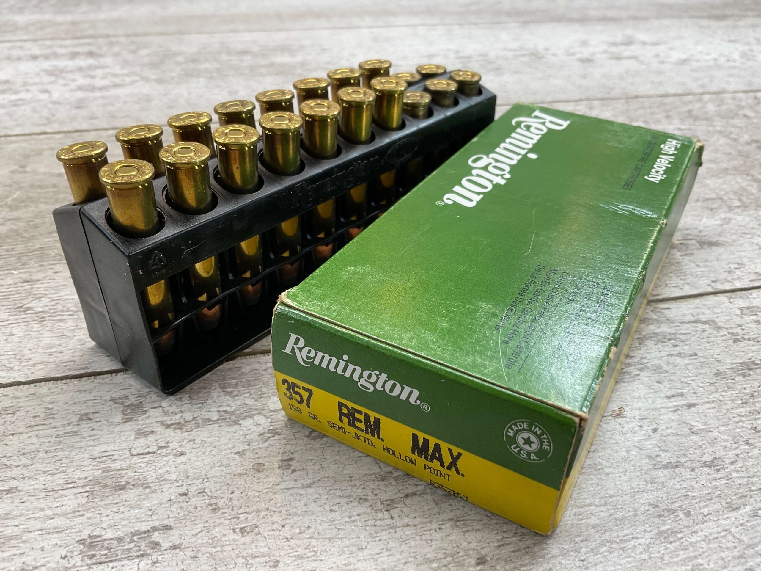 REMINGTON 357 REM MAX AMMO, QTY 15, PLUS BRASS OF 5 SPENT ROUNDS, 158 GRAIN, SEMI JKTD HOLLOW POINT