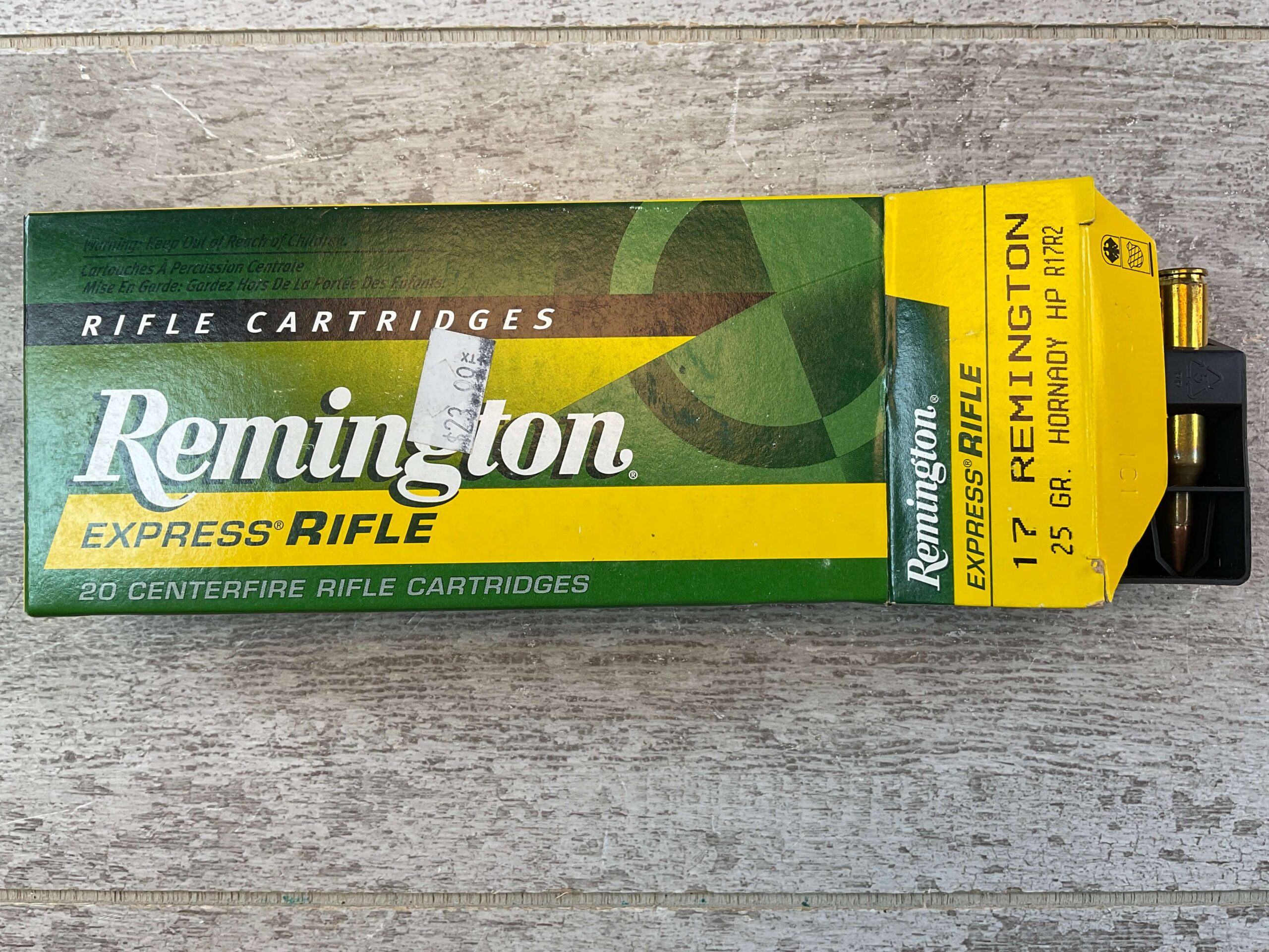 REMINGTON EXPRESS RIFLE, 17 REM. 25 GR. HORNADY HP AMMO, QTY 20, ITEM #R17R2