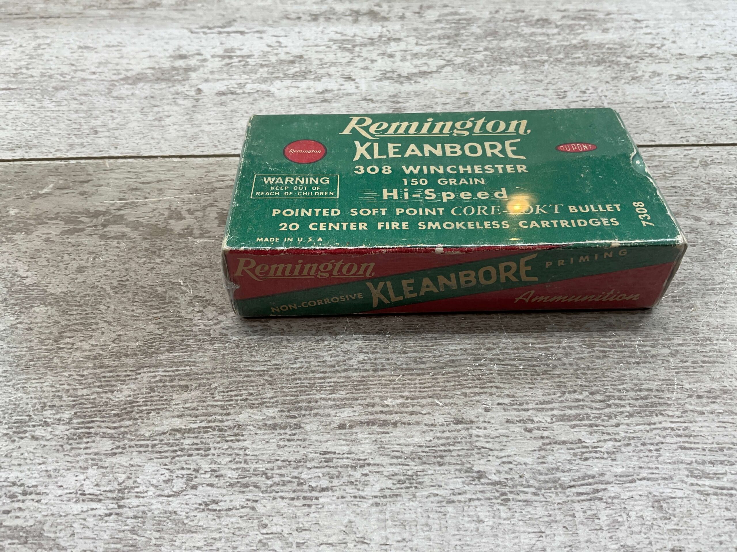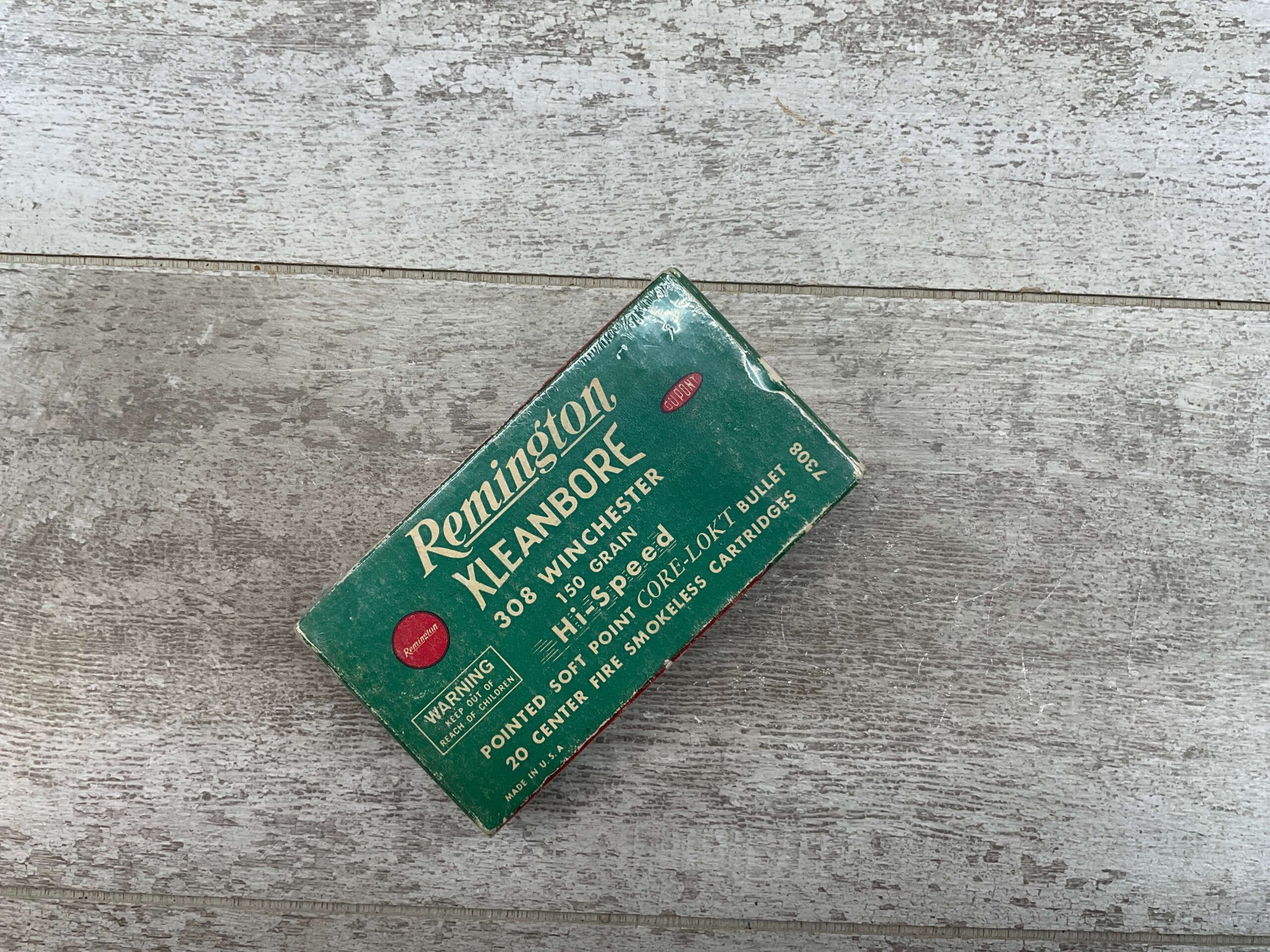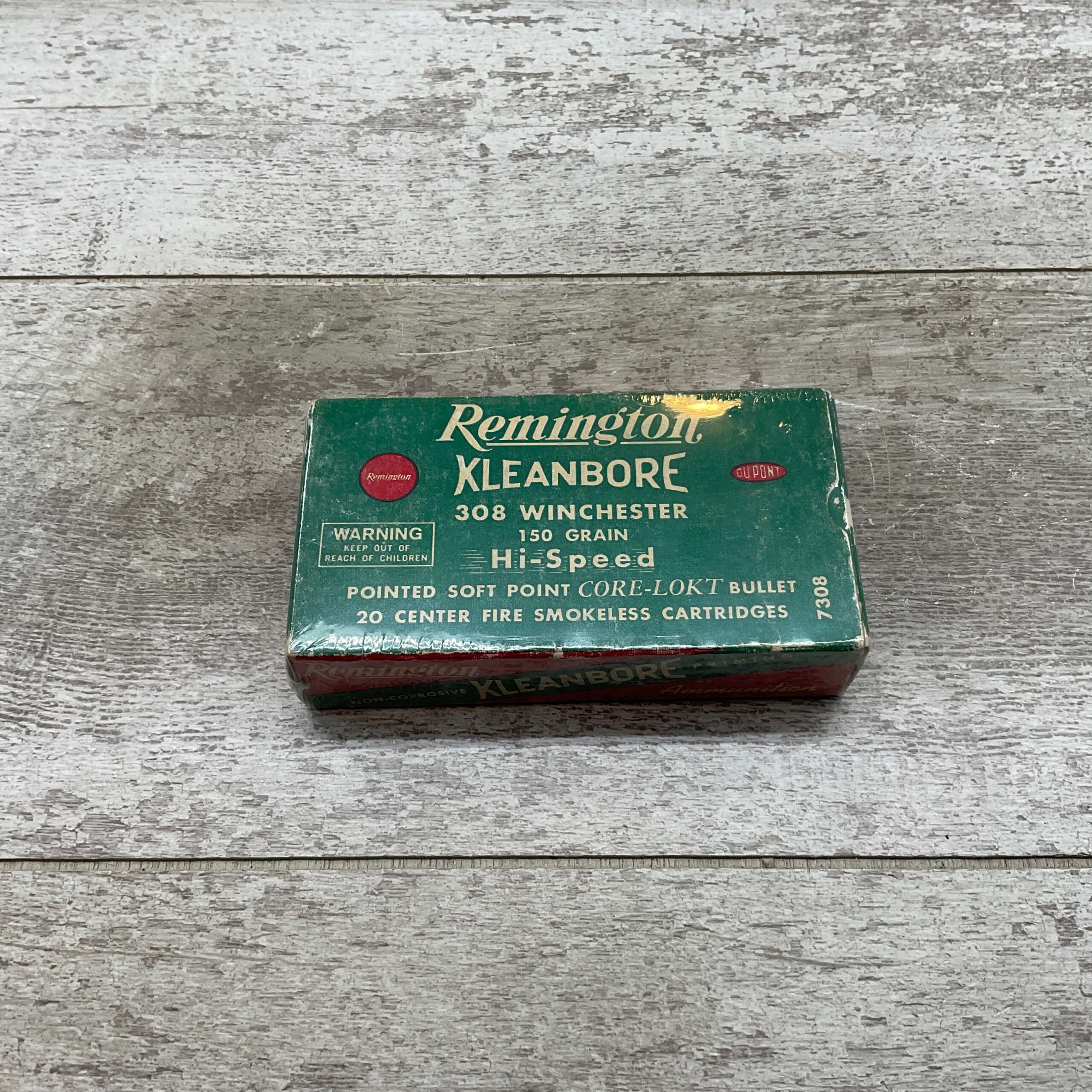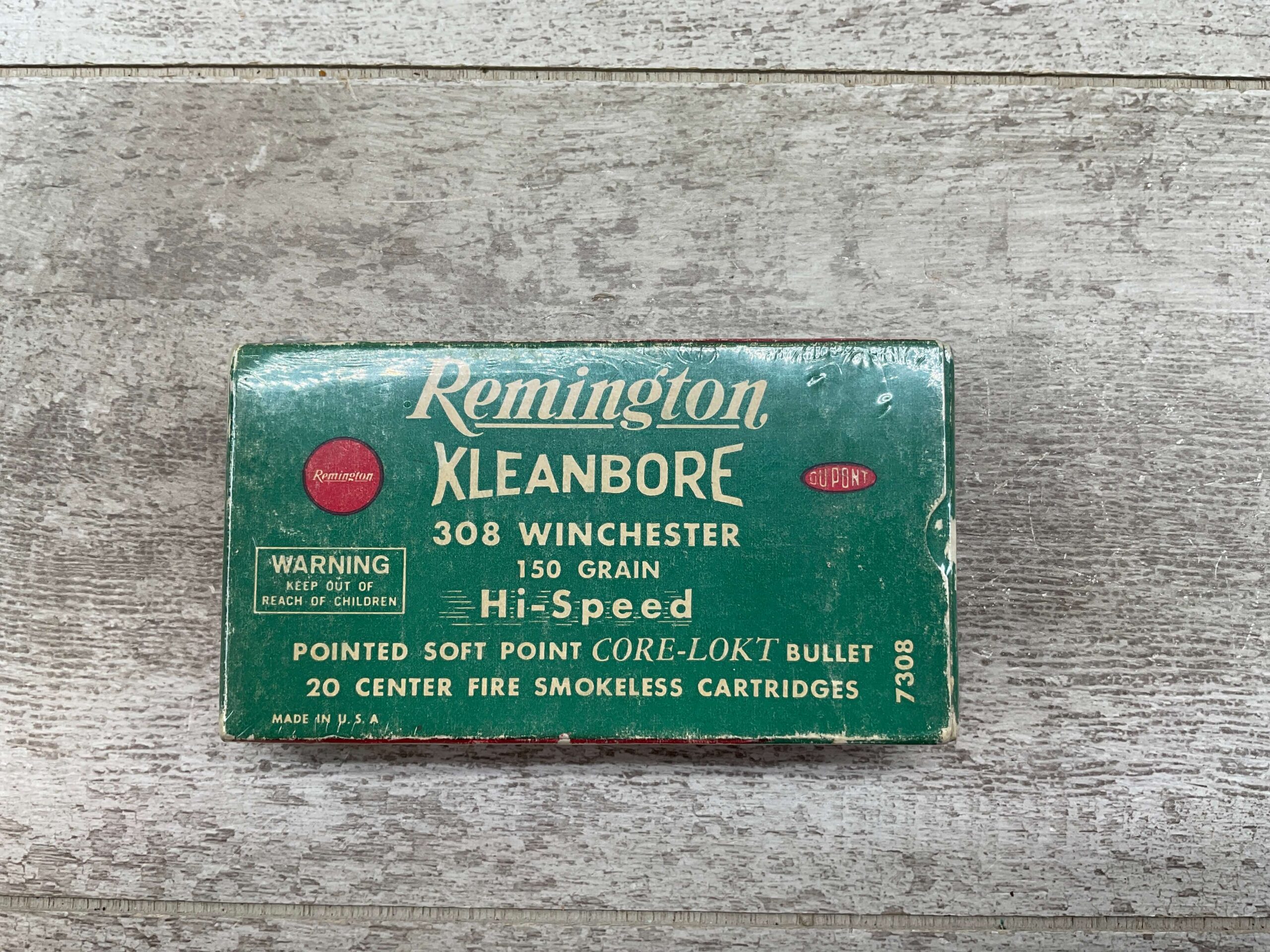 REMINGTON KLEANBORE 308 WINCHESTER 150 GRN HI-SPEED, CENTER FIRE SMOKELESS, VINTAGE SEALED BOX, FULL BOX, QTY 20