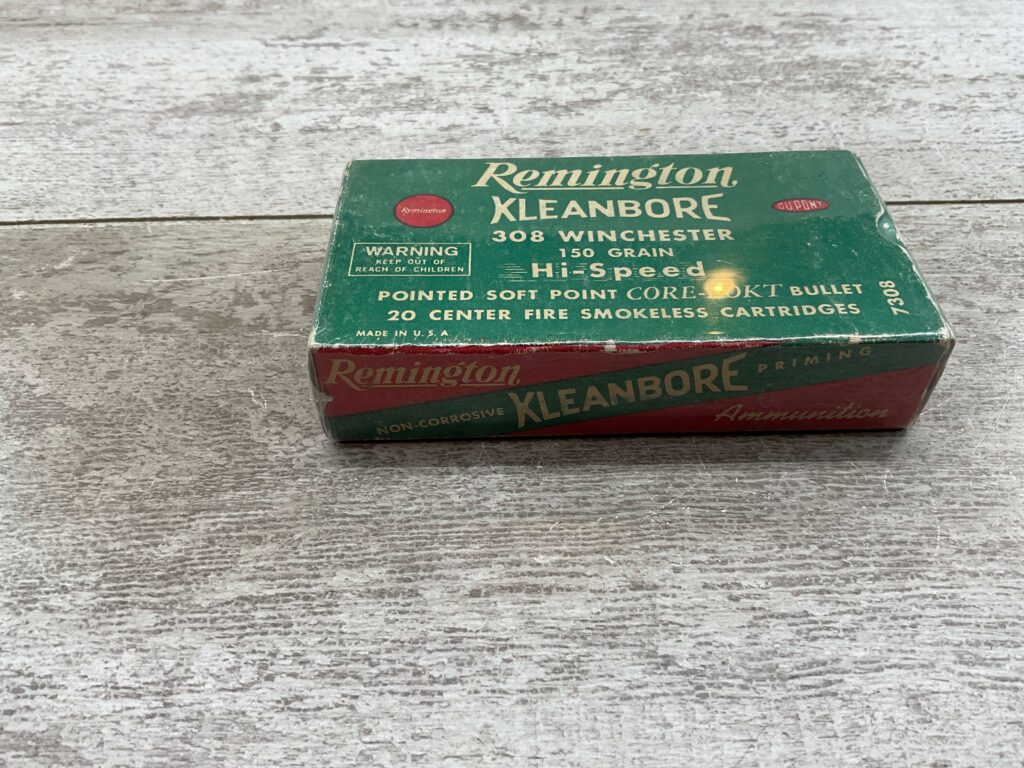 REMINGTON KLEANBORE 308 WINCHESTER 150 GRN HI-SPEED, VINTAGE SEALED BOX, FULL BOX #4-08804-MT