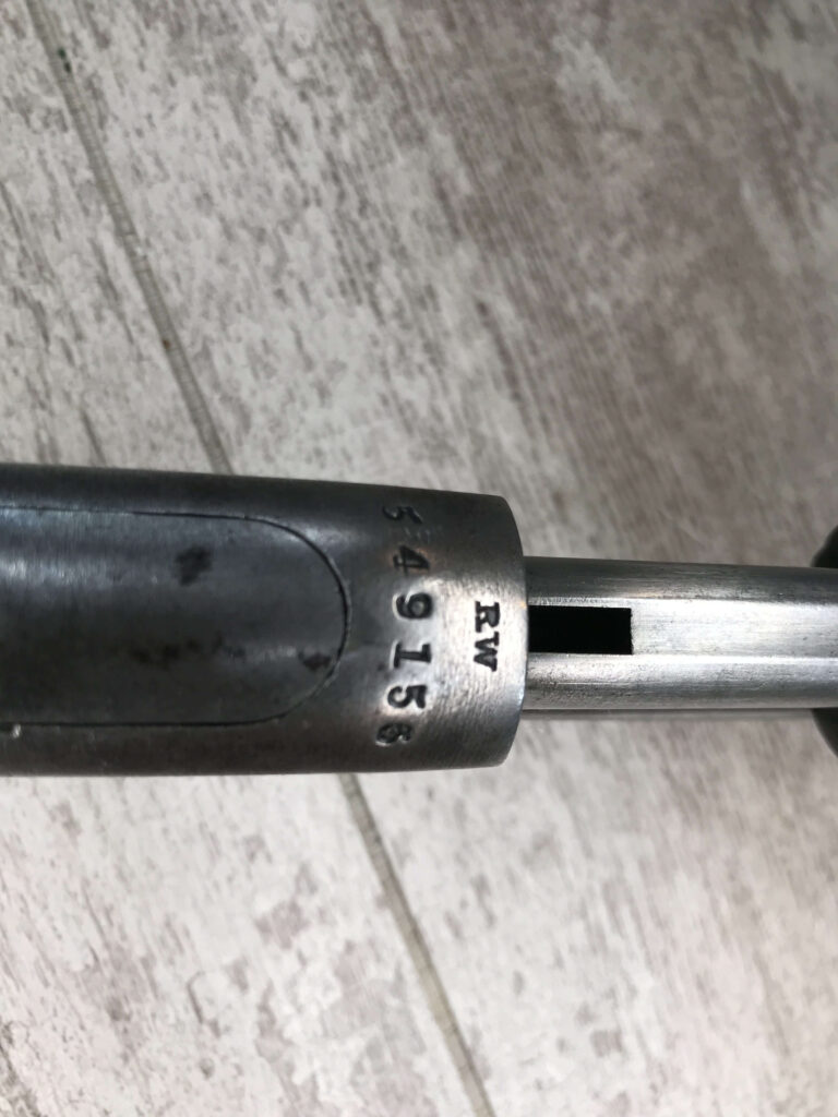 SKU#332 REMINGTON MODEL 12A .22 S/L/LR PUMP RIFLE #470242 MAGAZINE FEED TUBE, PUMP ACTION, BRASS BUTT PLATE, EXC WOOD, LIGHT RUST ON OCTAGON BARREL, SMOOTH ACTION, “CUSTOM” FLASH SUPRESSOR (THREADED BARREL), VG OVERALL CONDITION, 80%