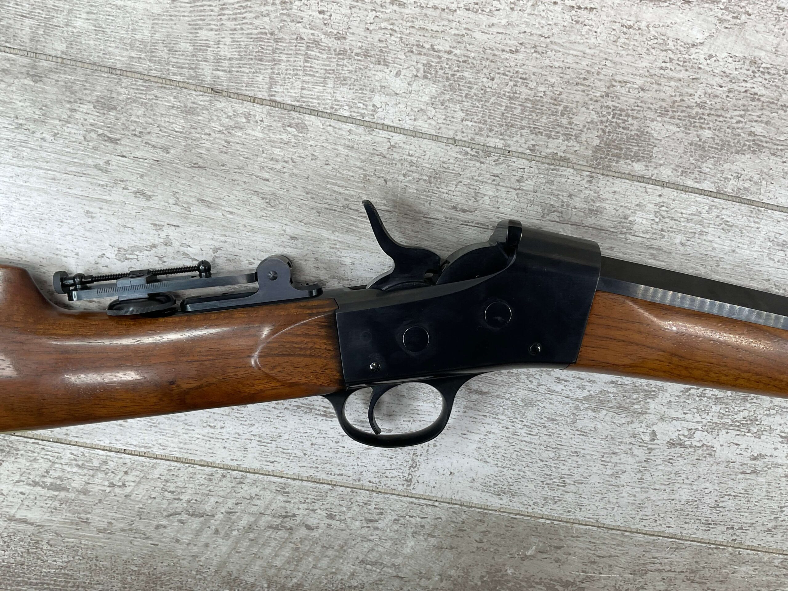 REMINGTON ROLLING BLOCK .50-70 MODEL 1902 SPORTING RIFLE, CUSTOM BUILT BY HOLMES #4370785, BUILT ENTIRELY BY BOB & DICK HOLMES, SIGHTS & BARREL INCLUDED, BEAUTIFUL STOCK, VERY NICE!