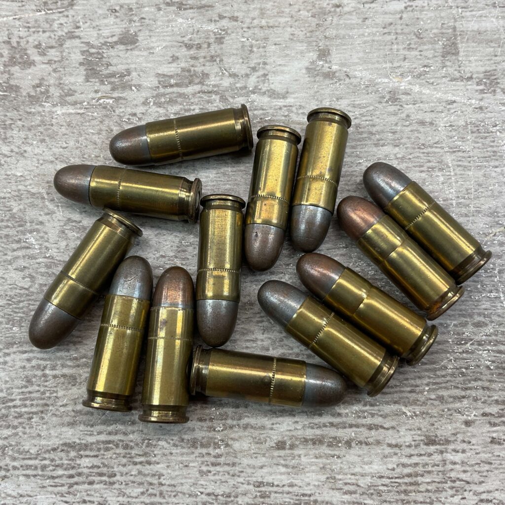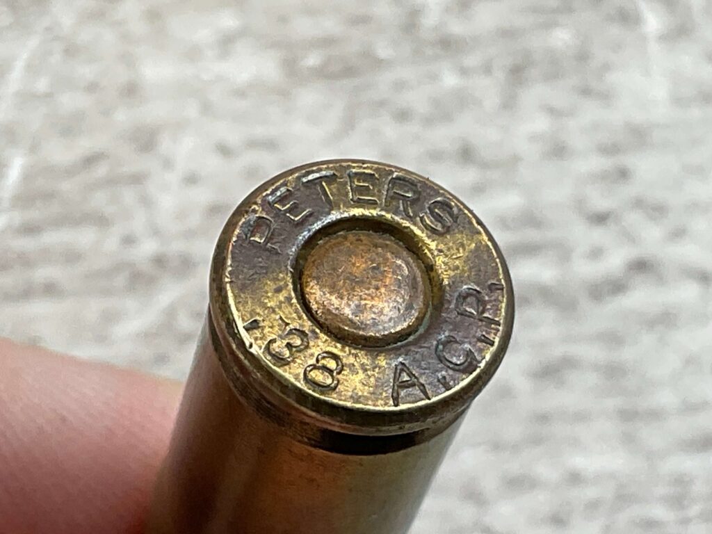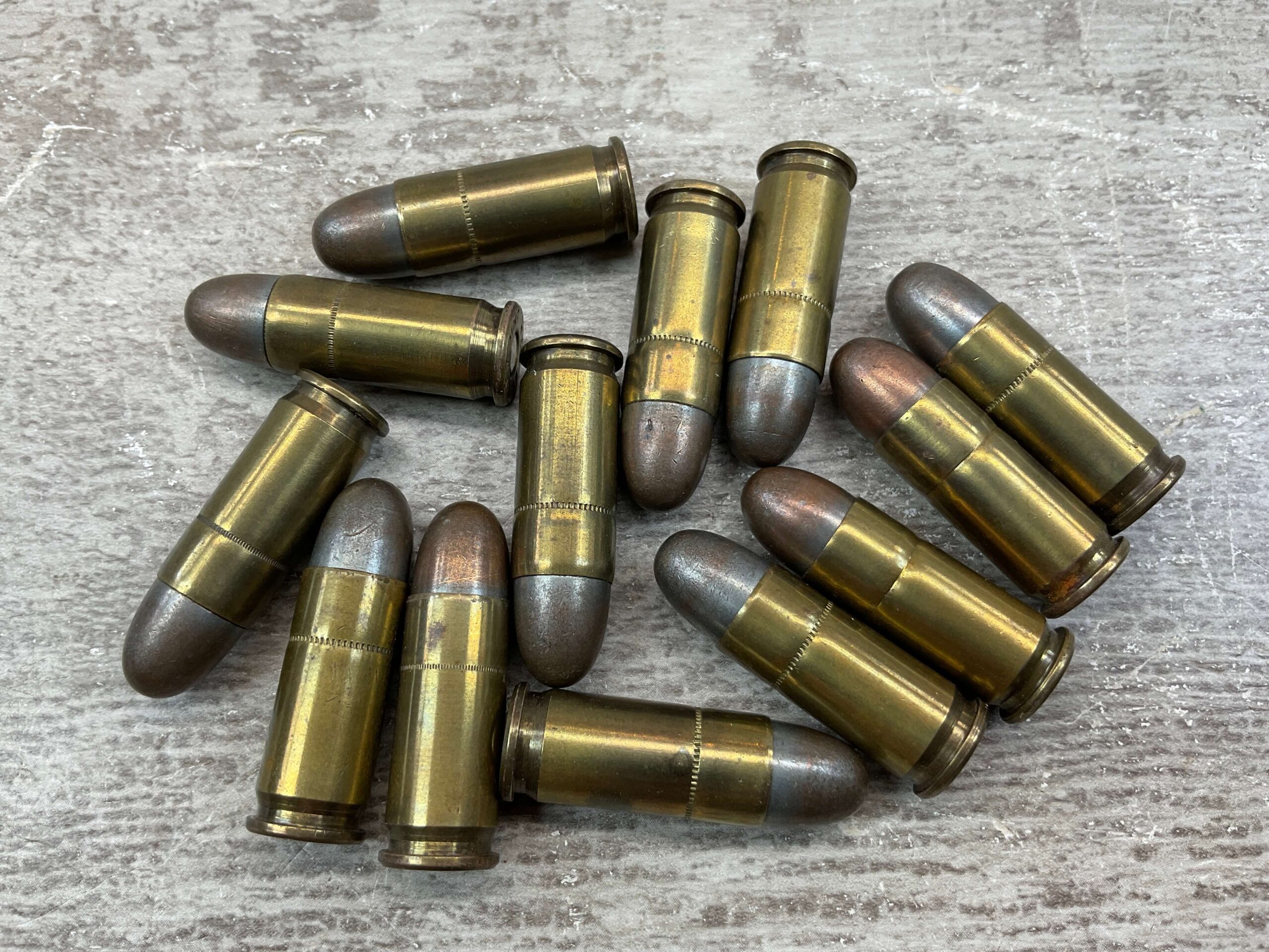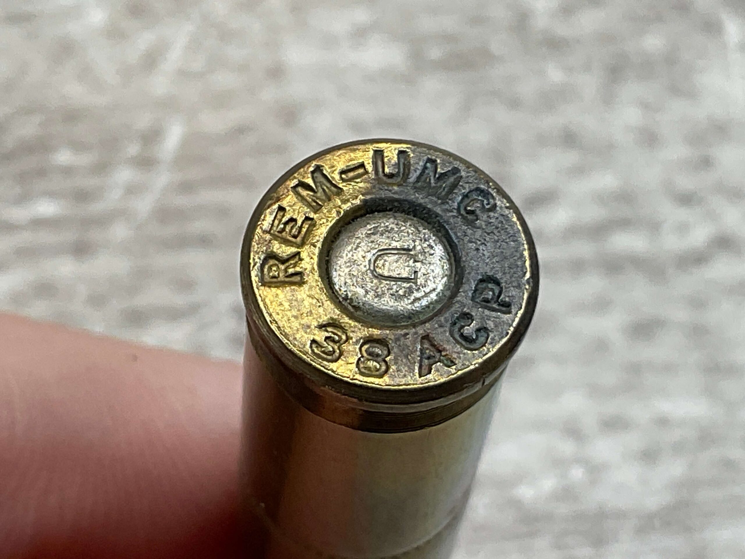 REMINGTON-UMC/PETERS .38 ACP AMMO, VINTAGE, QTY 13 RNDS TOTAL, CONTAINS 2 AMMO HEADSTAMPED “PETERS / .38 A.C.P.” AND 11 STAMPED “REM-UMC / 38 ACP” WITH “U” IN MIDDLE
