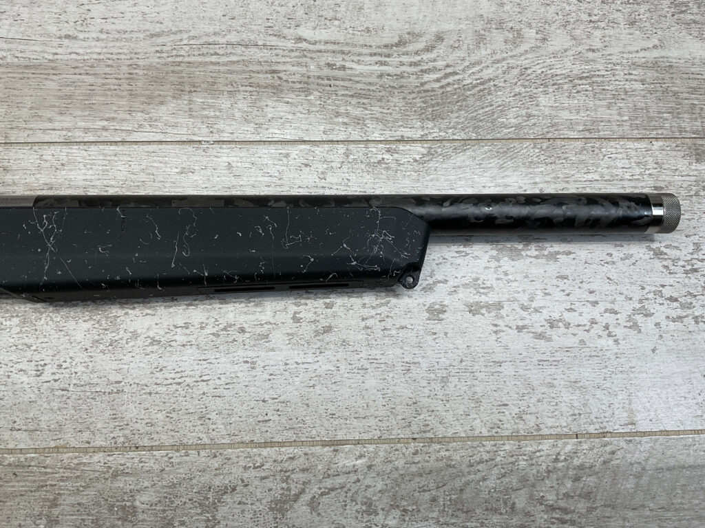 - Cold hammer-forged barrel tensioned in carbon fiber sleeve features a 1/2in-28 threaded muzzle and is fitted with a thread cap which can be removed to allow for the use of muzzle accessories.