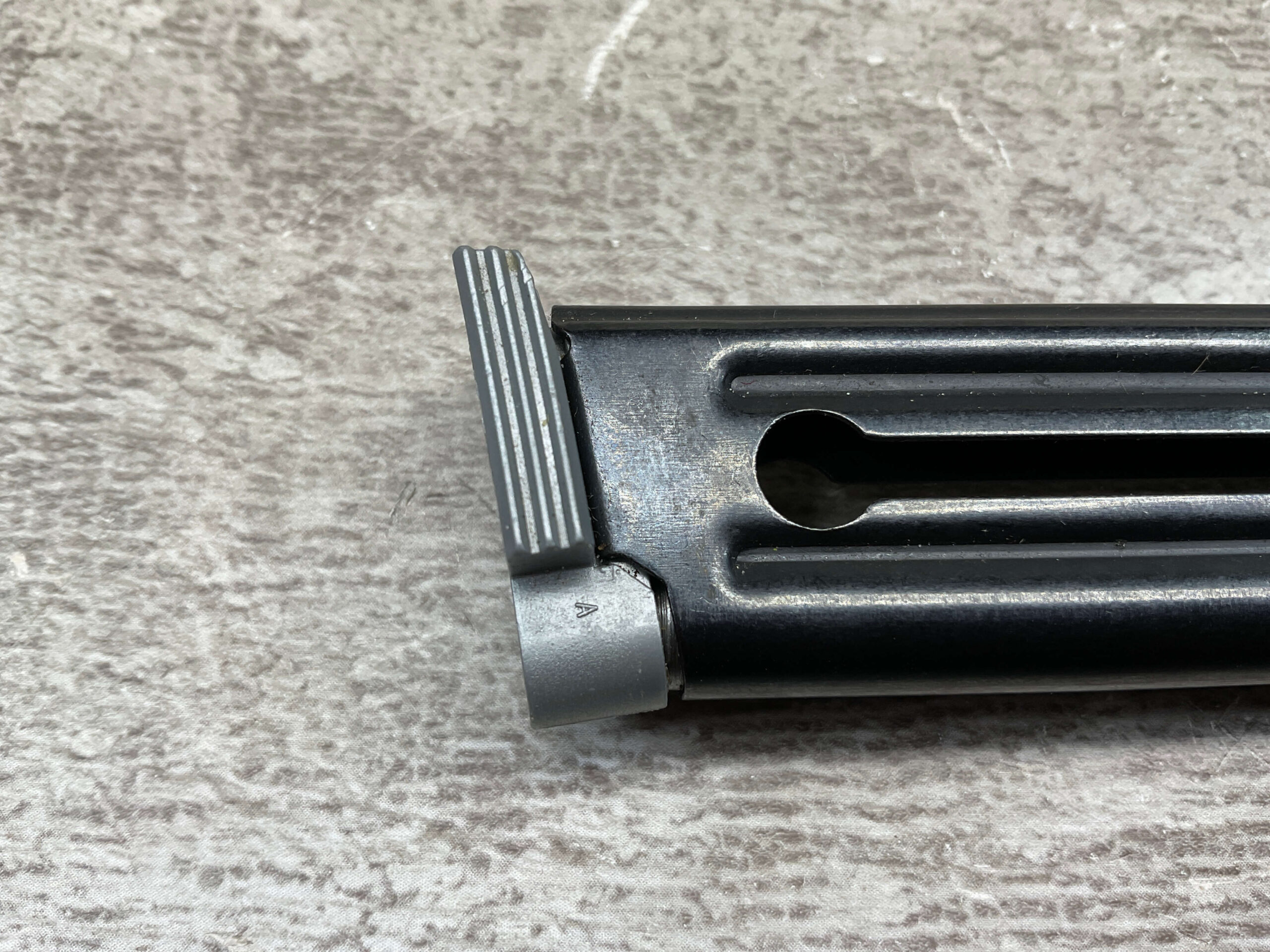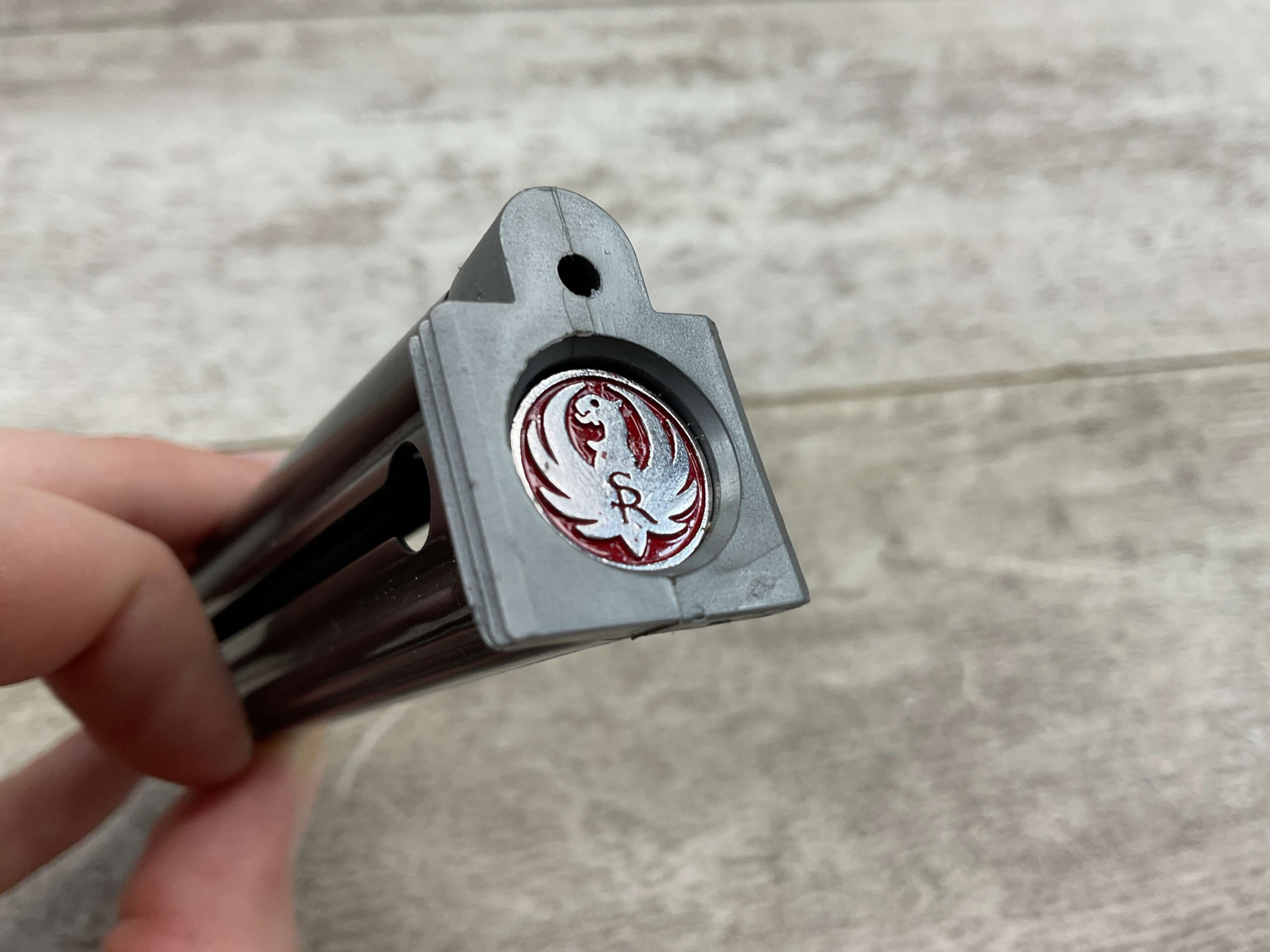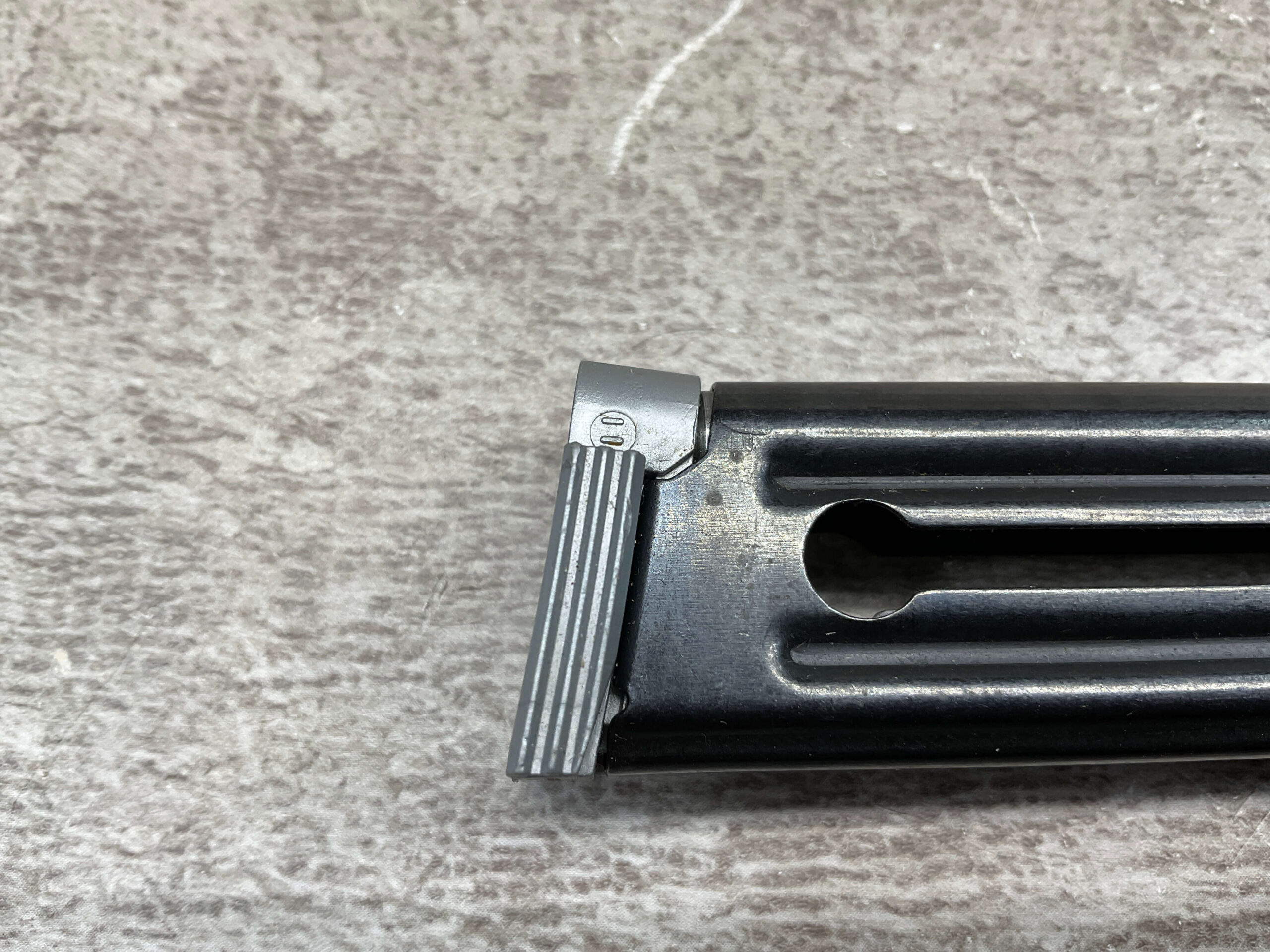 RUGER MARK III .22 L.R. 10-RD MAG, HAS RED RUGER LOGO, STAMPED ON SIDE NEAR LOGO CIRCLE WITH “II” AND STAMPED ON OTHER SIDE “V”, IN EXCELLENT CONDITION!