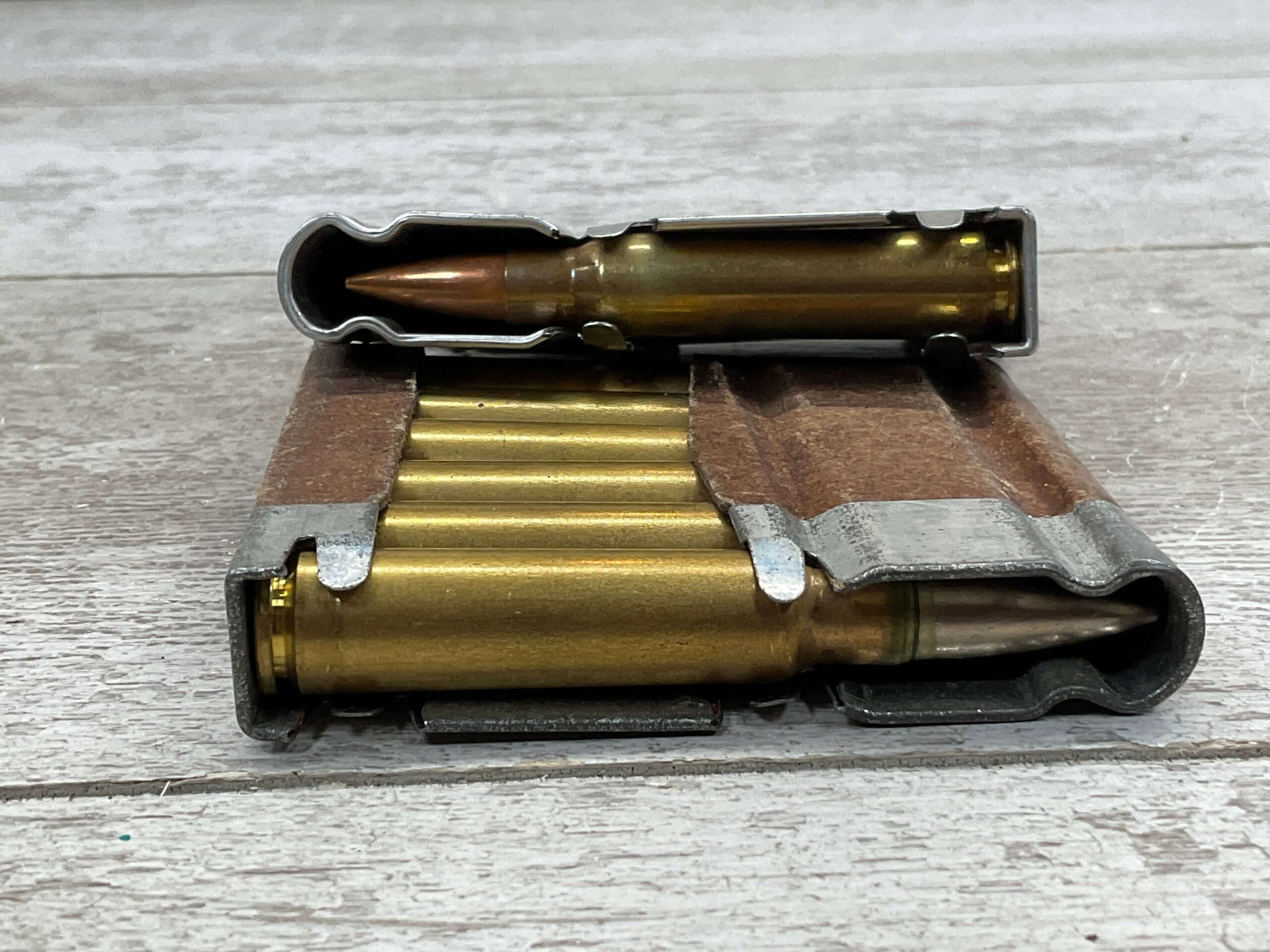 SCHMIDT RUBIN K31, K11 7.5X55 STRIPPER CLIP W/ 6 ROUNDS, EXC CONDITION W/ 6 ROUNDS OF 7.5X55 AMMO