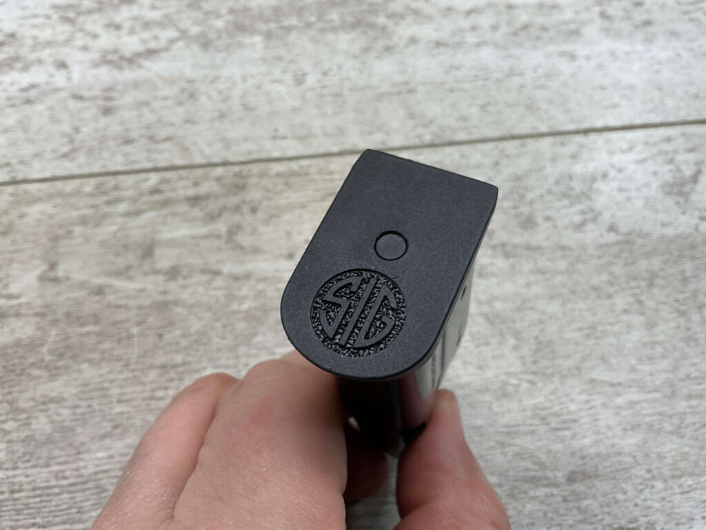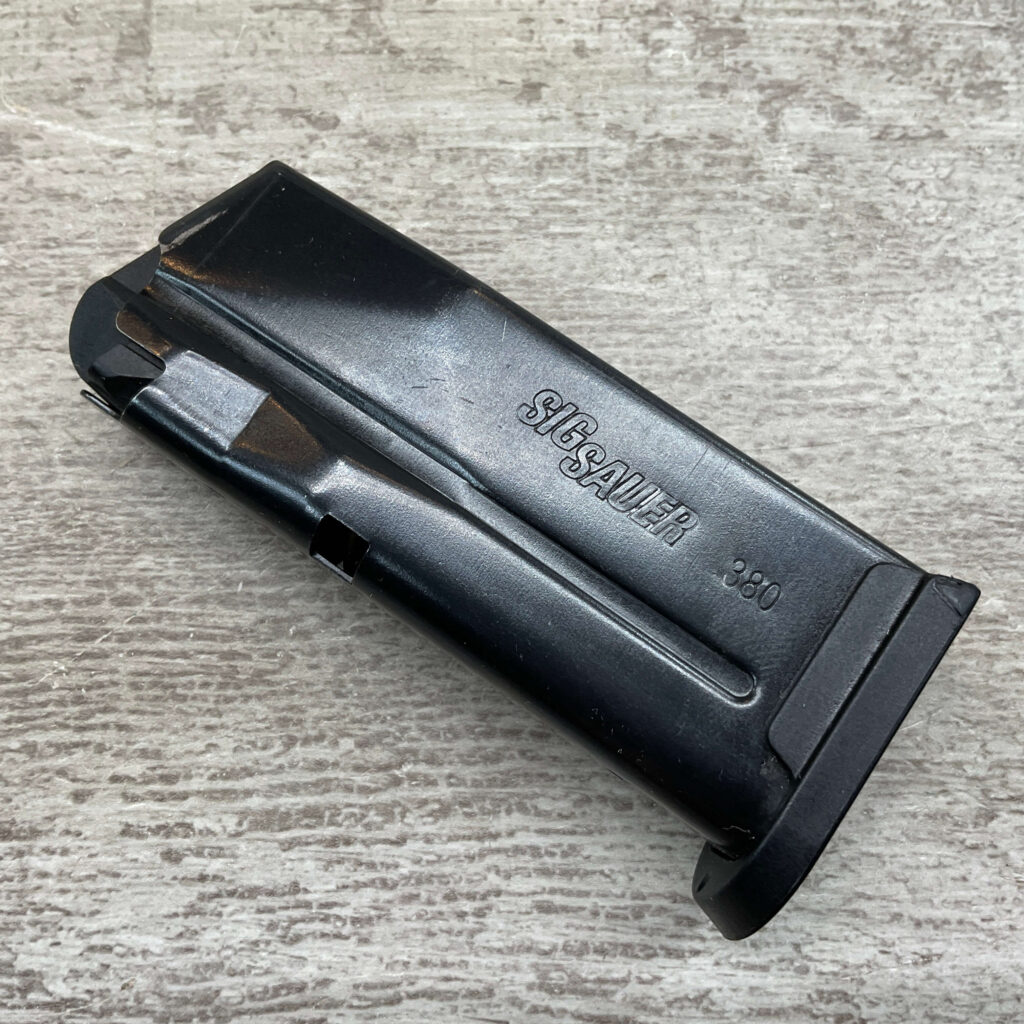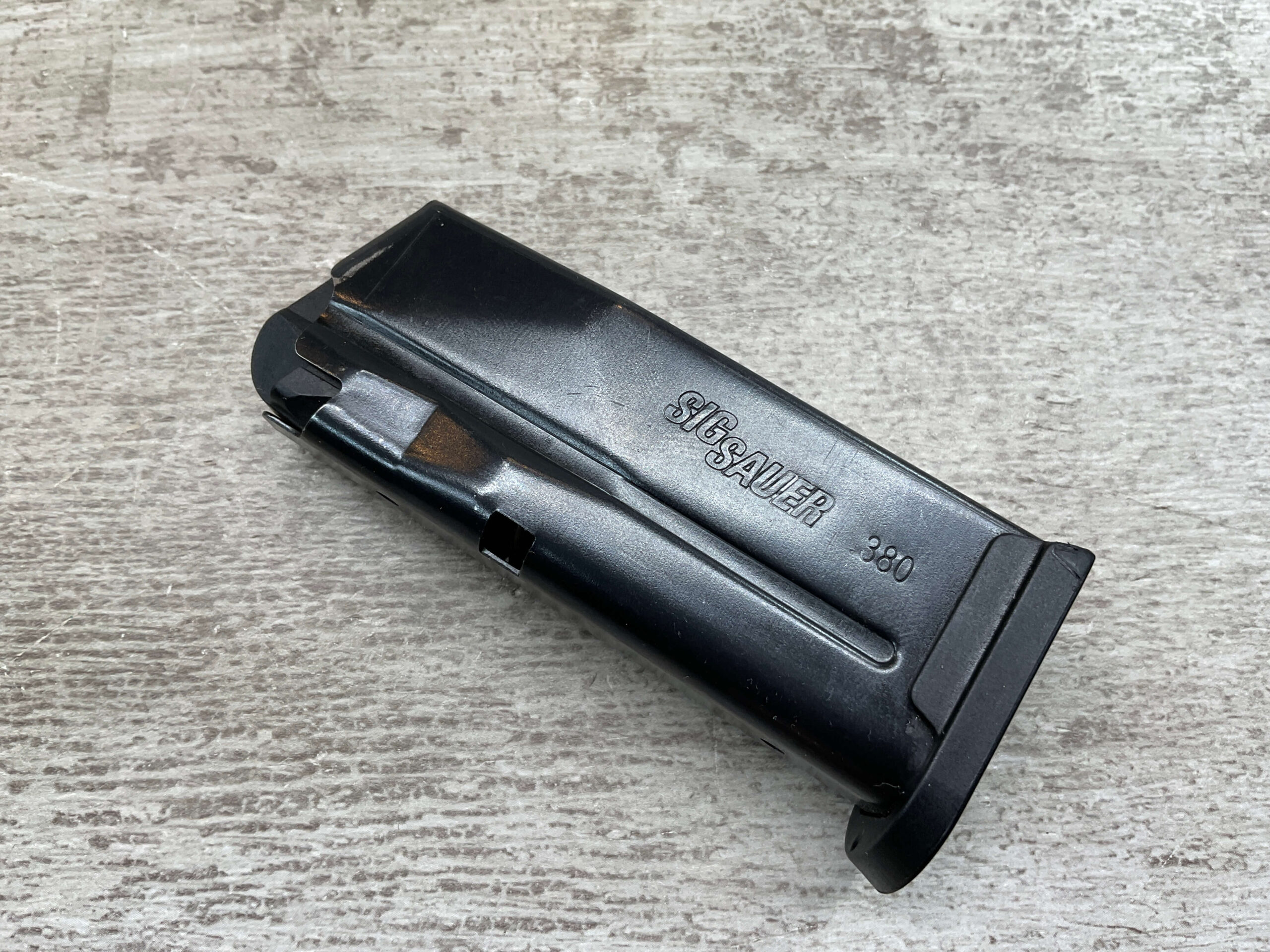 Maintain deep concealment of your P365 .380 AUTO with this small profile flush-fit 10-round magazine, Light wear of bluing at top of the mag from light use, Exc. condition.