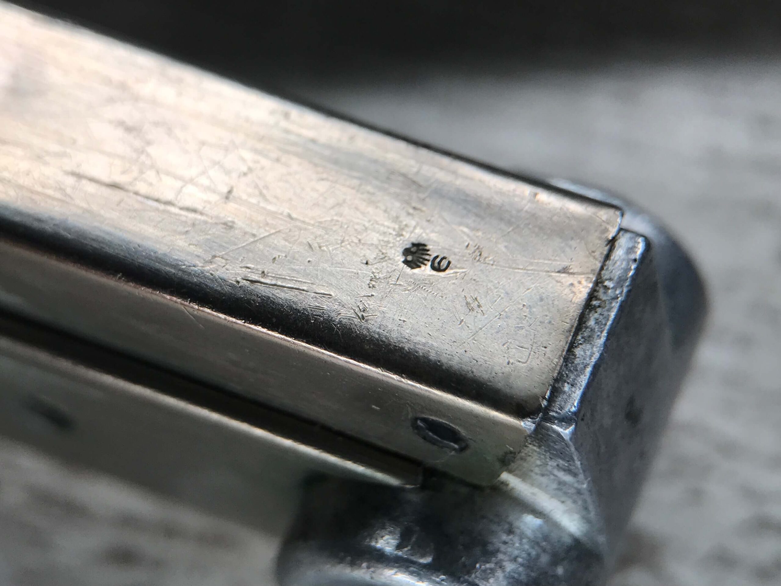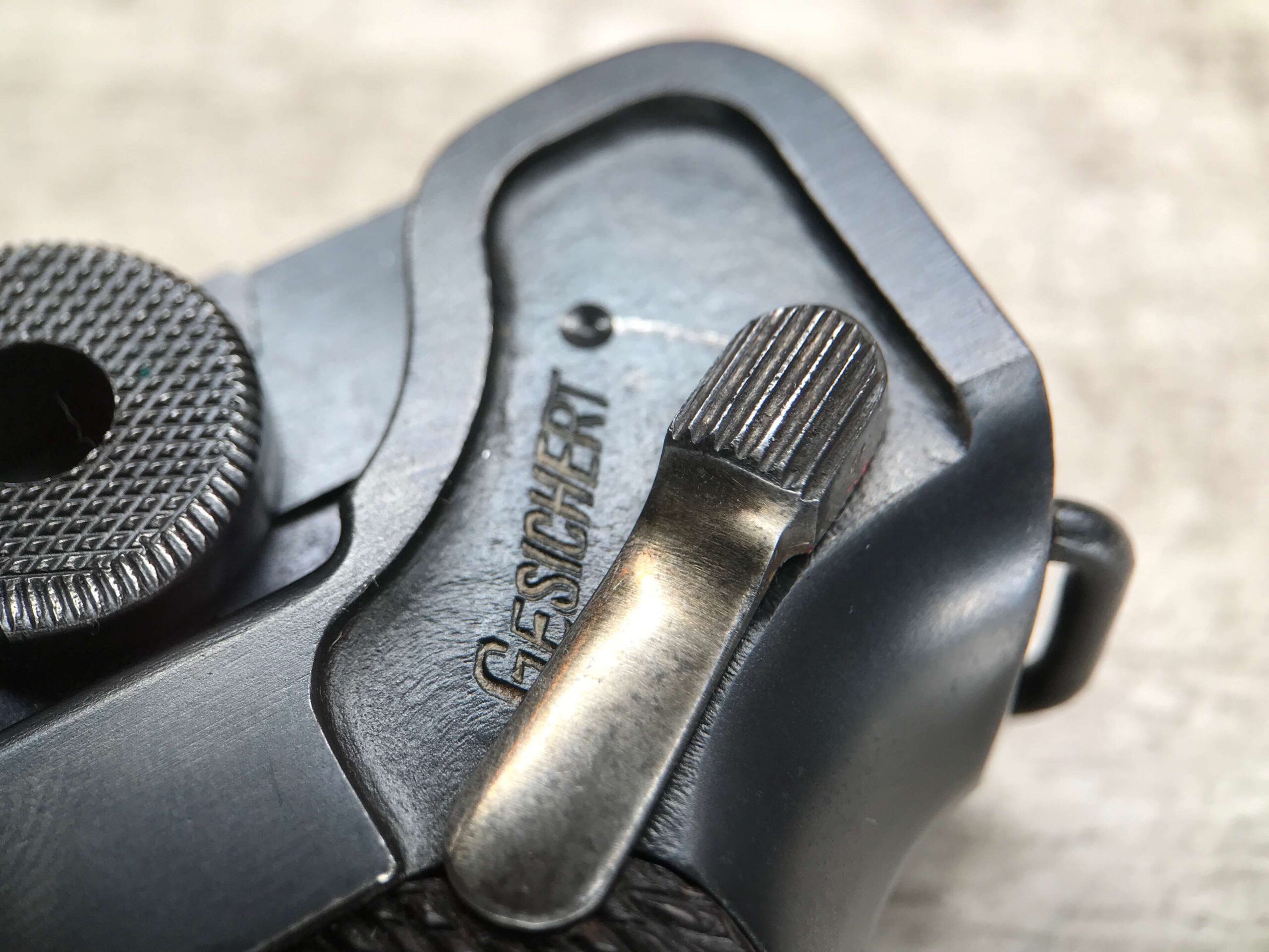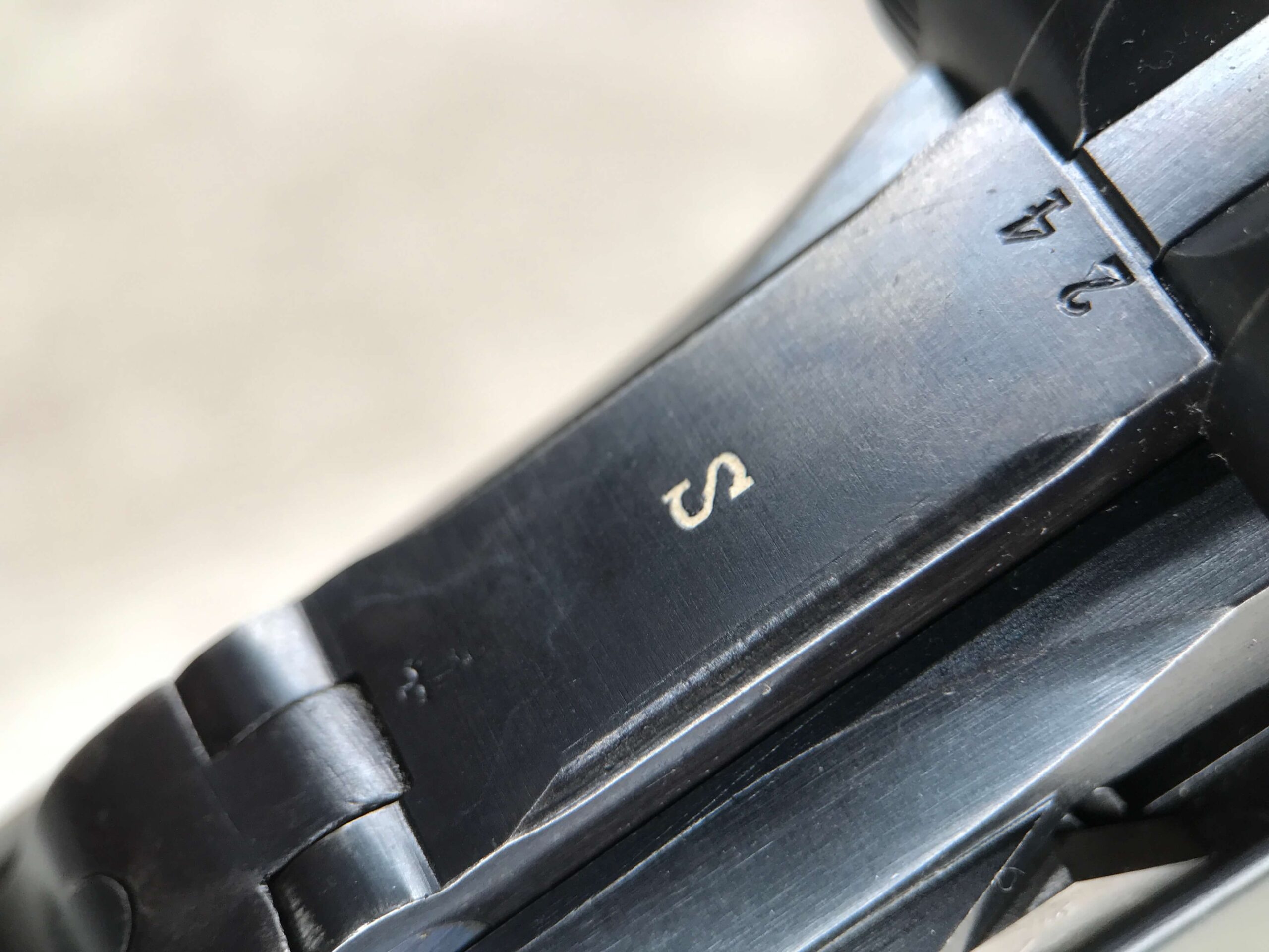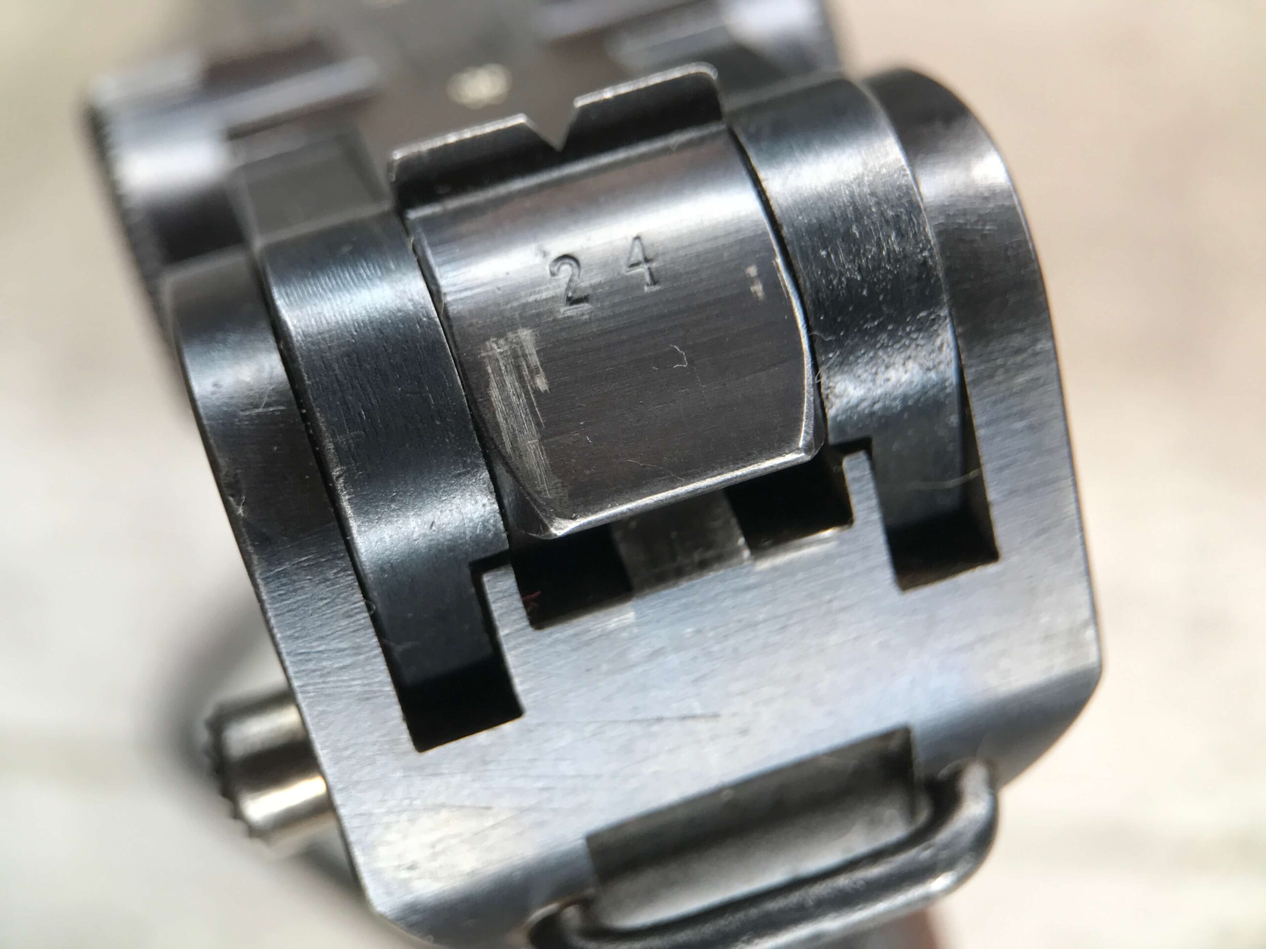 SIMSON & CO “S” CODE 9MM LUGER P08 PISTOL #1824a, 4″ BBL GERMAN CODE “S” ON THE TOGGLE W/BLANK CHAMBER, EAGLE/6 PROOFS THROUGHOUT, MATCHIN SERIAL INCLUDING THE MAG, 95% BLUE W/20% STRAW ON TRIGGER AND SAFETY, VG BRIGHT BORE W/EXC RIFLING, LIGHT WEAR ON GRIPS, BLACK HOLSTER MARKED “ROBERT LARSEN/BERLIN/1935”, EXC CONDITION HOLSTER, 95+%