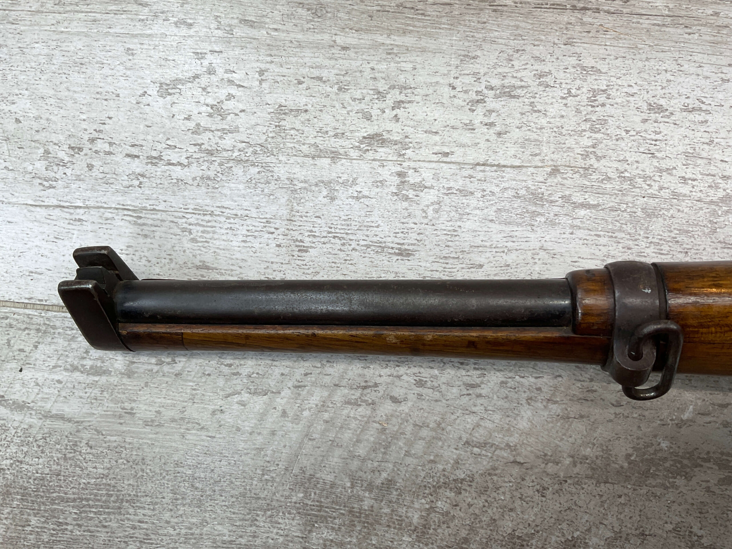 - Bolt Handle: Curved bolt handle, which is characteristic of Cavalry Carbine rifles