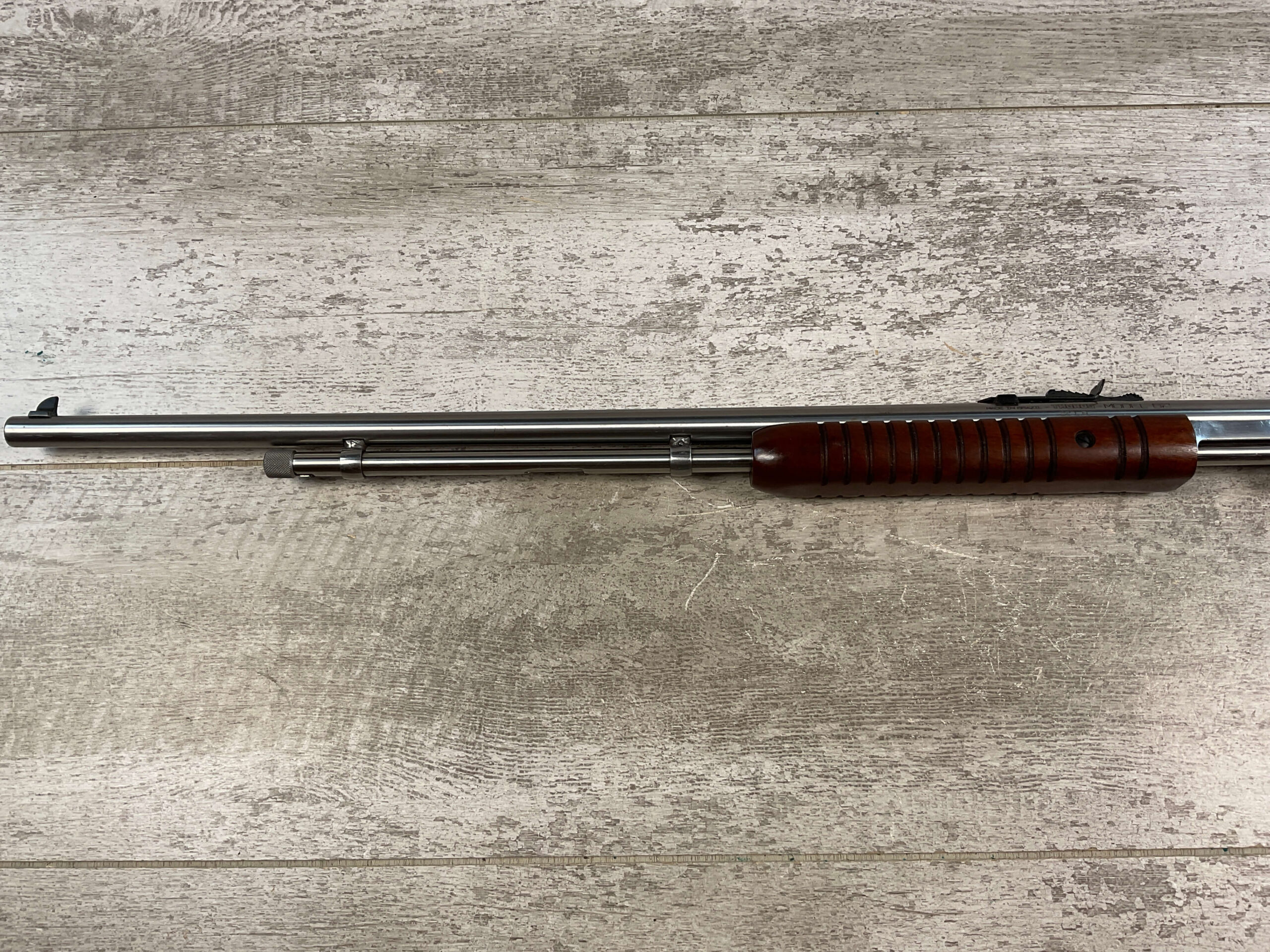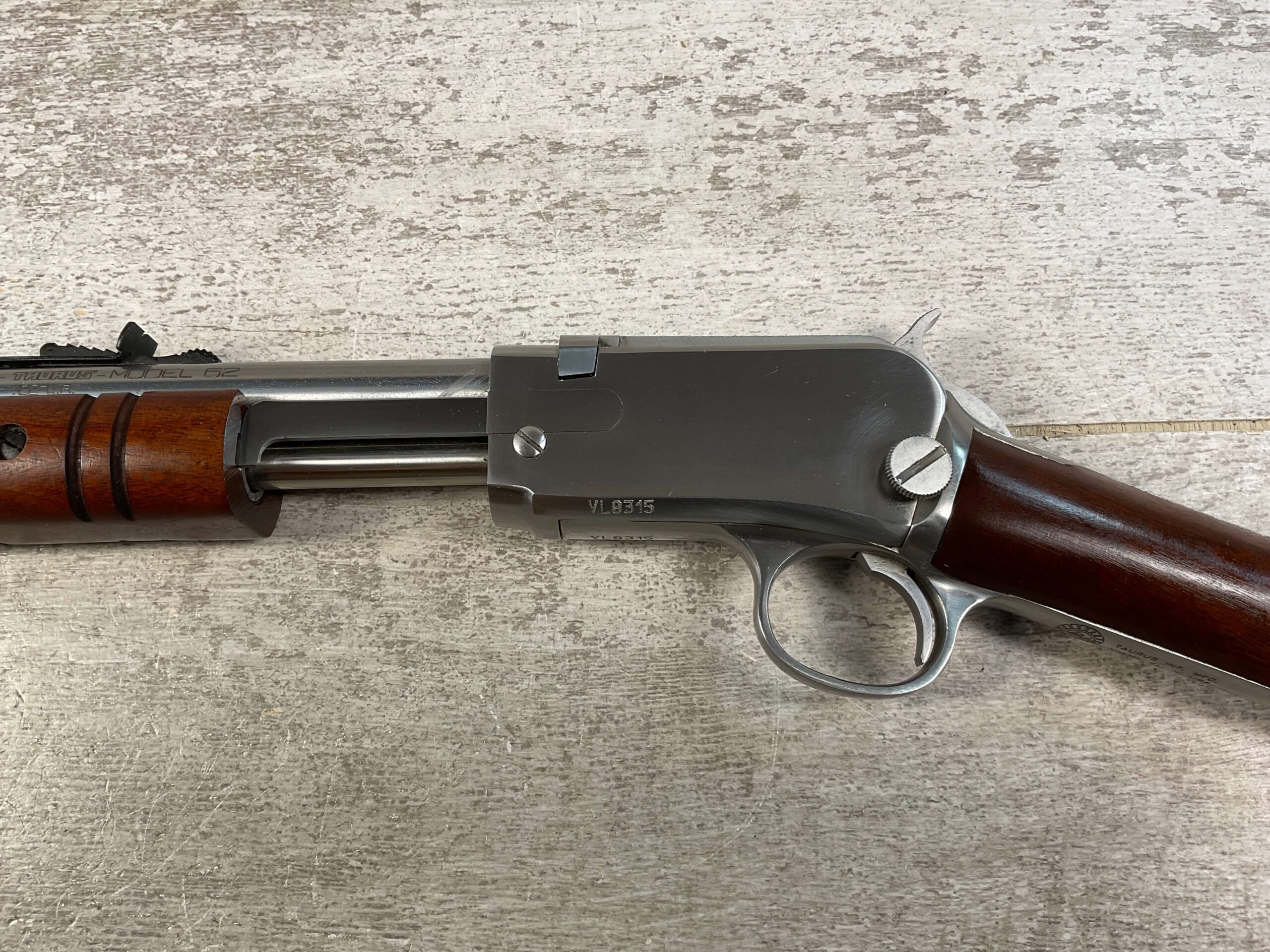 TAURUS MODEL 62 22LR STAINLESS STEEL PUMP RIFLE, MODERN #5-10511-RB #VL8315, 23″ BARREL, VG STAINLESS STEEL FINISH, EXC STOCK & FOREND, EXC BORE & RIFLING, GREAT LITTLE PLINKING RIFLE! CONDITION AS SHOWN IN PICTURES.