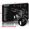 - OVERSIZED DESIGN – This 1911 gun cleaning mat measures 11†x 17†and is 1/8†thick. The oversized design gives you plenty of room to disassemble your handgun and to clean it without having to move parts all over. The thick 1/8†vulcanized rubber backing ensures the cleaning mat will protect your firearm and work surface.