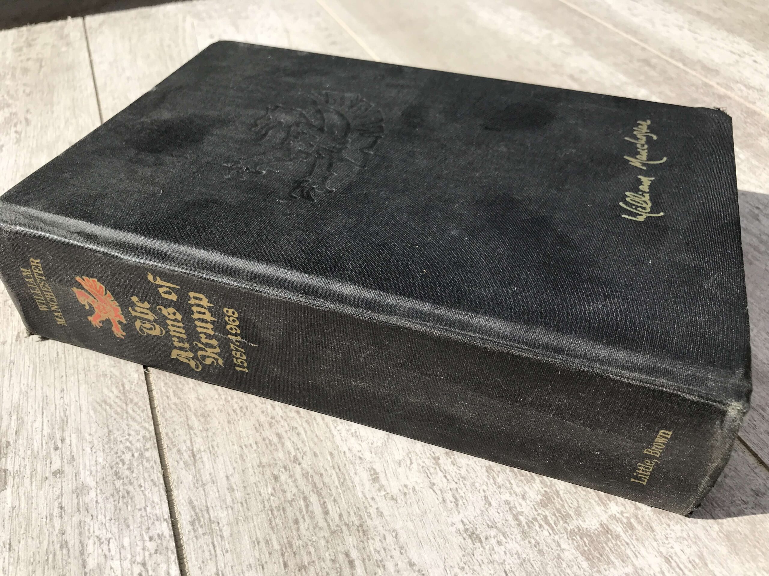 THE ARMS OF KRUPP 1587-1968 by WILLIAM MANCHESTER, HARDCOVER, PUBLISHED 1968, GOOD CONDITION, SOME LIGHT WEAR, FRONT COVER SIGNED BY THE AUTHOR, RARE