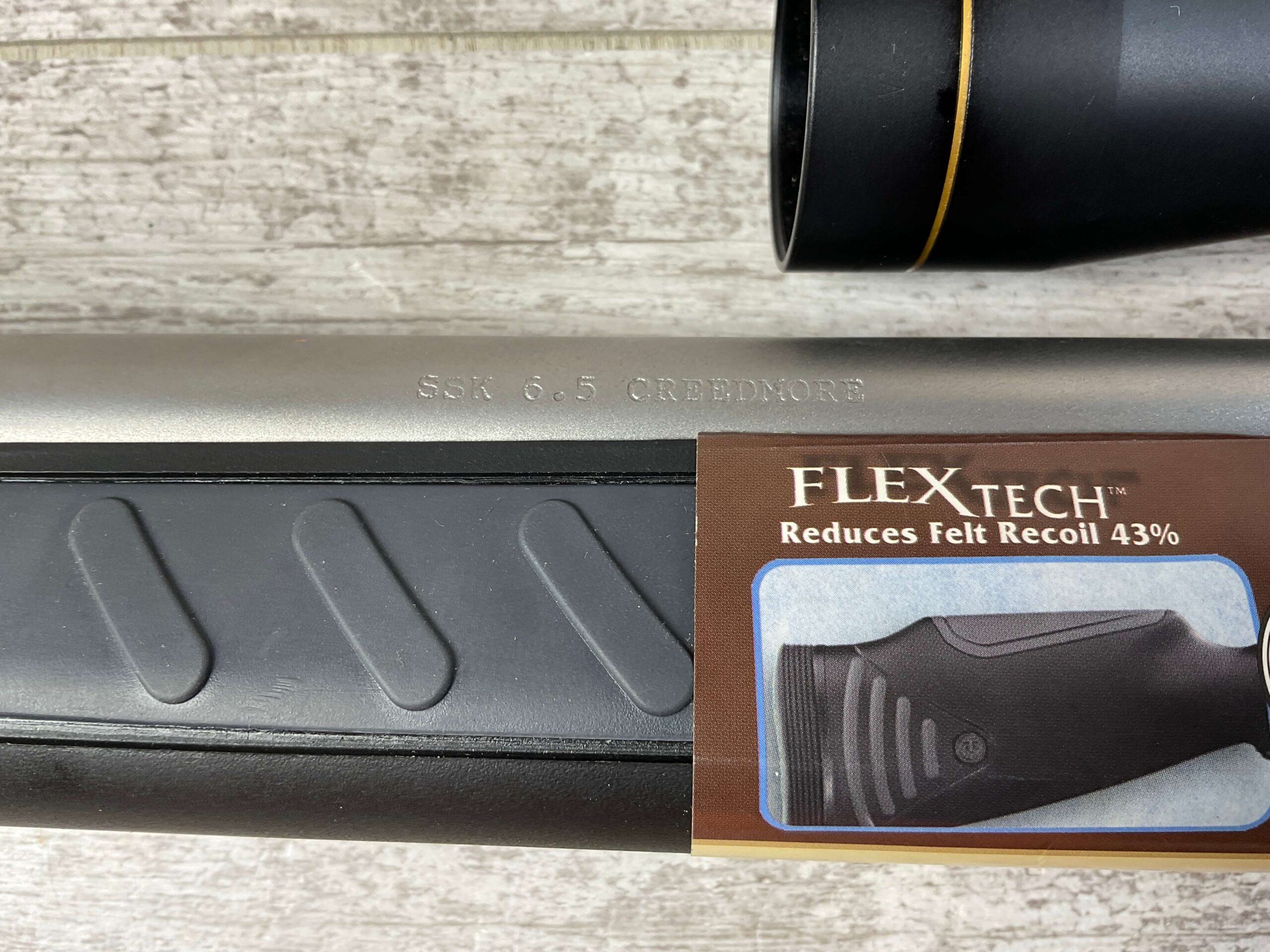THOMPSON CENTER ARMS ENCORE 6.5 CREEDMORE SINGLE SHOT BREAK ACTION RIFLE #MAK6614, 24″ BARREL, TC SYNTHETIC STOCK W/ RUBBER BUTT PAD, LEUPOLD VX-1 2-7X33MM SCOPE, LIKE NEW NEVER FIRED, CONDITION SHOWN IN PICTURES, FROM THE JAMES EARL JONES “FAVORITES” COLLECTION W/ CERTIFICATE OF AUTHENTICITY.