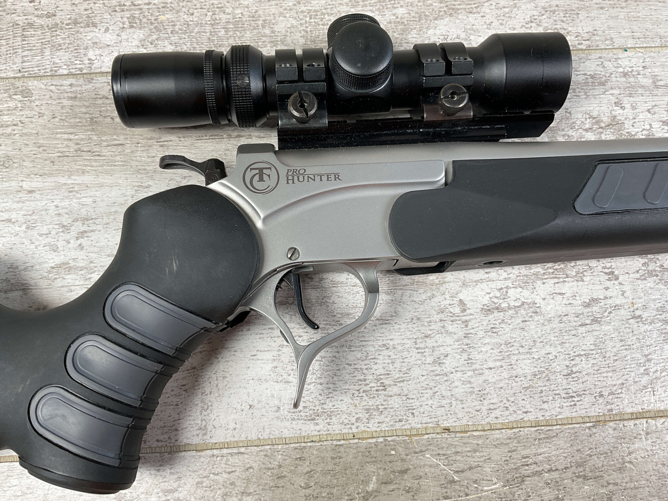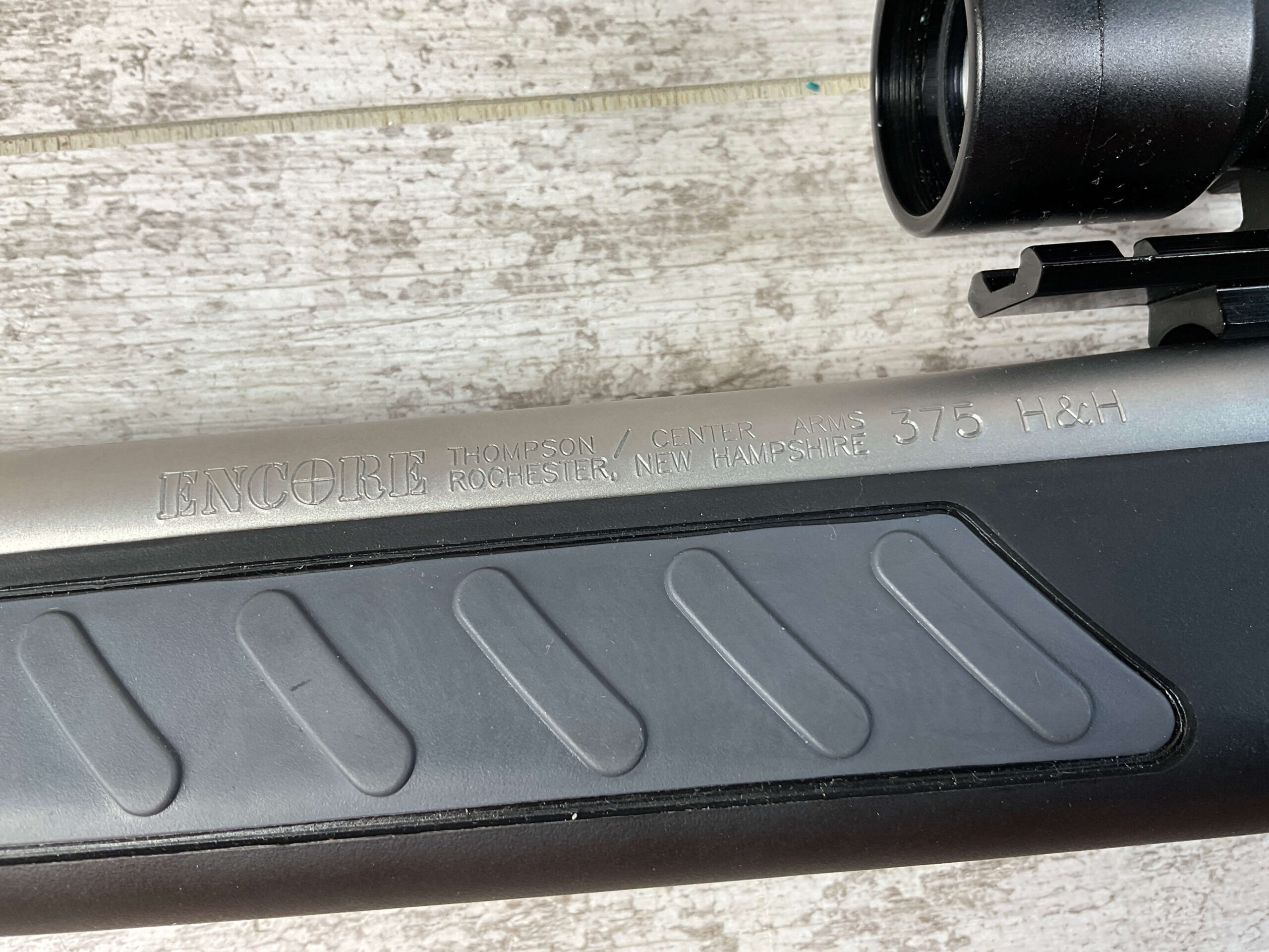 THOMPSON CENTER ARMS ENCORE .375 H&H SINGLE SHOT BREAK ACTION RIFLE #MAE6265, 28″ BARREL, TC SYNTHETIC STOCK W/ RUBBER BUTT PAD, NcSTAR 2-6X28 SCOPE, LIKE NEW, CONDITION SHOWN IN PICTURES, FROM THE JAMES EARL JONES “FAVORITES” COLLECTION W/ CERTIFICATE OF AUTHENTICITY.