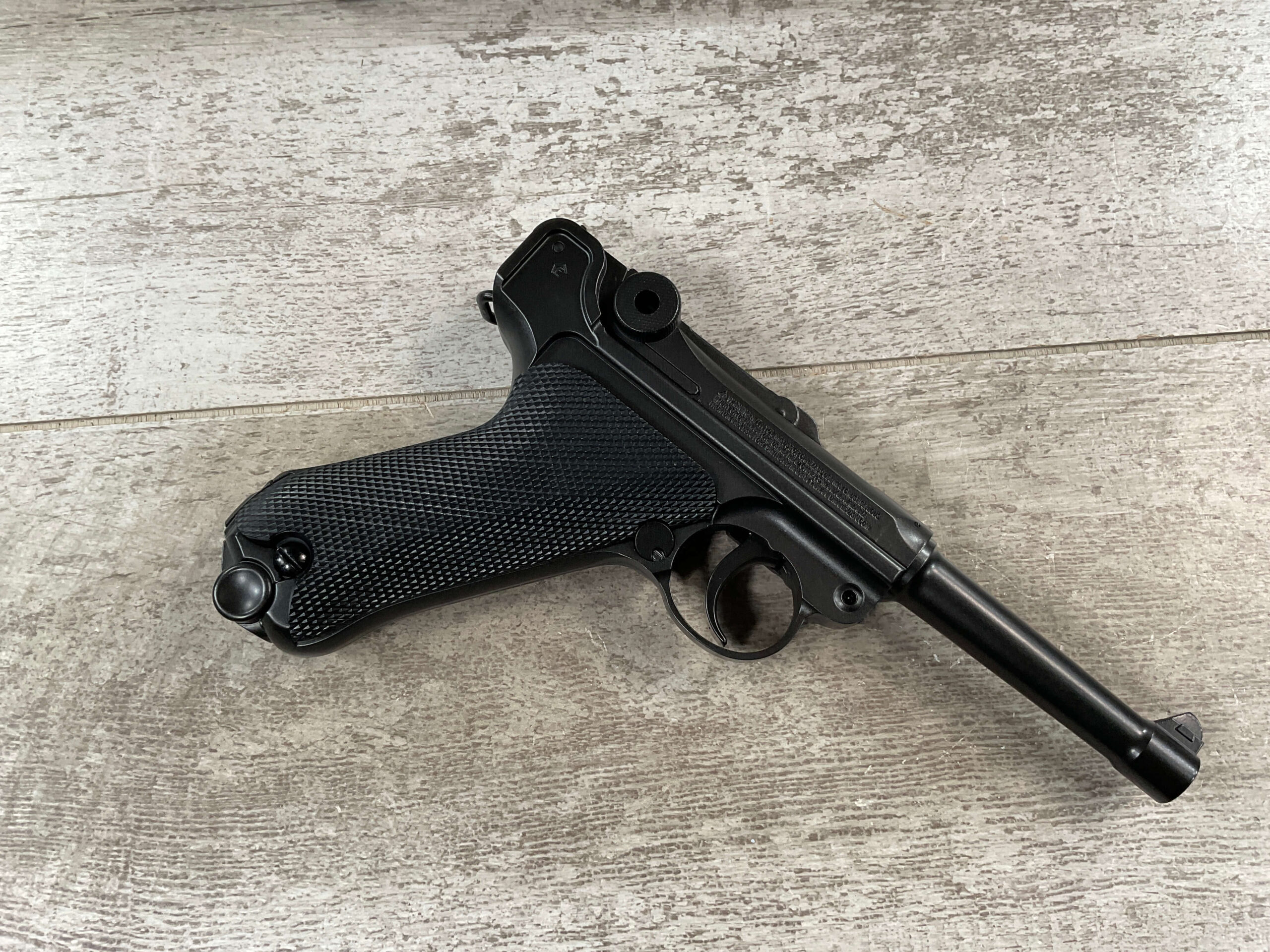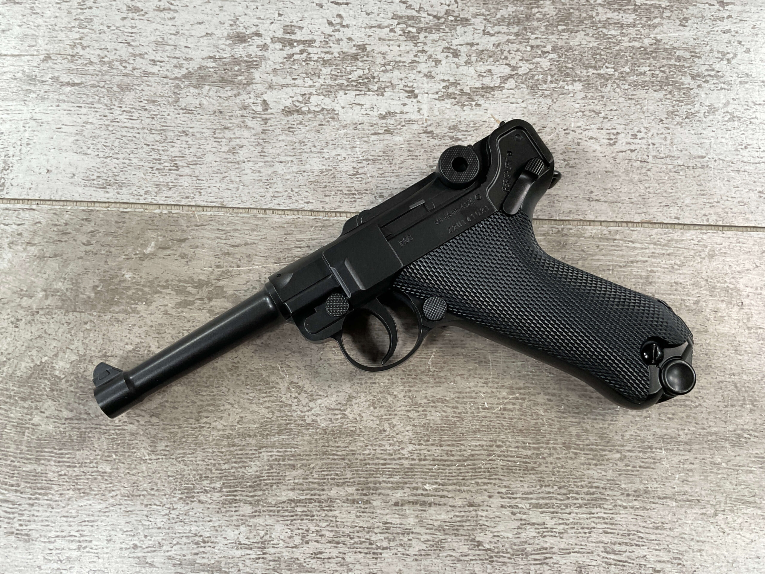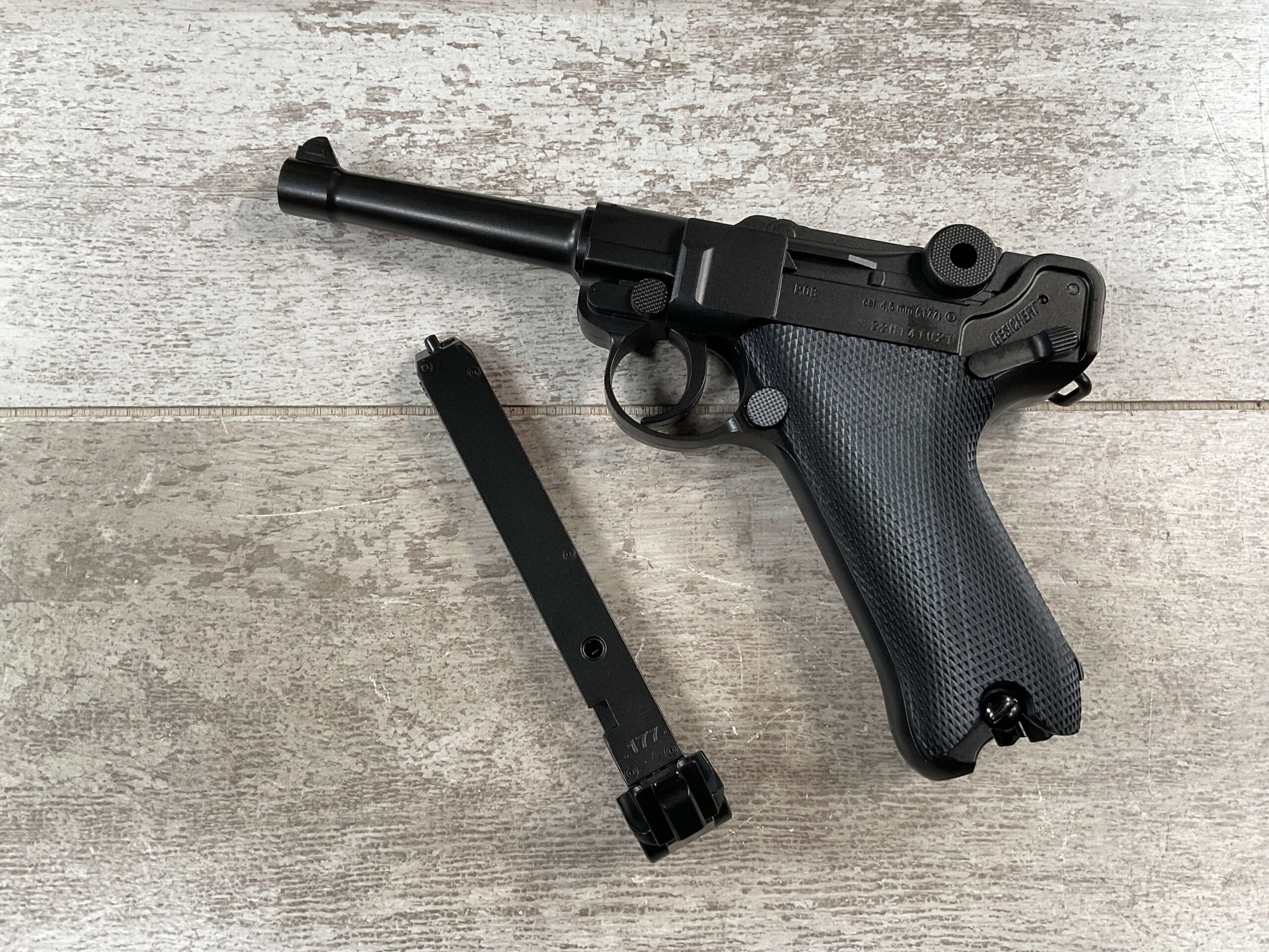 At the end of World War II, many American GIs came home with Lugers tucked neatly away in their trunks. The P-08 was the most sought after trophy of the European theater. The Luger is more than that, though. The pistol is an exquisite design that is as functional as it is beautiful. Now Umarex has built a functional replica for those who want one of their own. This CO2 powered air pistol has a 21 round magazine, and the weight and feel of an original P-08. The Luger is a masterpiece, and now it is as much fun to shoot as it is to look at. This replica is a standard action model.