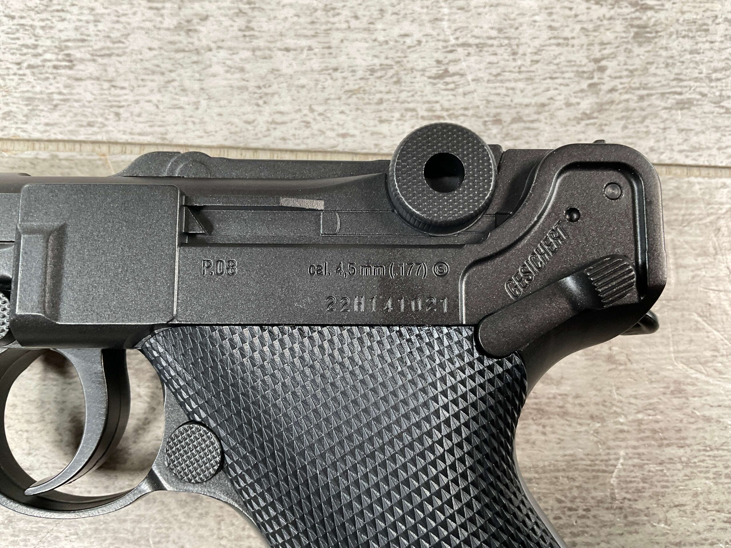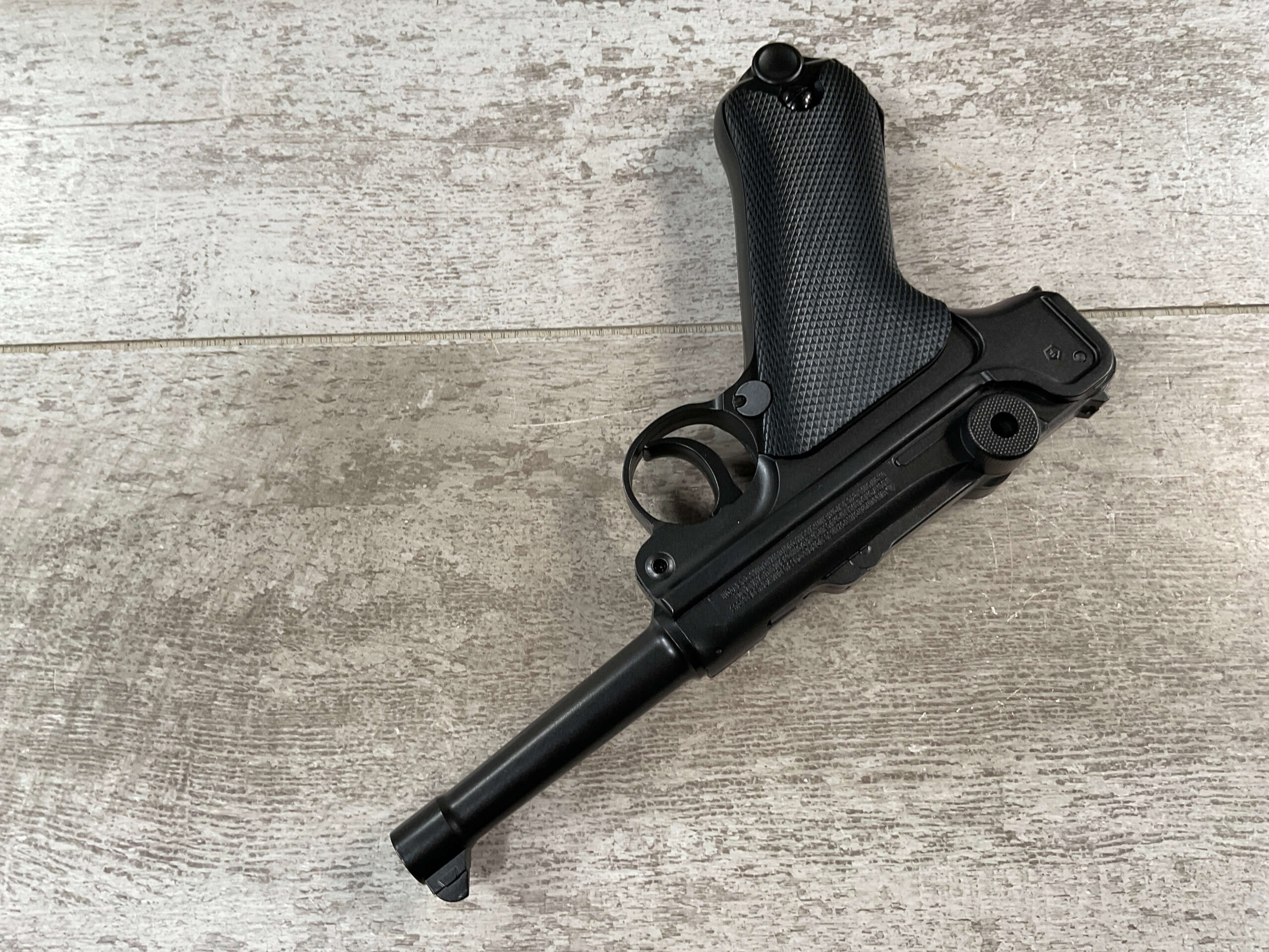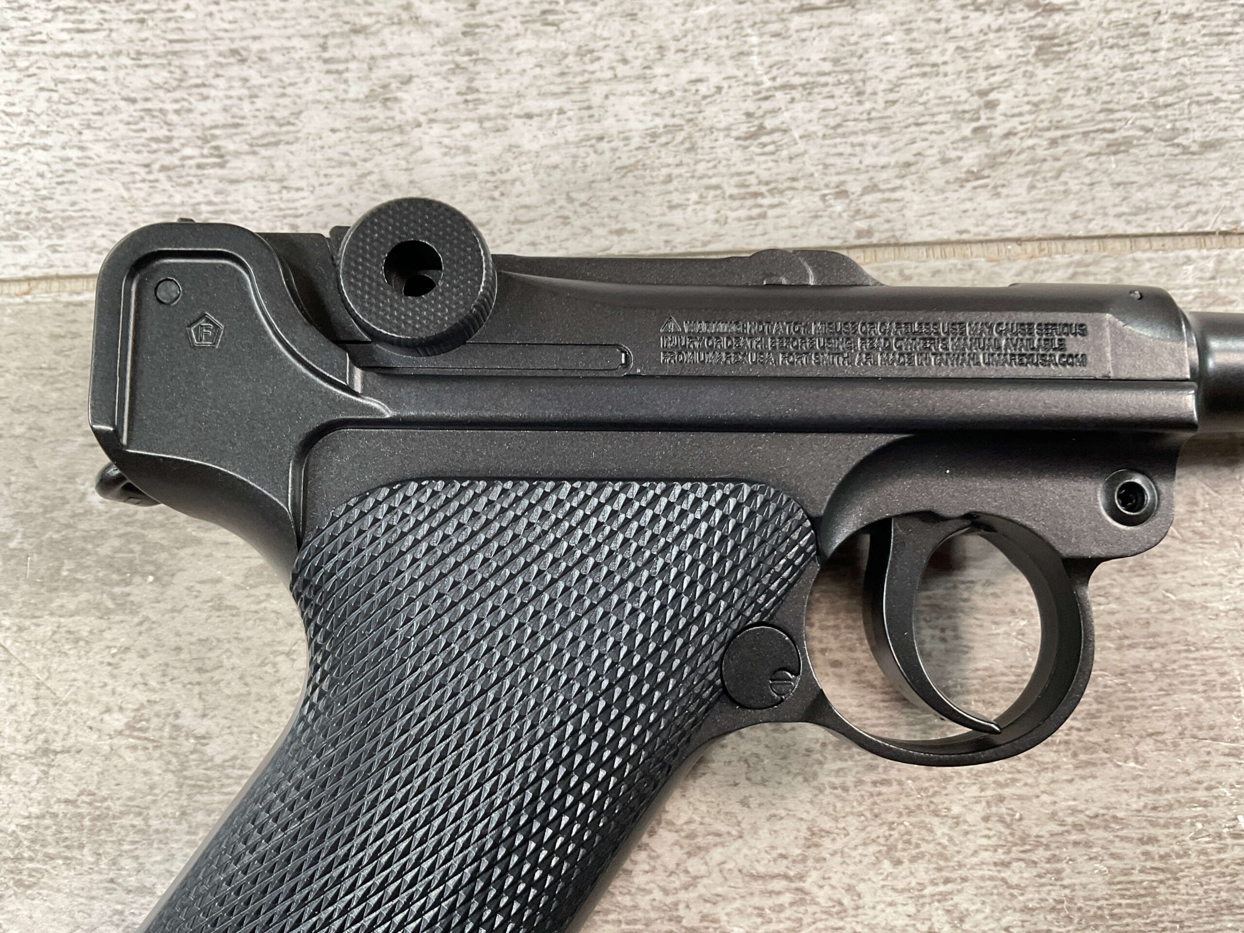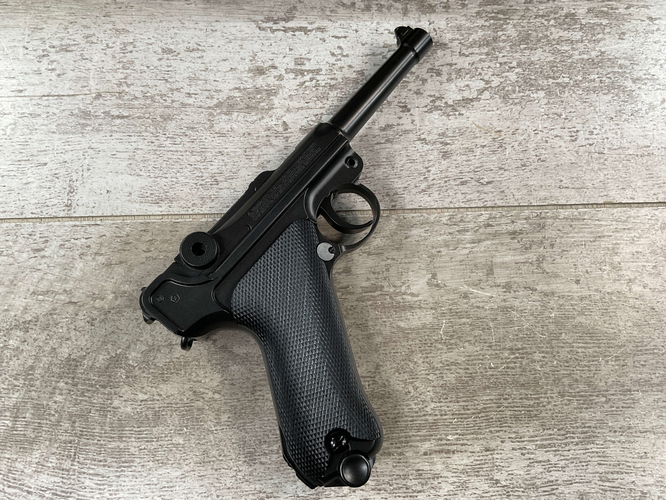 At the end of World War II, many American GIs came home with Lugers tucked neatly away in their trunks. The P-08 was the most sought after trophy of the European theater. The Luger is more than that, though. The pistol is an exquisite design that is as functional as it is beautiful. Now Umarex has built a functional replica for those who want one of their own. This CO2 powered air pistol has a 21 round magazine, and the weight and feel of an original P-08. The Luger is a masterpiece, and now it is as much fun to shoot as it is to look at. This replica is a standard action model.