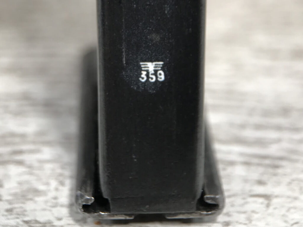 SKU#7081 WALTHER P38 AC41 MAGAZINE “1994 j” ON BASE PLATE, P38 ON LEFT HOUSING, E/359 HIGH AND LOW ON SPINE, EXC CONDITION