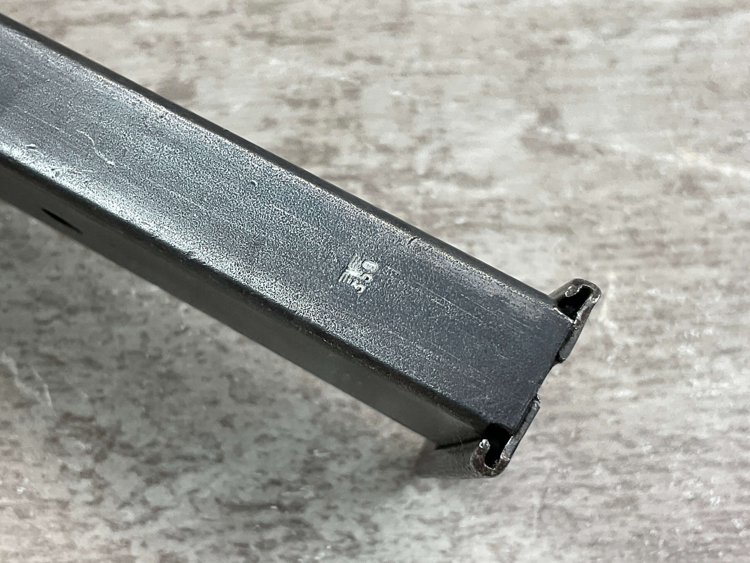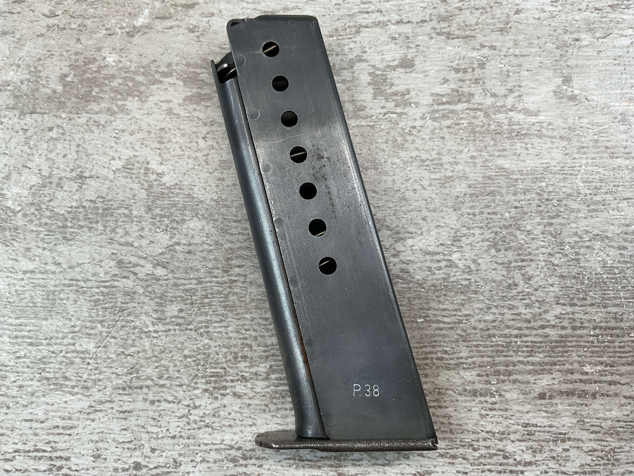 WALTHER P38 MAGAZINE “754c”, “P.38” ON LEFT HOUSING, “E/359” LOW ON SPINE, “754c” ON PITTED FLOORPLATE, GOOD CONDITION,