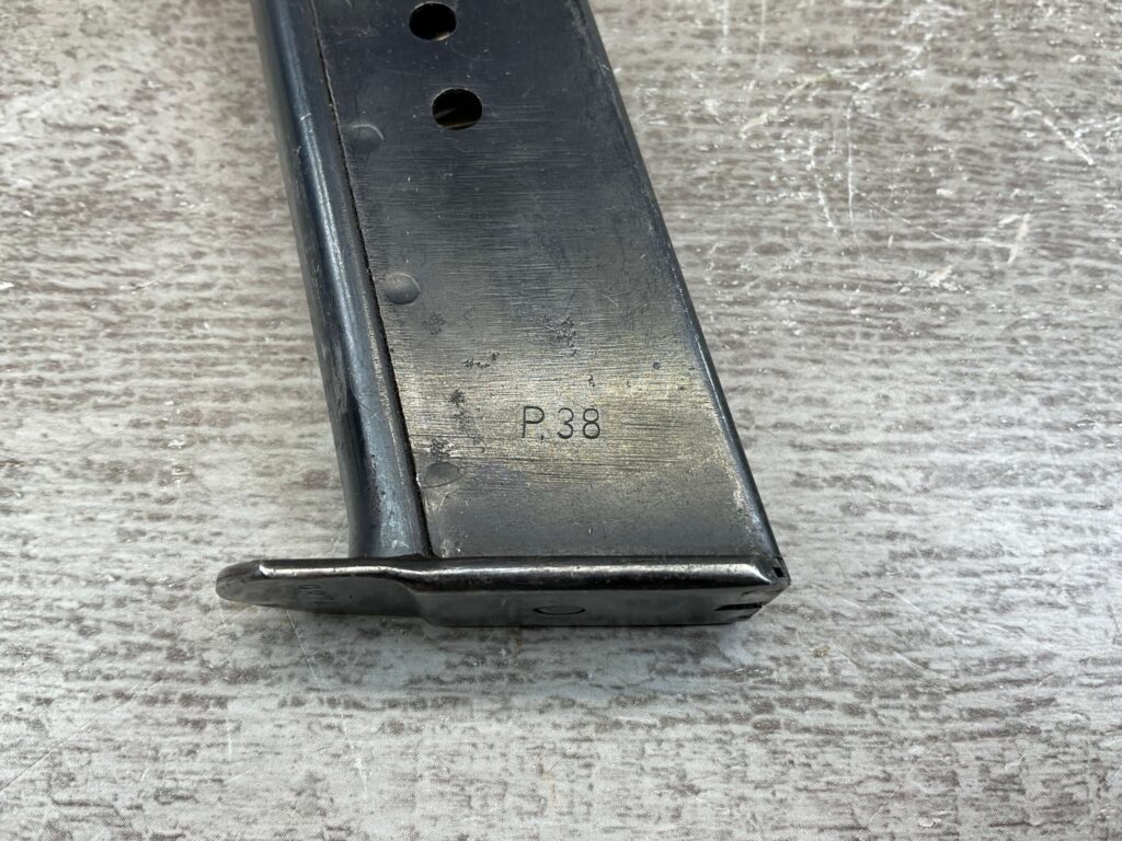 WALTHER P38 NUMBERED MAGAZINE, AC41, WWII, “9874g” ON BASE PLATE, HIGH & LOW E/359 ON SPINE, EXCELLENT CONDITION!