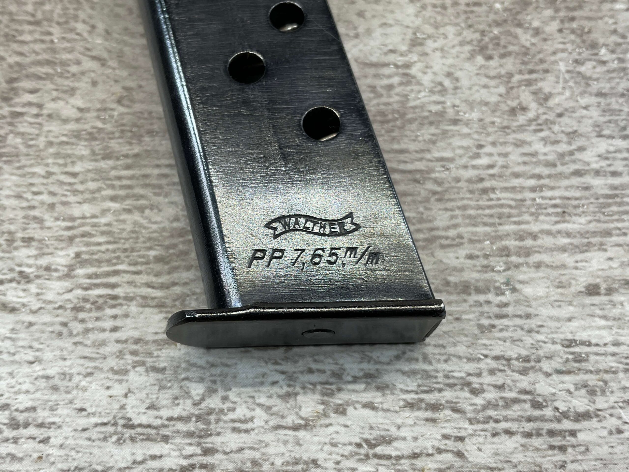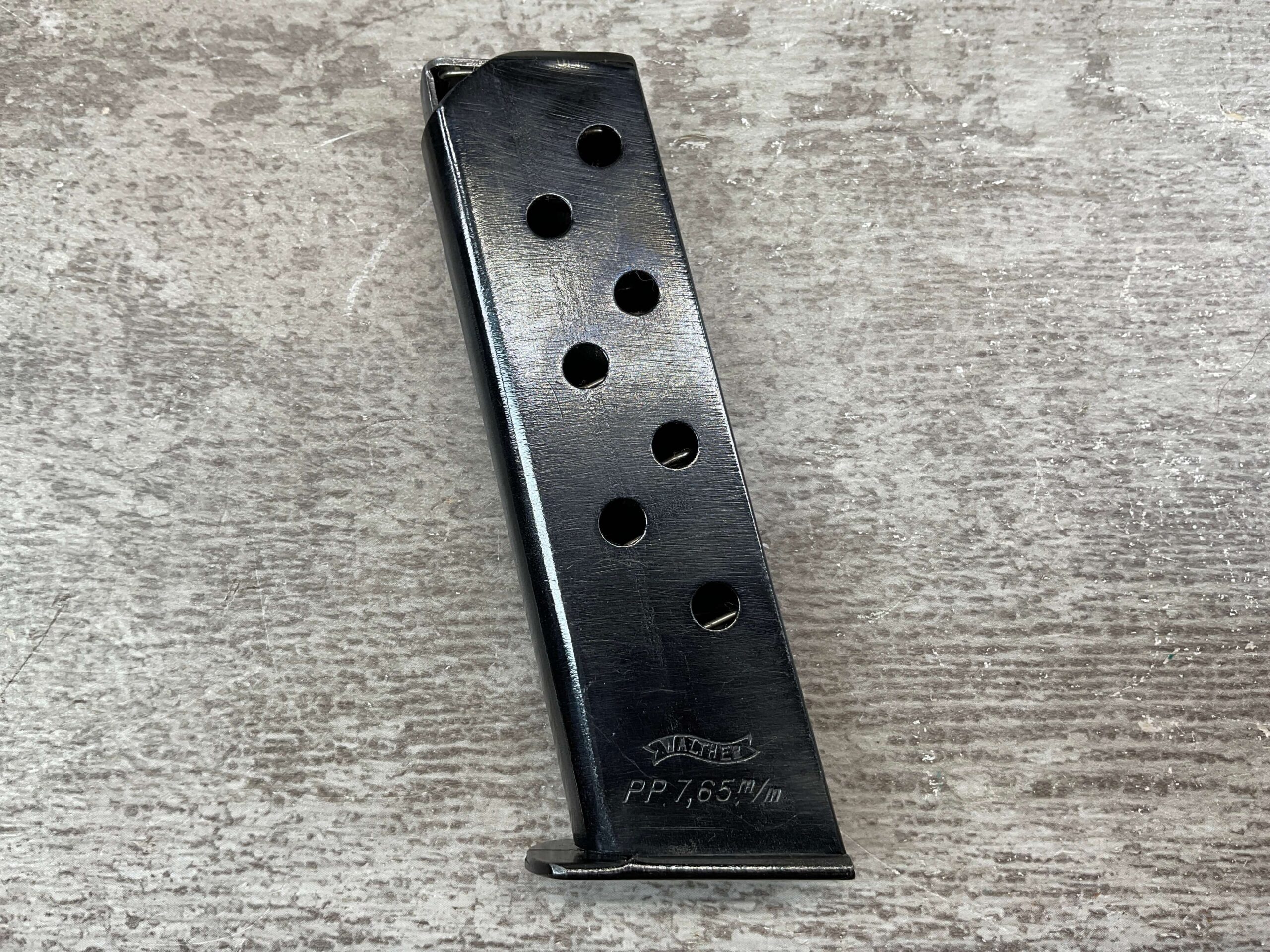 SKU#7226 WALTHER PP MAGAZINE, BANNER OVER CALIBER HIGH POLISH, LATE WAR, (NOT PHOSPHATE), EXC CONDITION