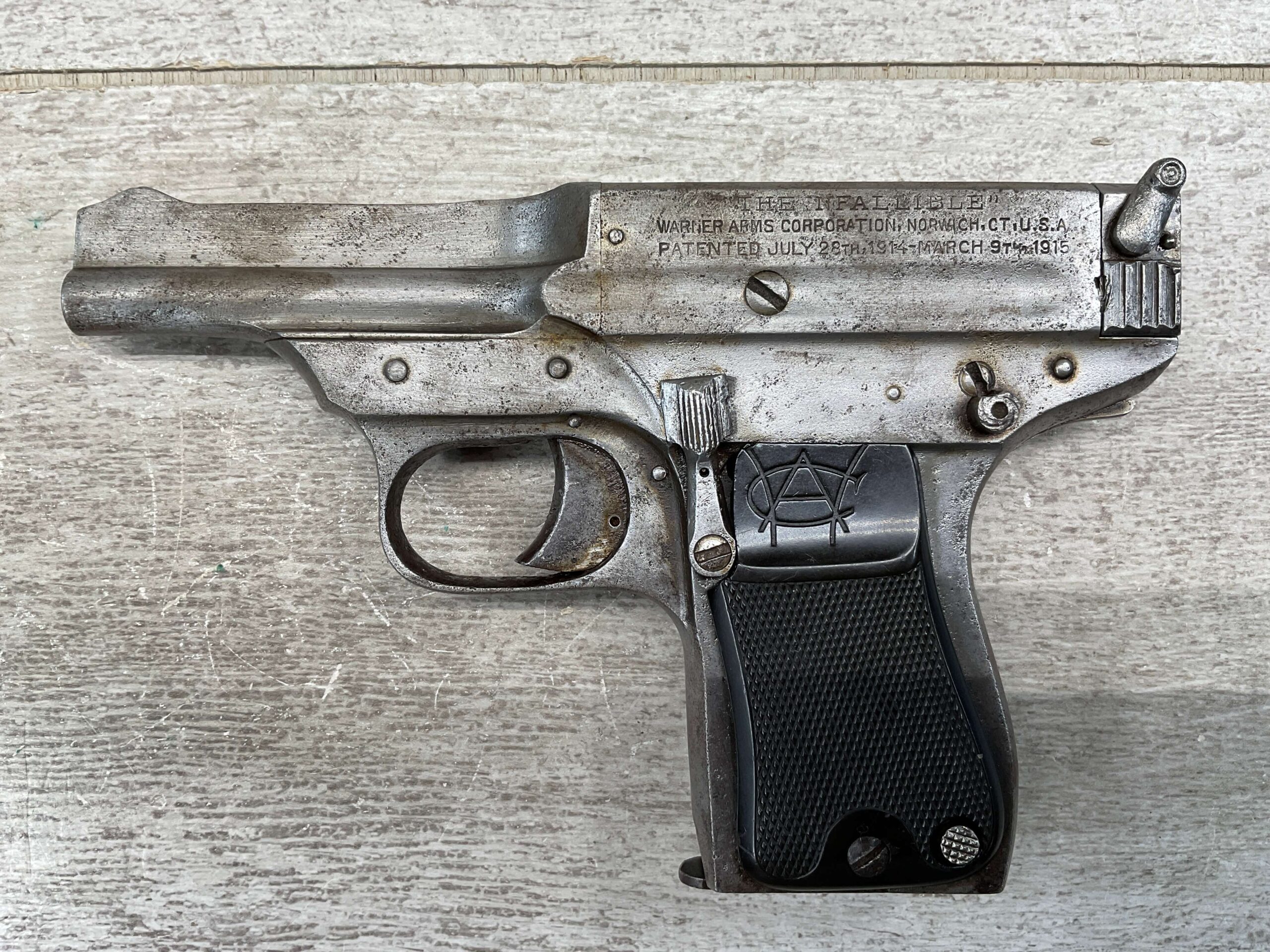 The Infallible Pistol was a .32 ACP caliber handgun manufactured by the Warner Arms Corp around 1914.